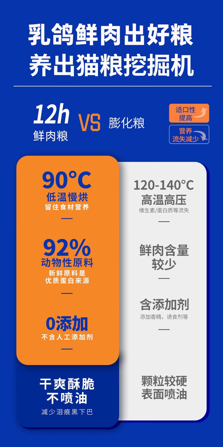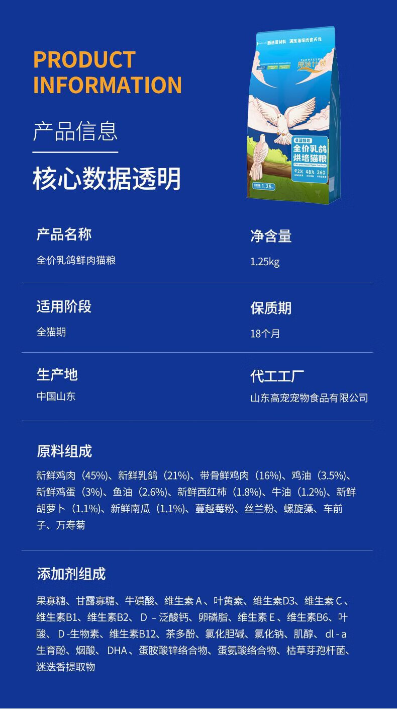 Taste Plan Squab Fresh Meat Cat Food High Protein Fresh Meat Formula General Grain-Free Cat Food for Adult Cats and Kittens 2.5Jin Jin equals 0.5kg Fresh Squab Fresh Meat Cat Food 48 Crude Protein