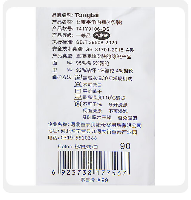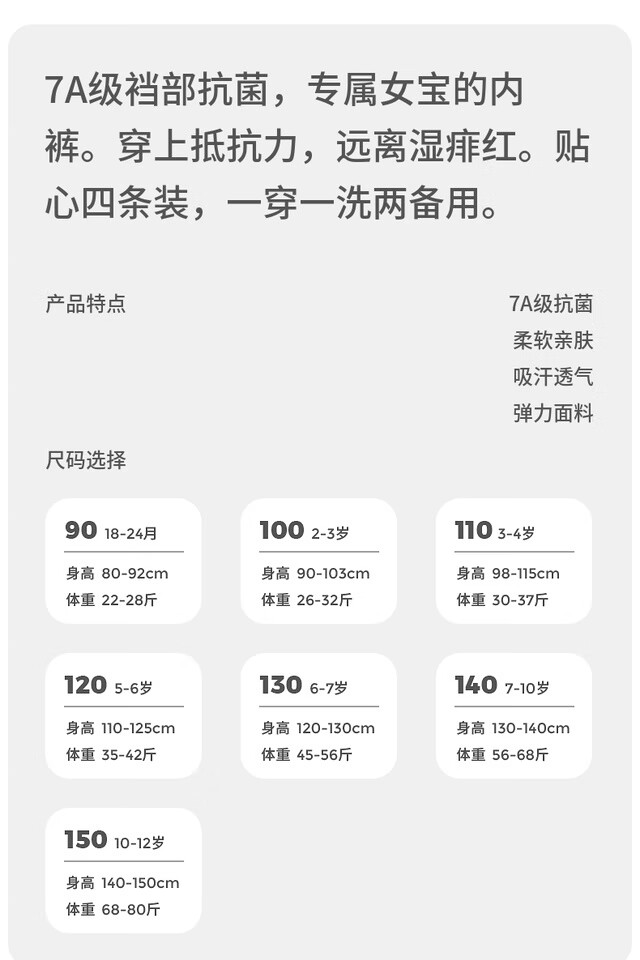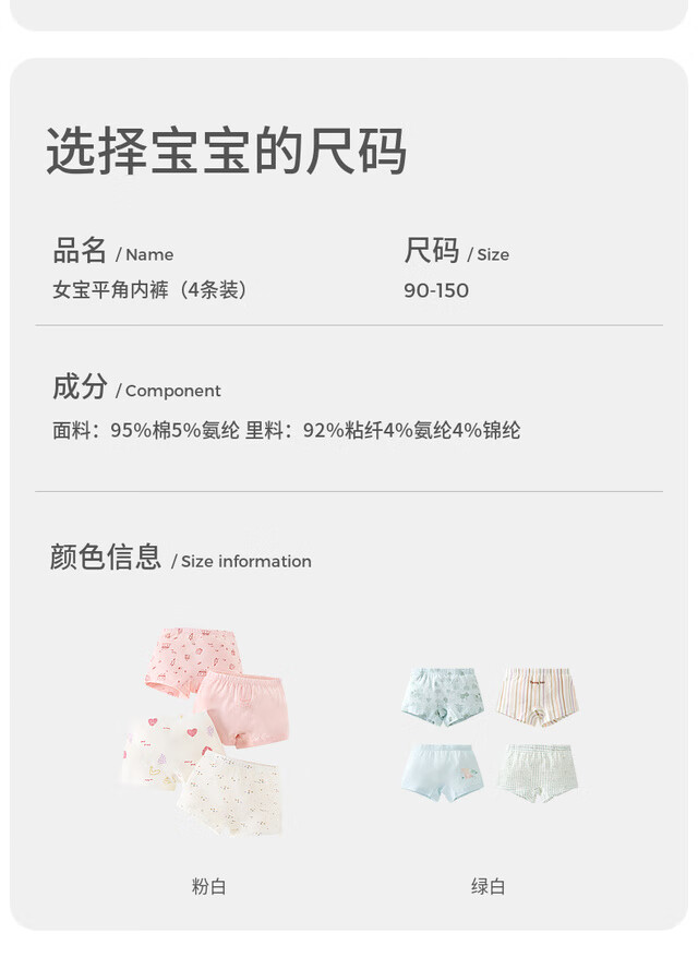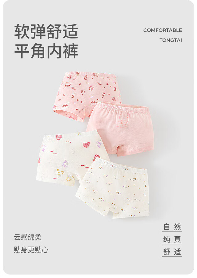 Tongtai girl baby underwear children's boxer briefs girls boxer briefs girls shorts big children antibacterial underwear 4 pack pink white 4 pieces 110 cm