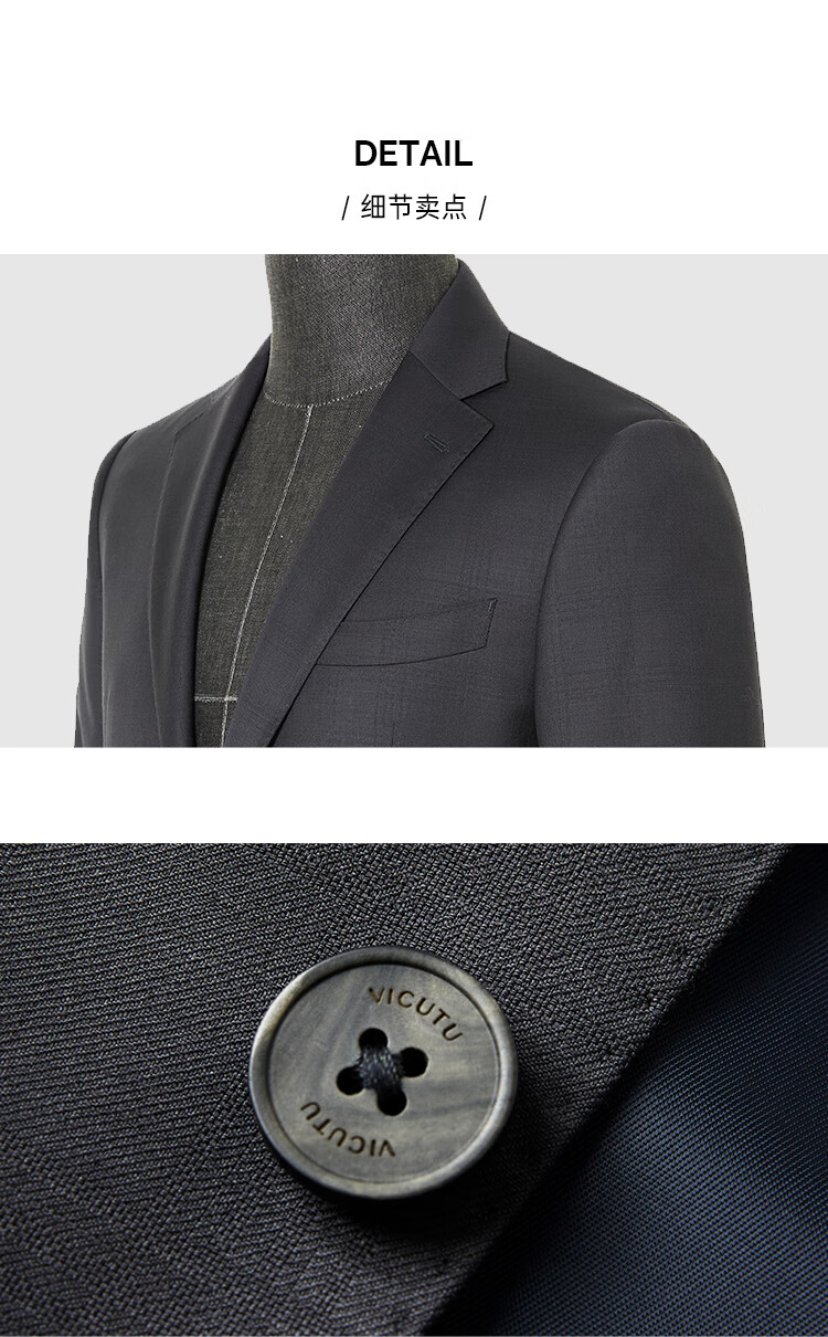 VICUTU men's suit jacket, comfortable wool fabric, versatile suit jacket for business commuting, suit 175B or 78 pants, gray and black suit