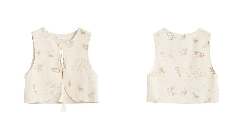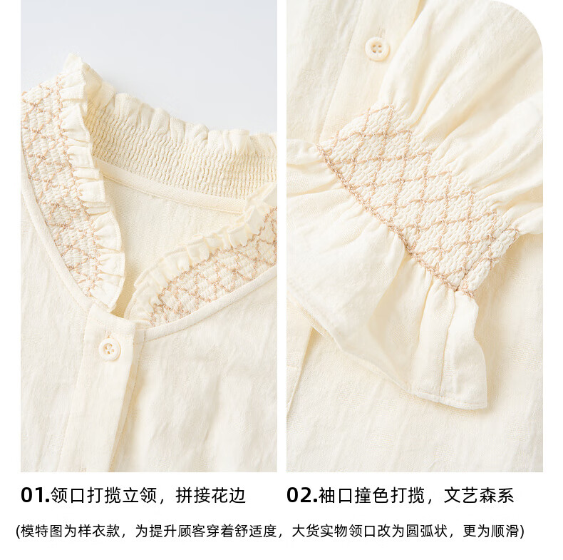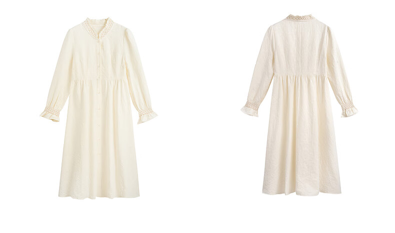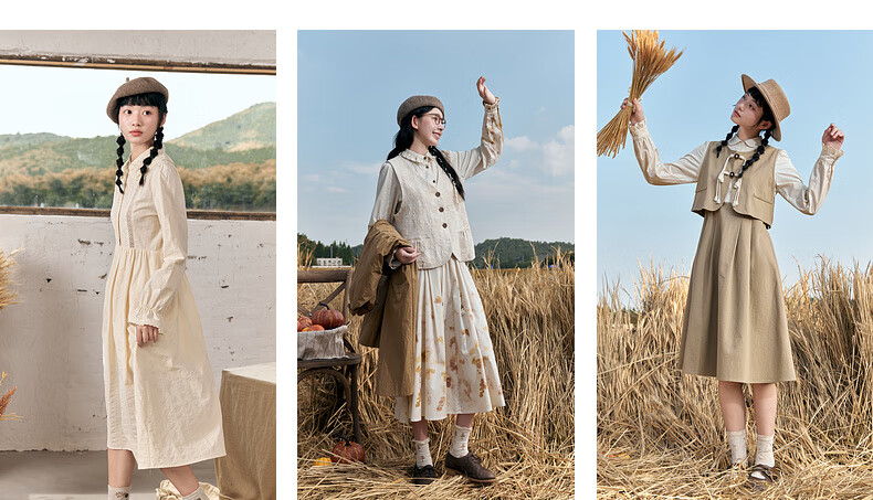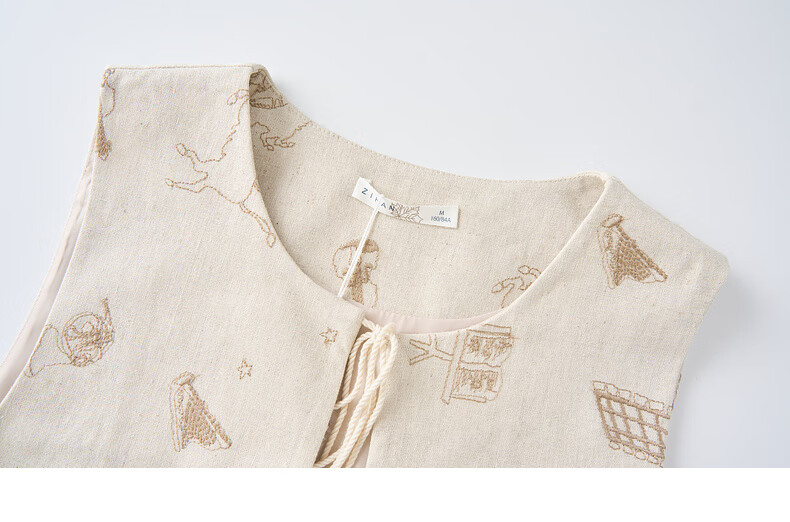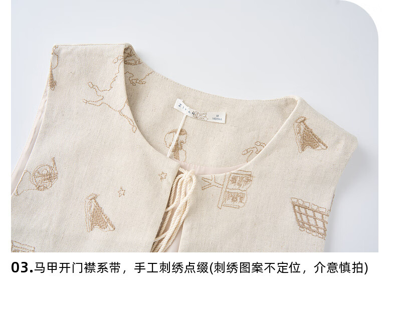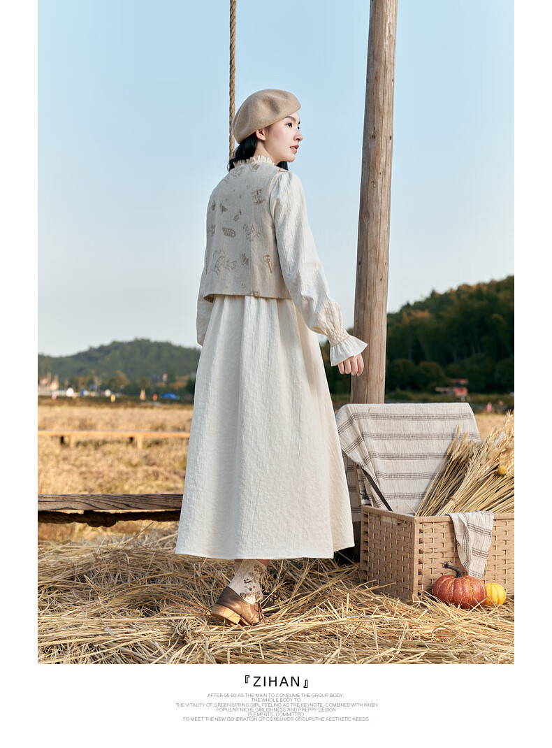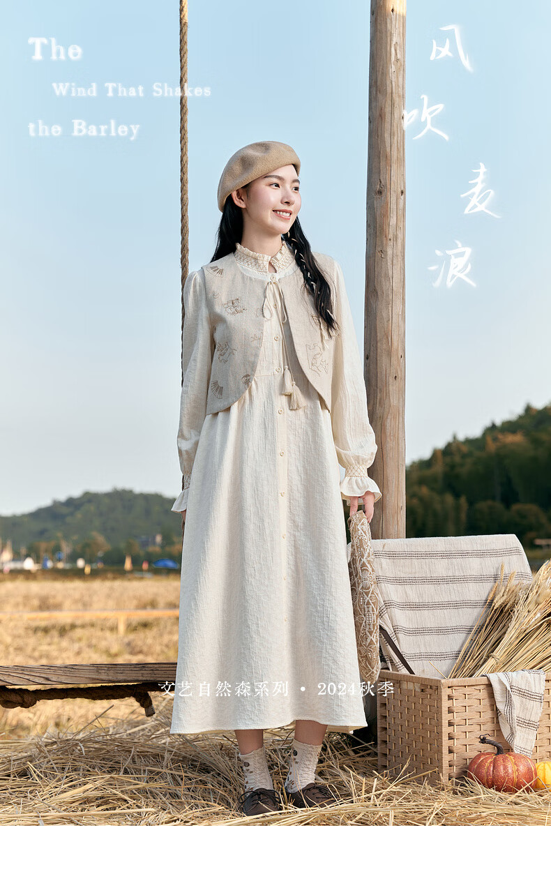Zihan (ZIHAN) Zihan Japanese embroidered vest, stand collar, loose shirt dress, two-piece suit for women, autumn, beige S