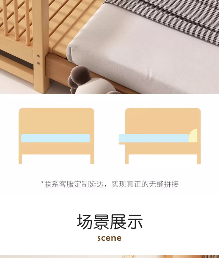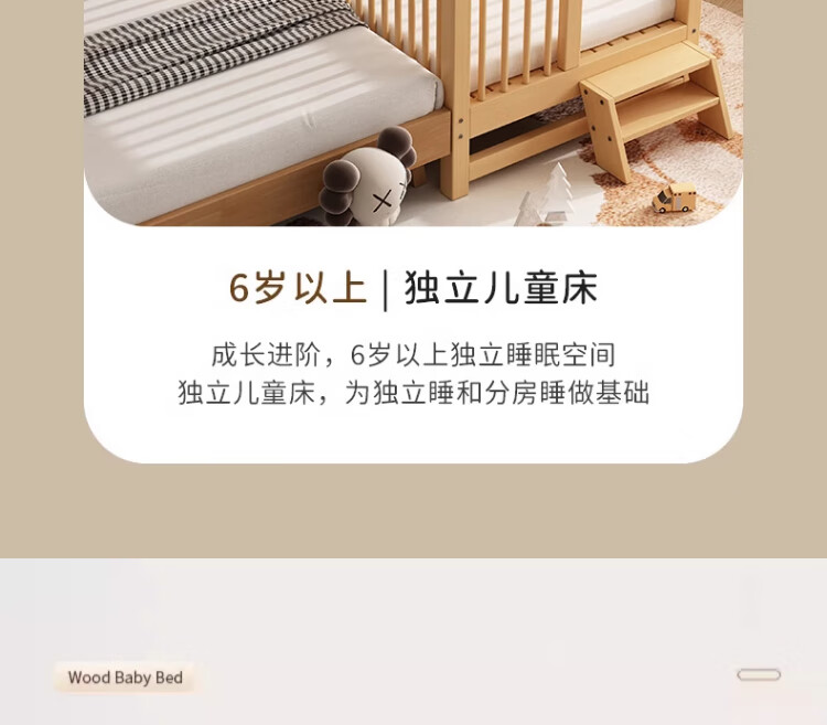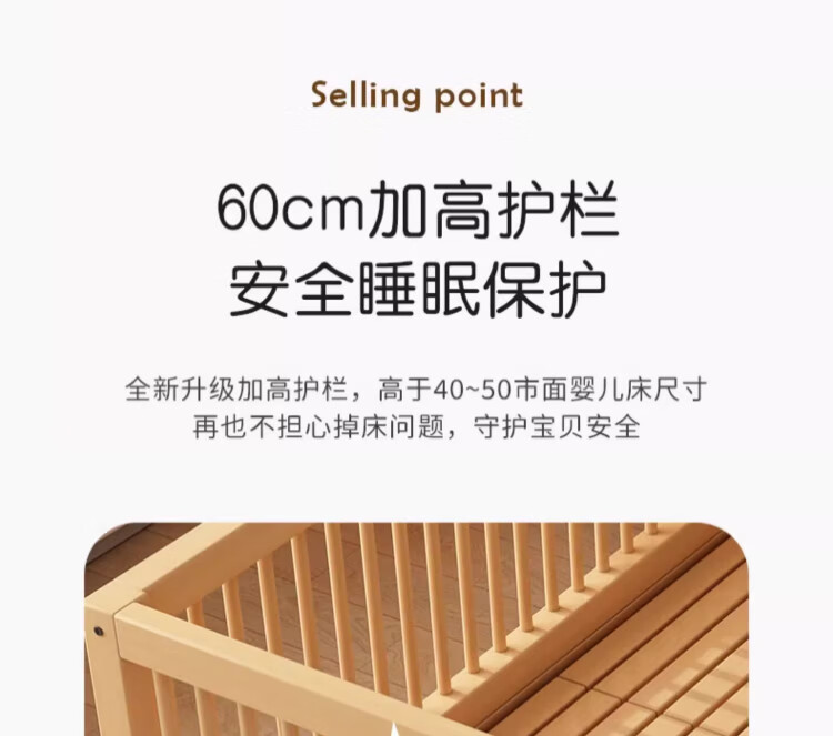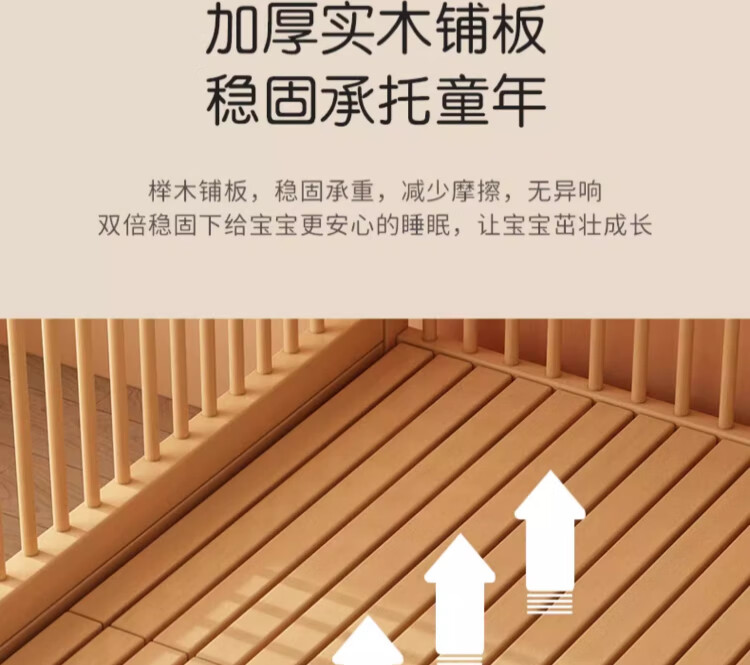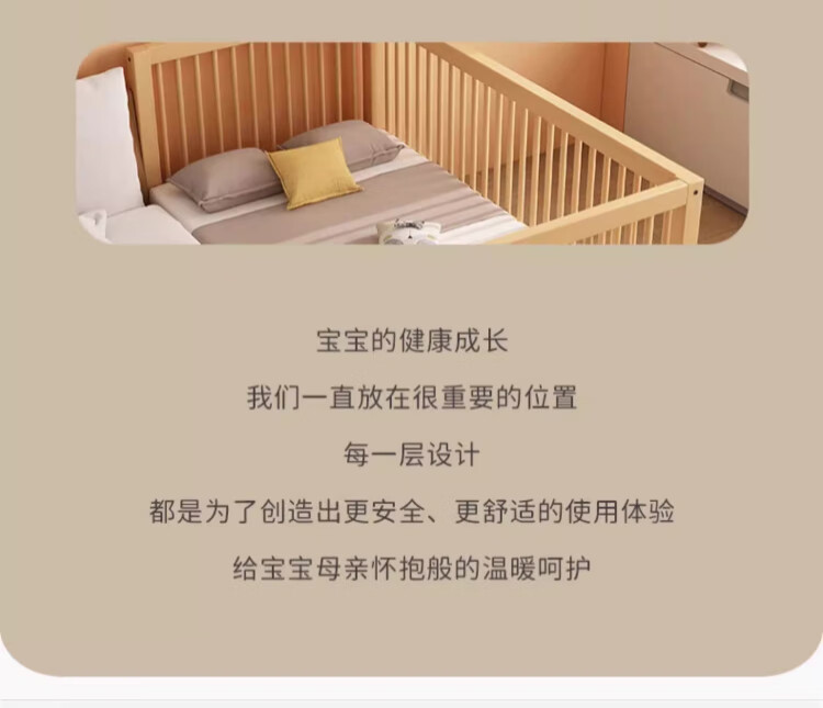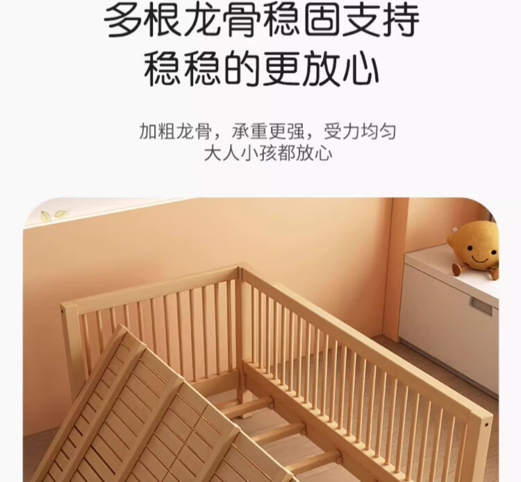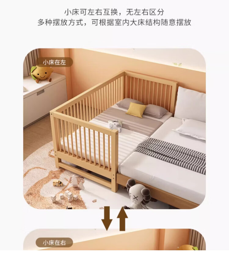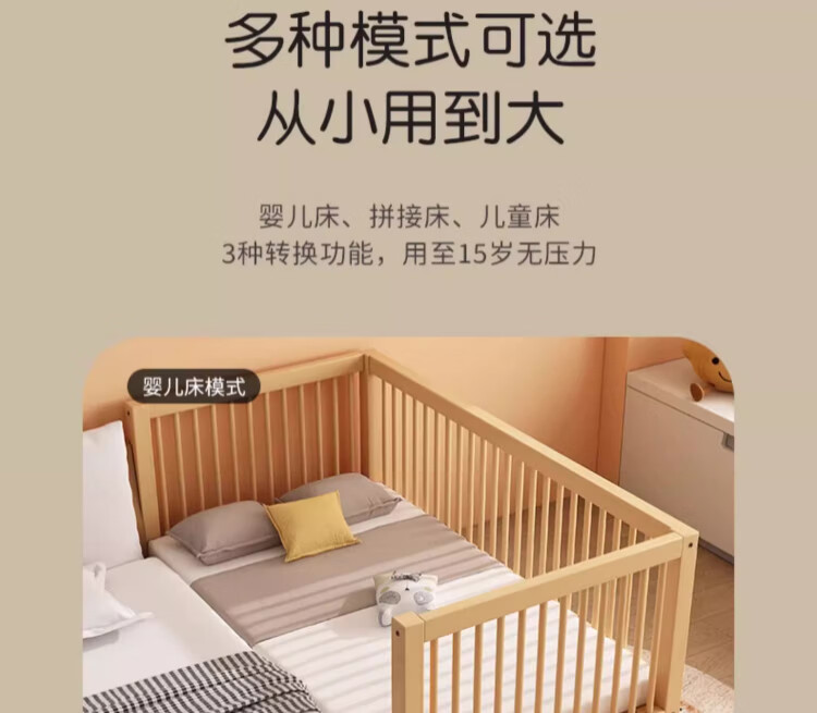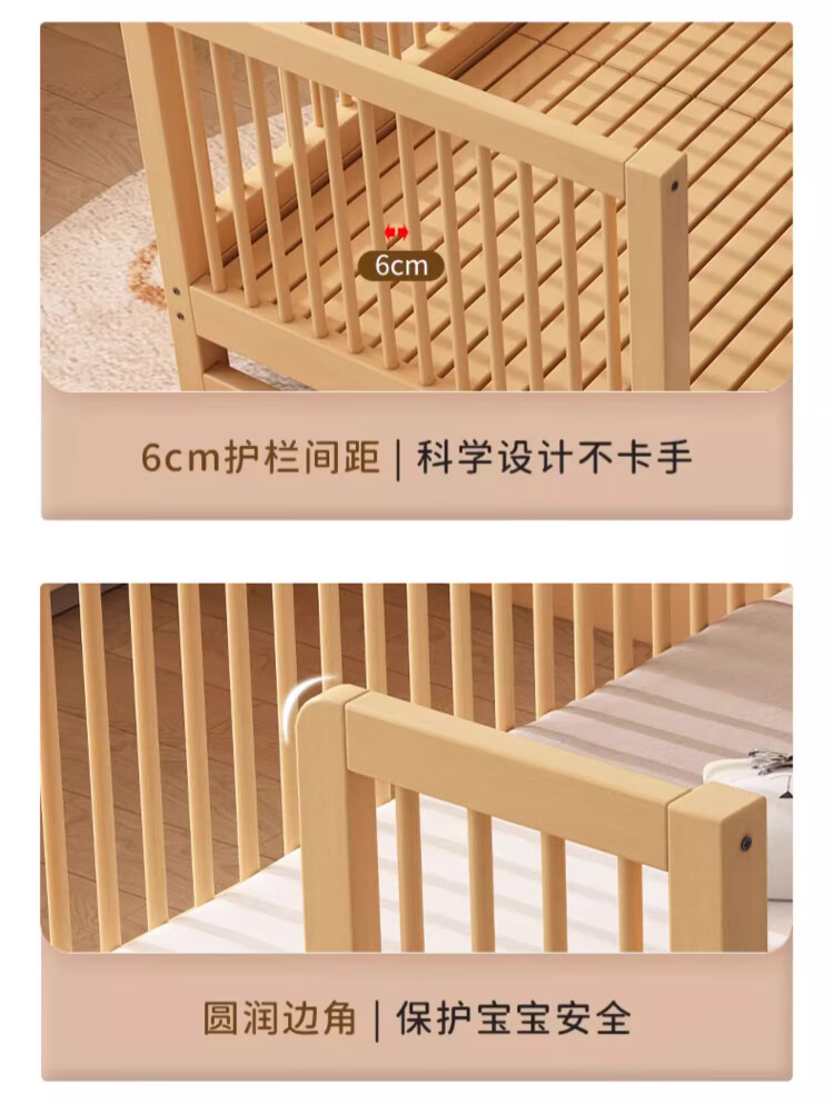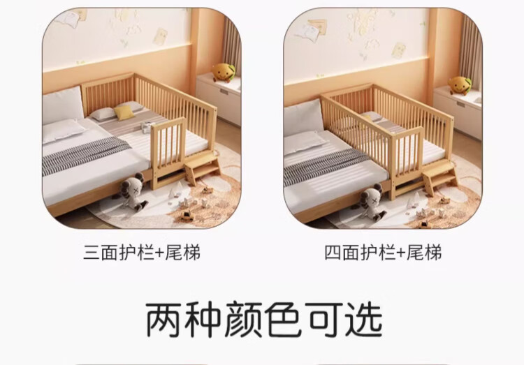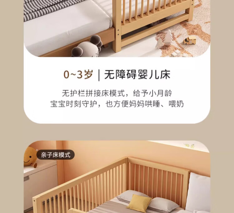Jiaomei beech children's spliced bed newborn baby widened bedside solid wood seamless splicing large bed extra bed flat bed three-sided guardrail (log) 9cm coconut palm mattress + latex 180x60cm