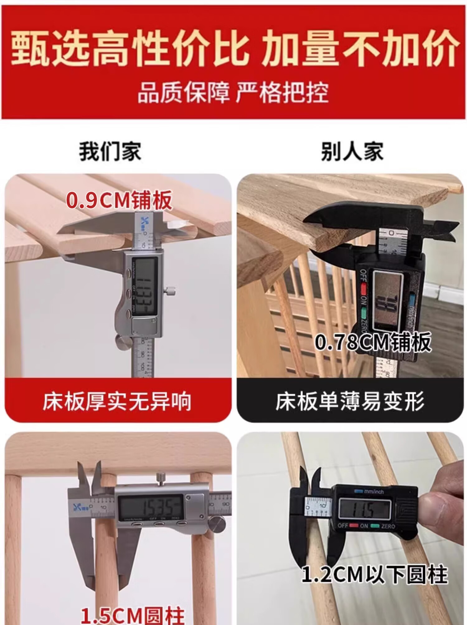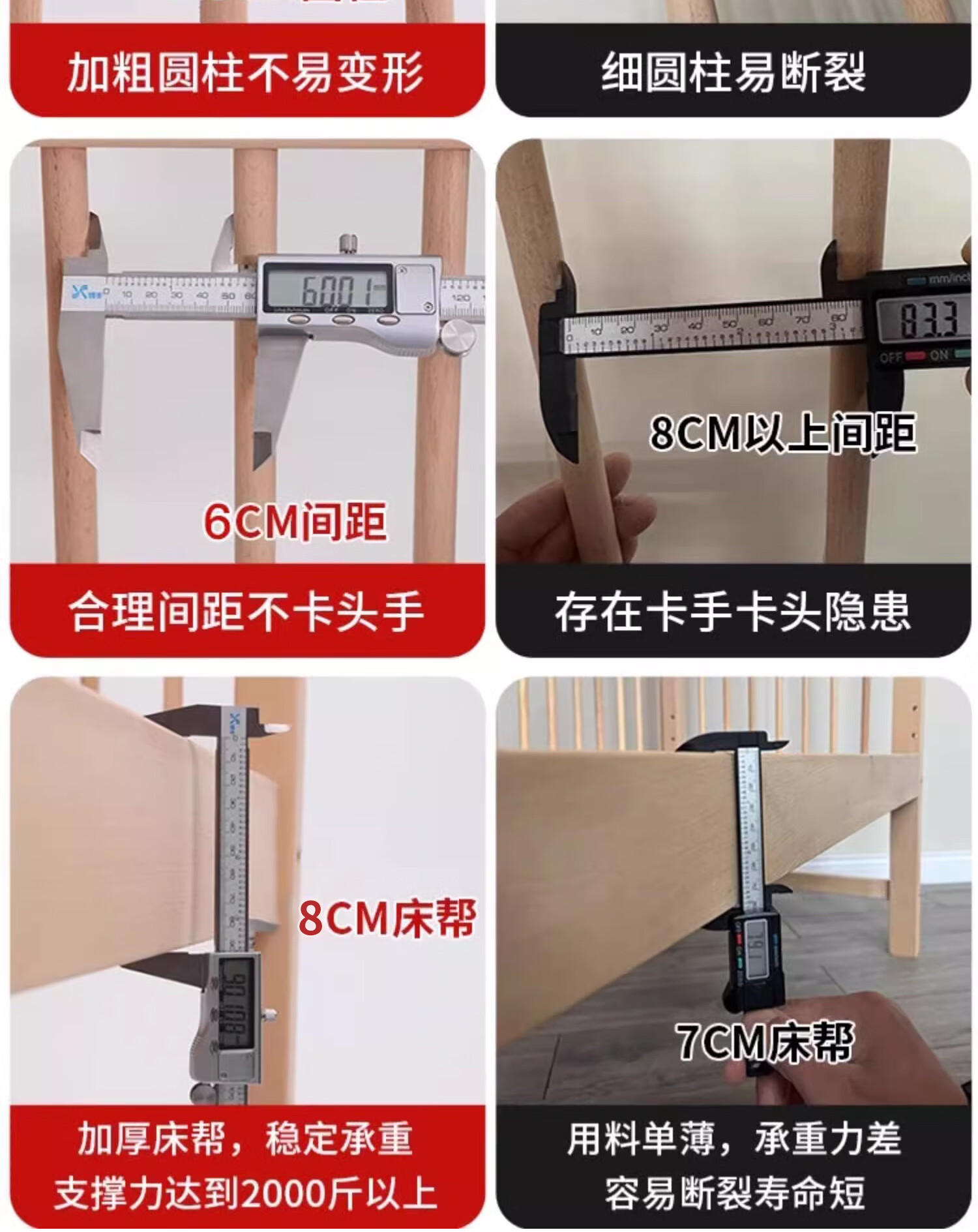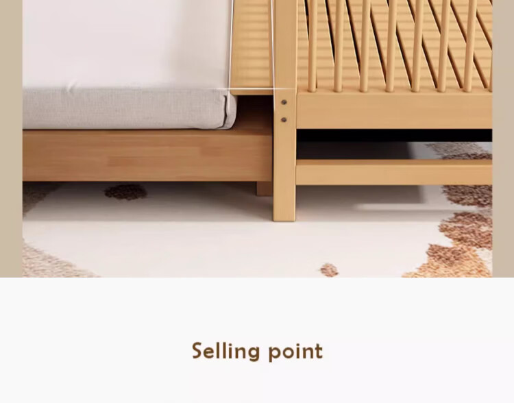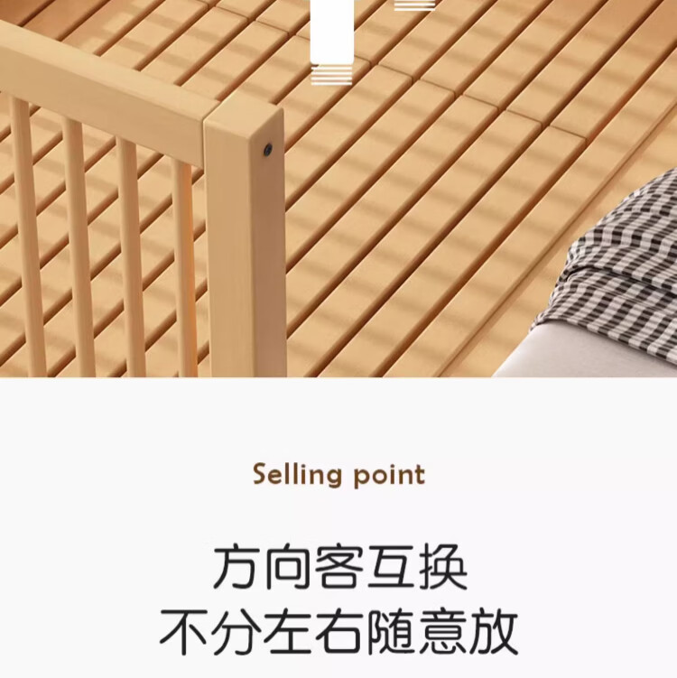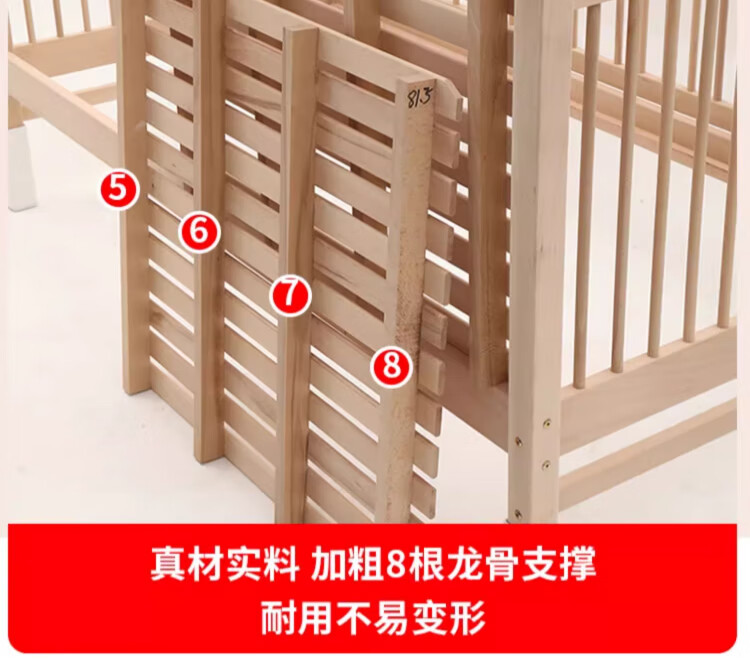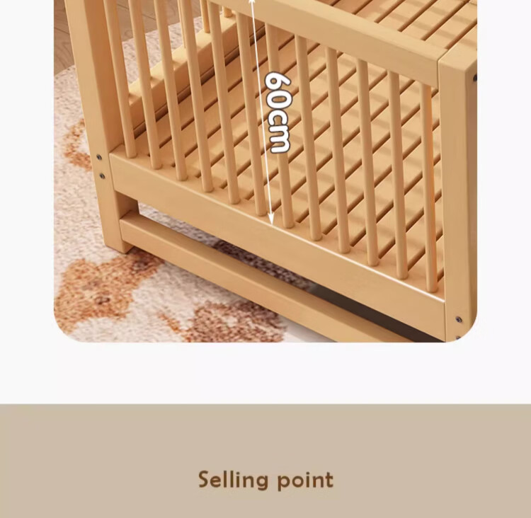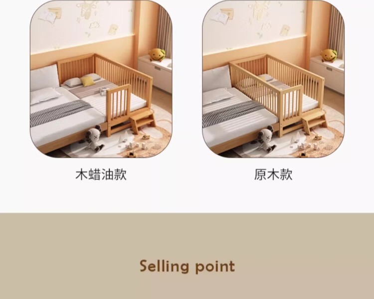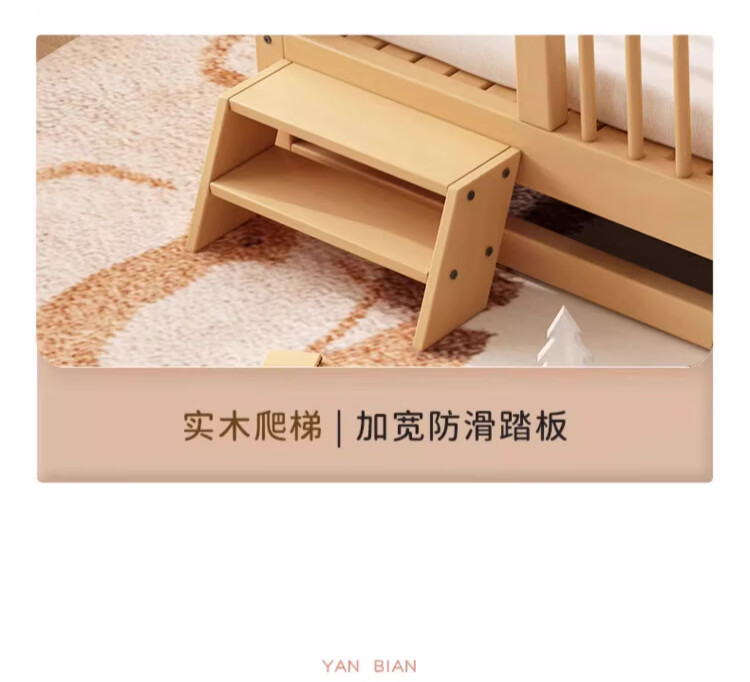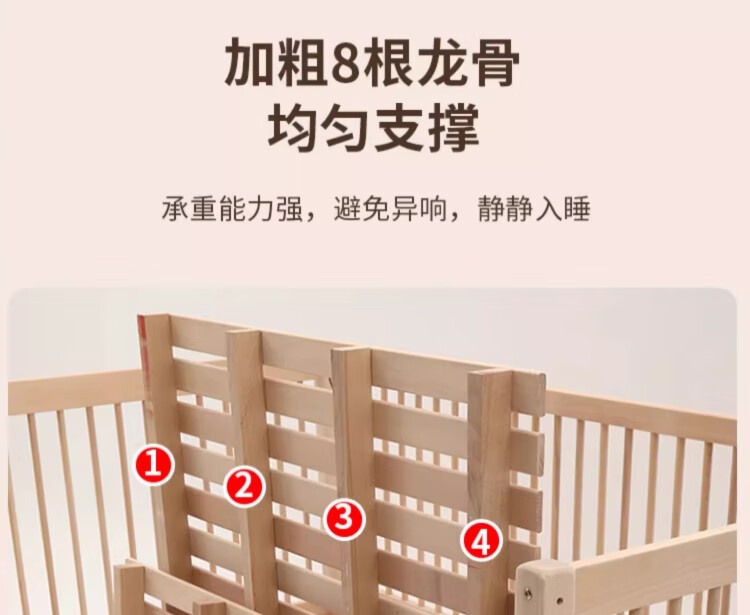 Jiaomei beech children's spliced bed newborn baby widened bedside solid wood seamless splicing large bed extra bed flat bed three-sided guardrail (log) 9cm coconut palm mattress + latex 180x60cm
