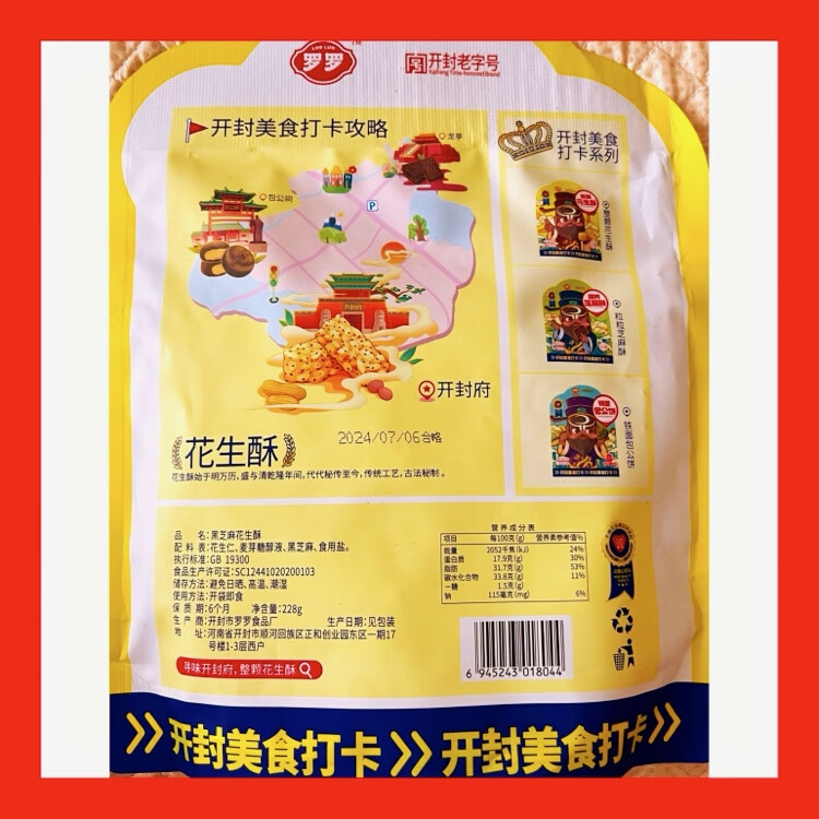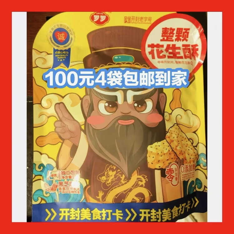 Luoluo Whole Peanut Cake, a time-honored Kaifeng specialty product recommended by Henan tour guides, 228g per bag, 4 bags