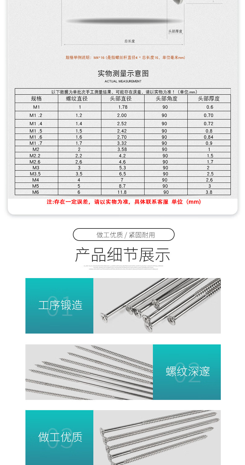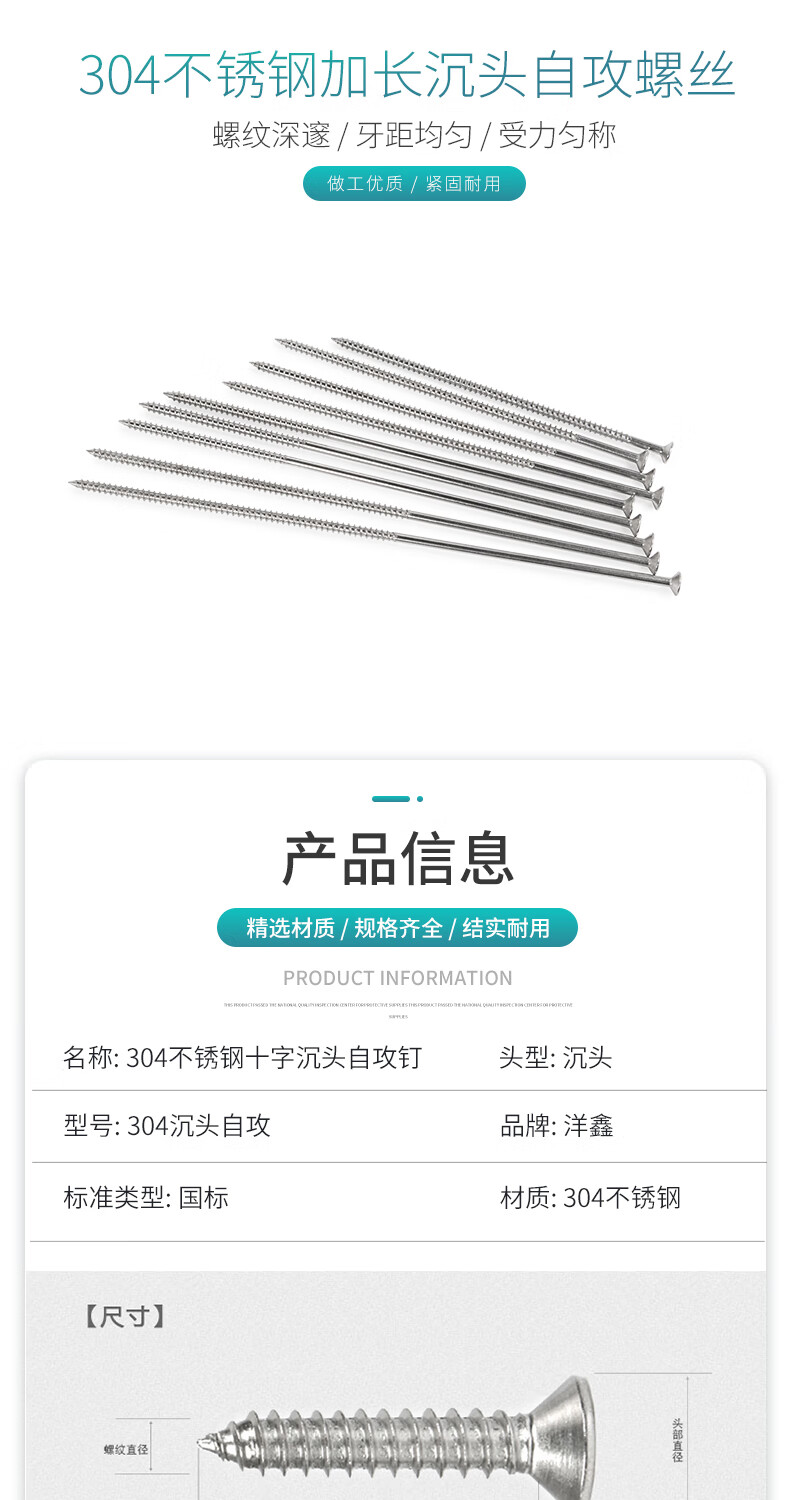 Yangxin 304 stainless steel extra long countersunk head self-tapping screws extended flat head cross wood screws M3M4M5-M8*200 M4*100 (10 pieces) switch box available