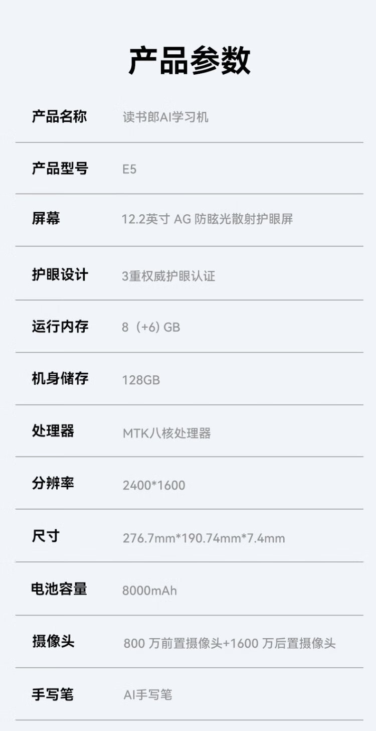 Dudulang learning machine E5 all-in-one learning and training machine 12.2 inches, supports DeepSeek, synchronous training in school, graded training, precise learning and eye protection, student tablet for elementary school, middle school and high school E5 12.2 inches 14+256G