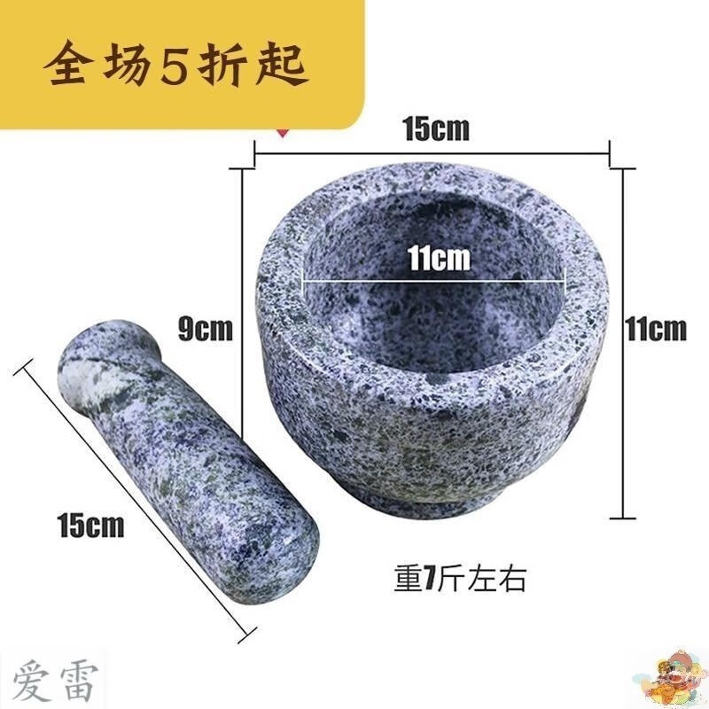 Renjuyi Chong masher manual baby inverted grinding bowl stone pestle stone mortar food mortar garlic mortar and cup stone fine drying diameter 17 cm with lid U