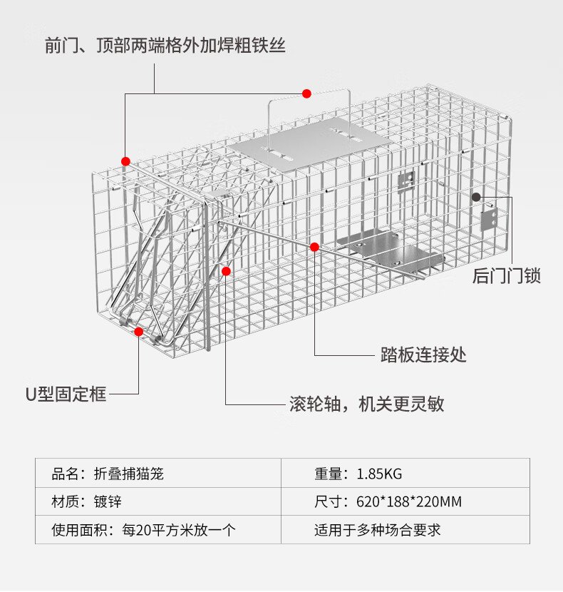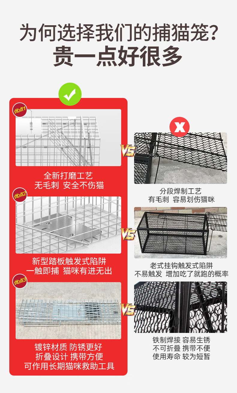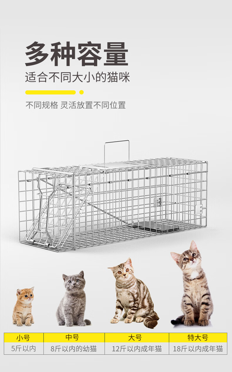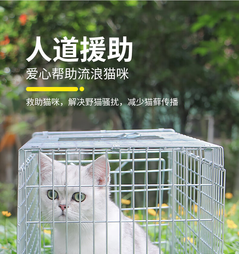 Cat Cage Cat Catching Artifact Automatic Rescue Stray Cat Supermarket Cat Catching Cat Catching Tool Cat Cage Large Black Cat Cage Free of Installation - Large Size 50*18*24