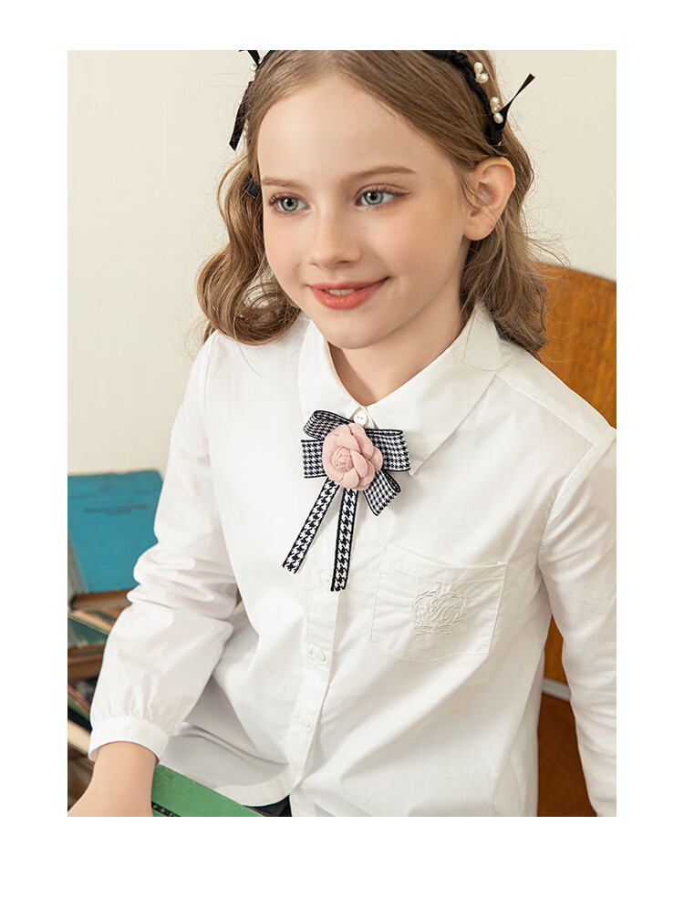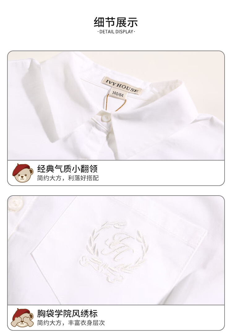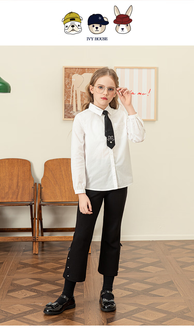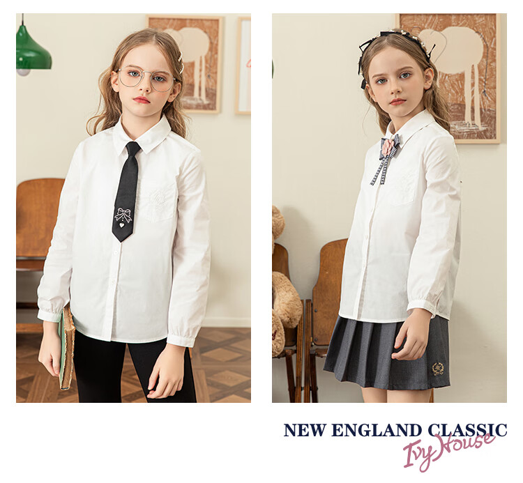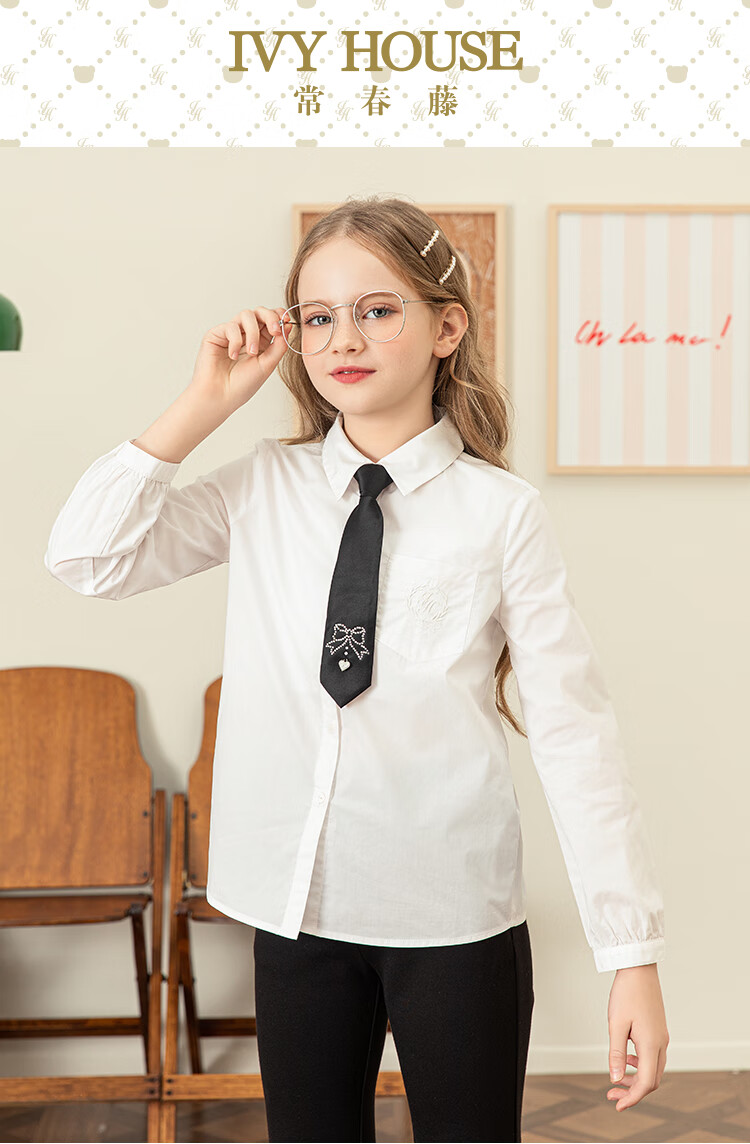 IVY HOUSE Ivy children's clothing for girls and older children in autumn new style classic versatile lapel long-sleeved white shirt shirt college white ((tie not included)) 150cm