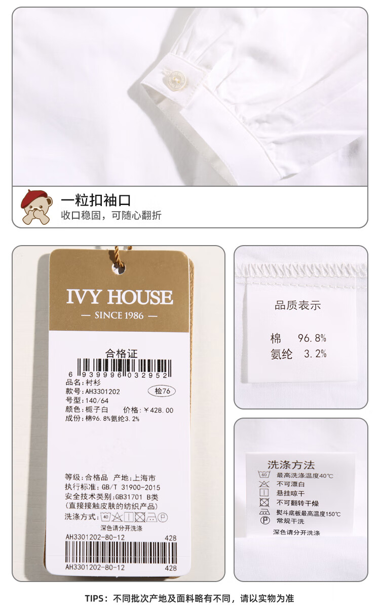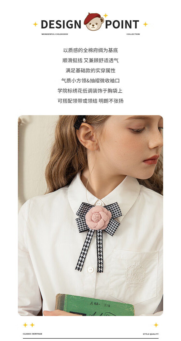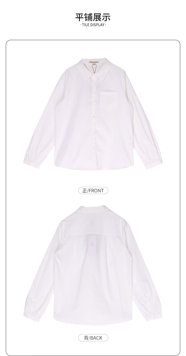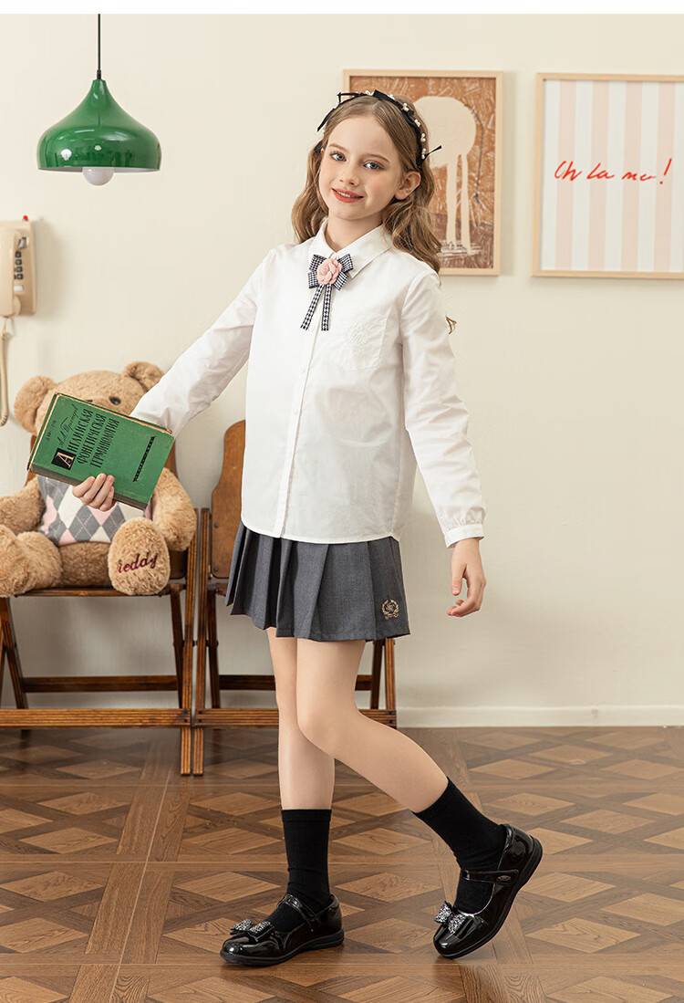 IVY HOUSE Ivy children's clothing for girls and older children in autumn new style classic versatile lapel long-sleeved white shirt shirt college white ((tie not included)) 150cm