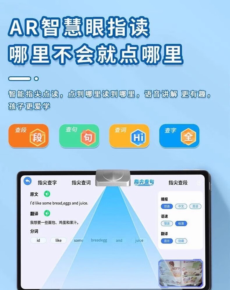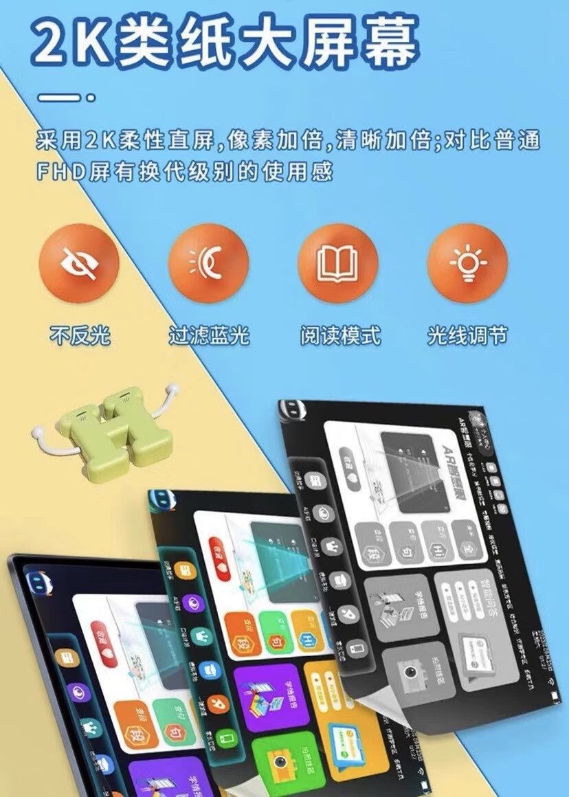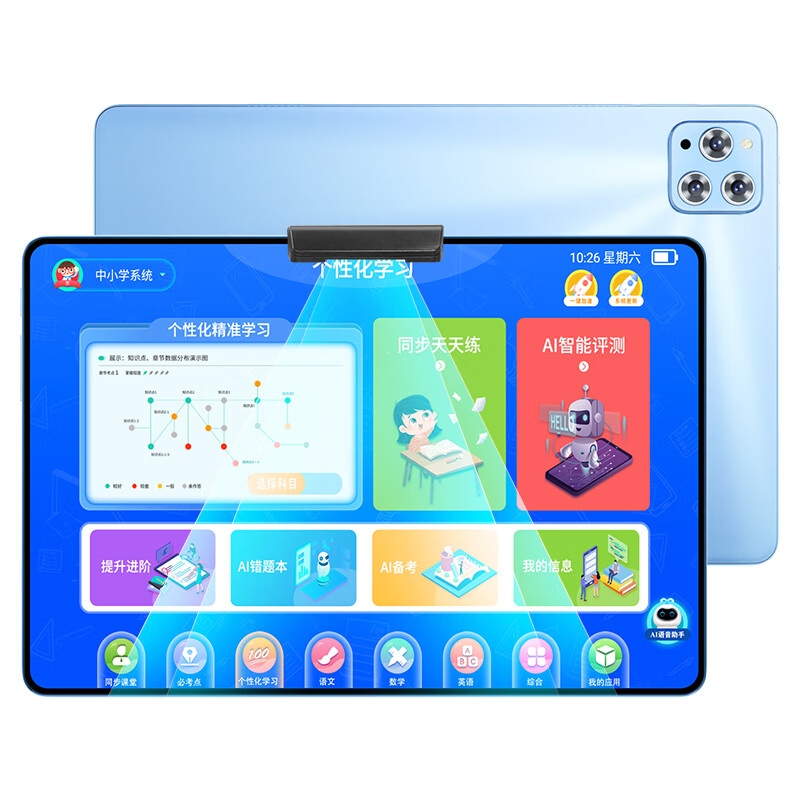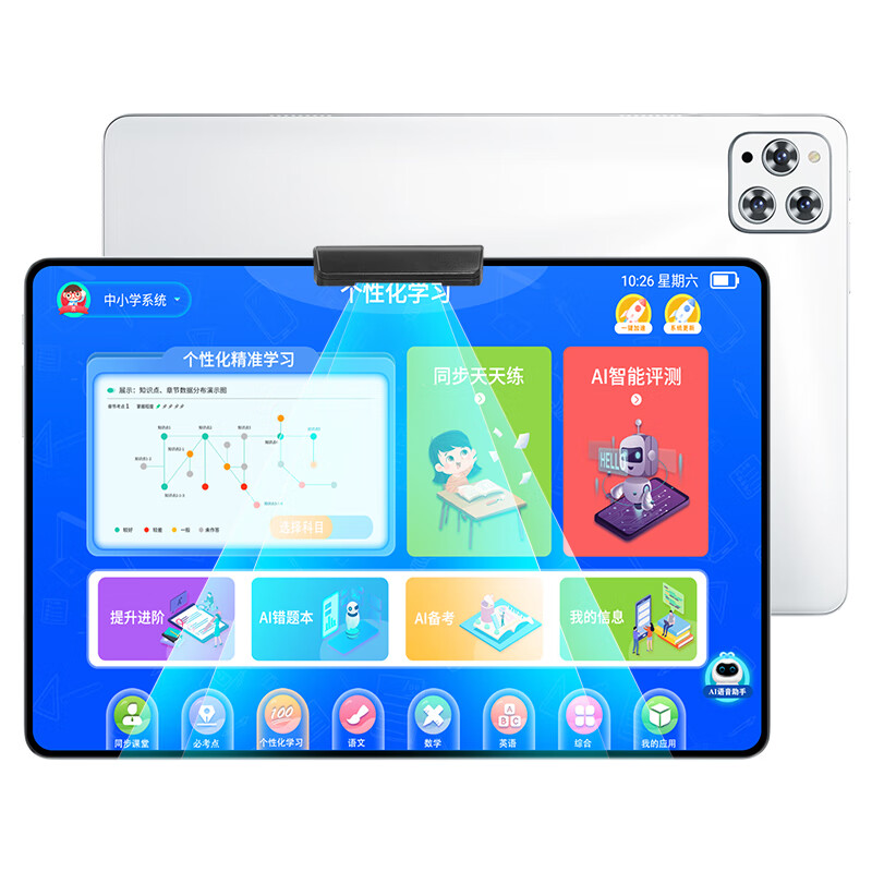 Student-specific 12-inch eye-protecting screen learning machine for primary school, middle and high school synchronous tutoring AR smart eye student tablet silver 512G comes with desk lamp, stylus, leather case, scanning pen