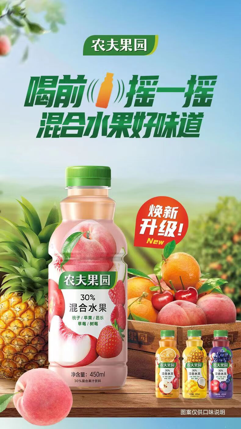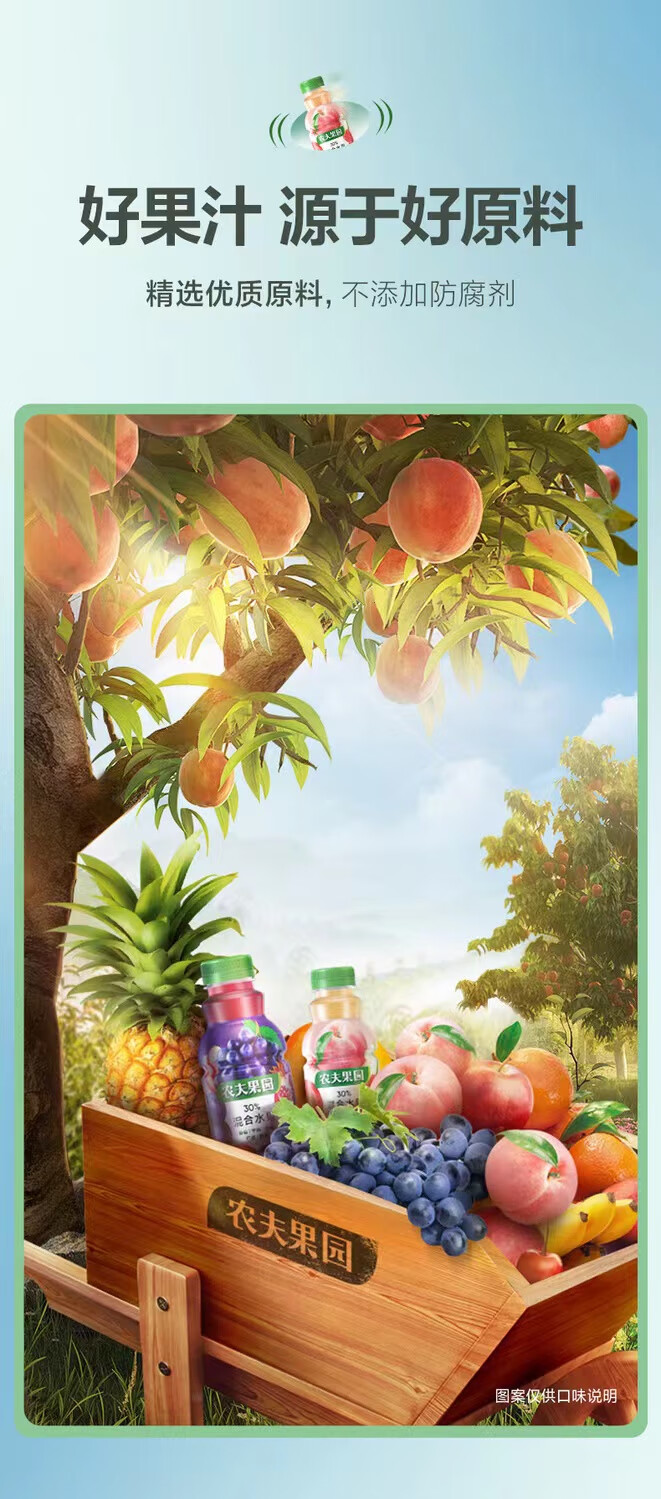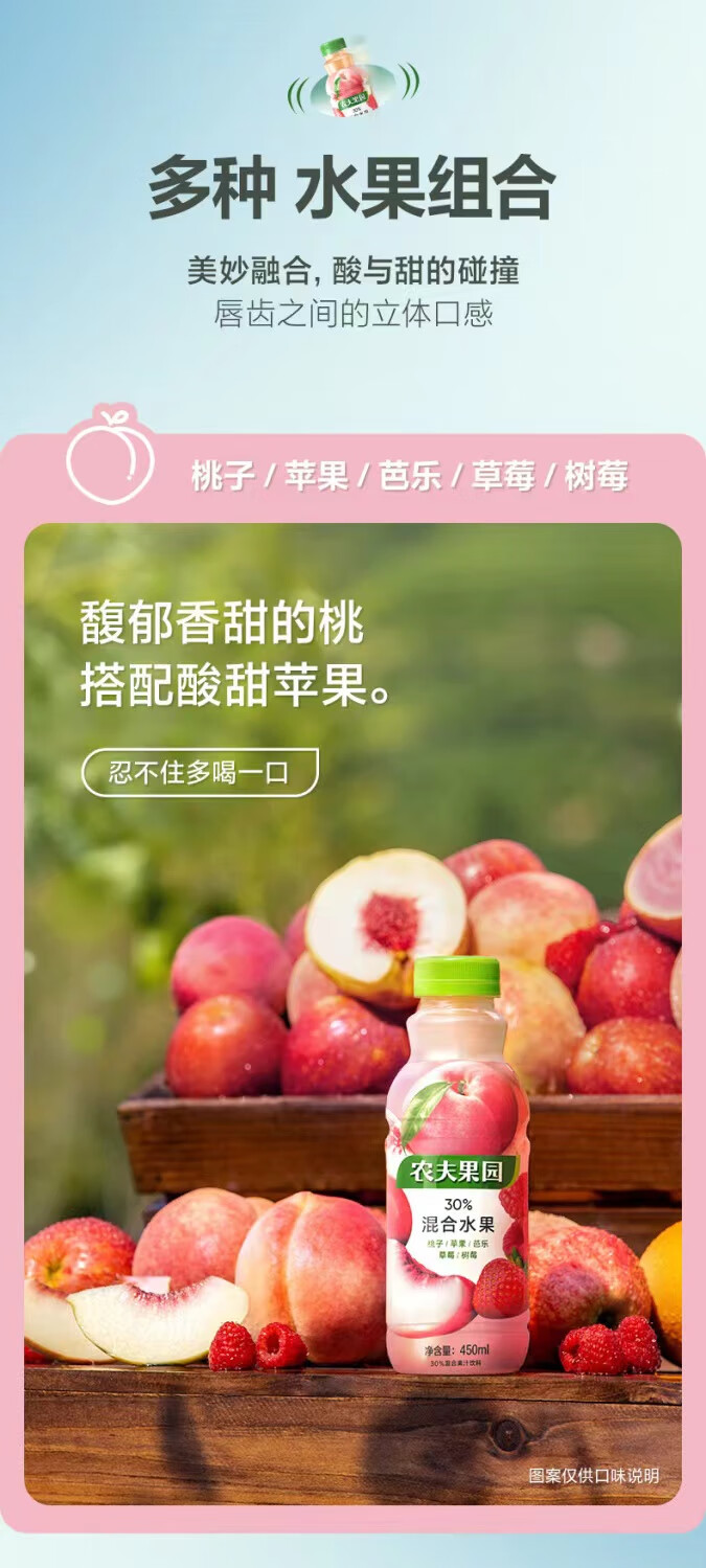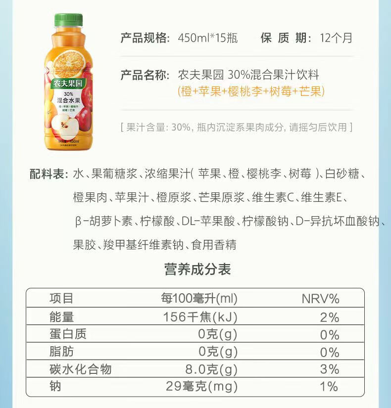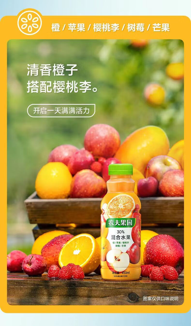 Nongfu Orchard Nongfu Spring Nongfu Orchard 450ml*15 bottles Orange Juice Mango Pineapple Guava 30% Mixed Fruit and Vegetable Juice Beverage Large Bottle Peach Apple Guava 1.25L*6 bottles