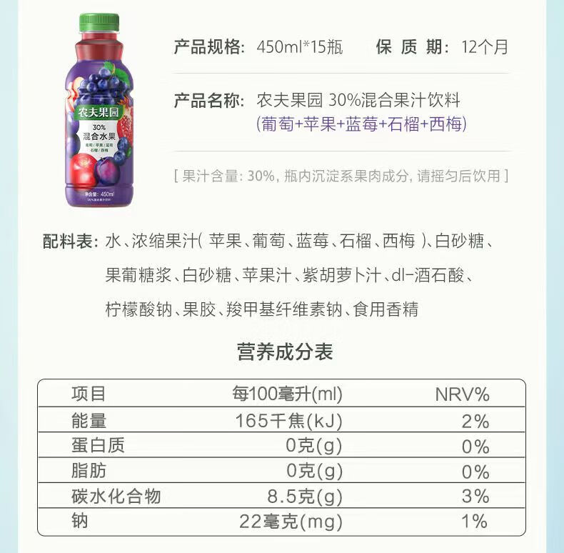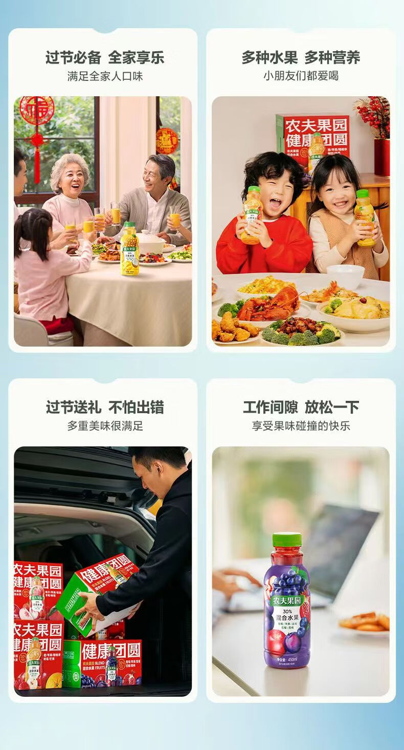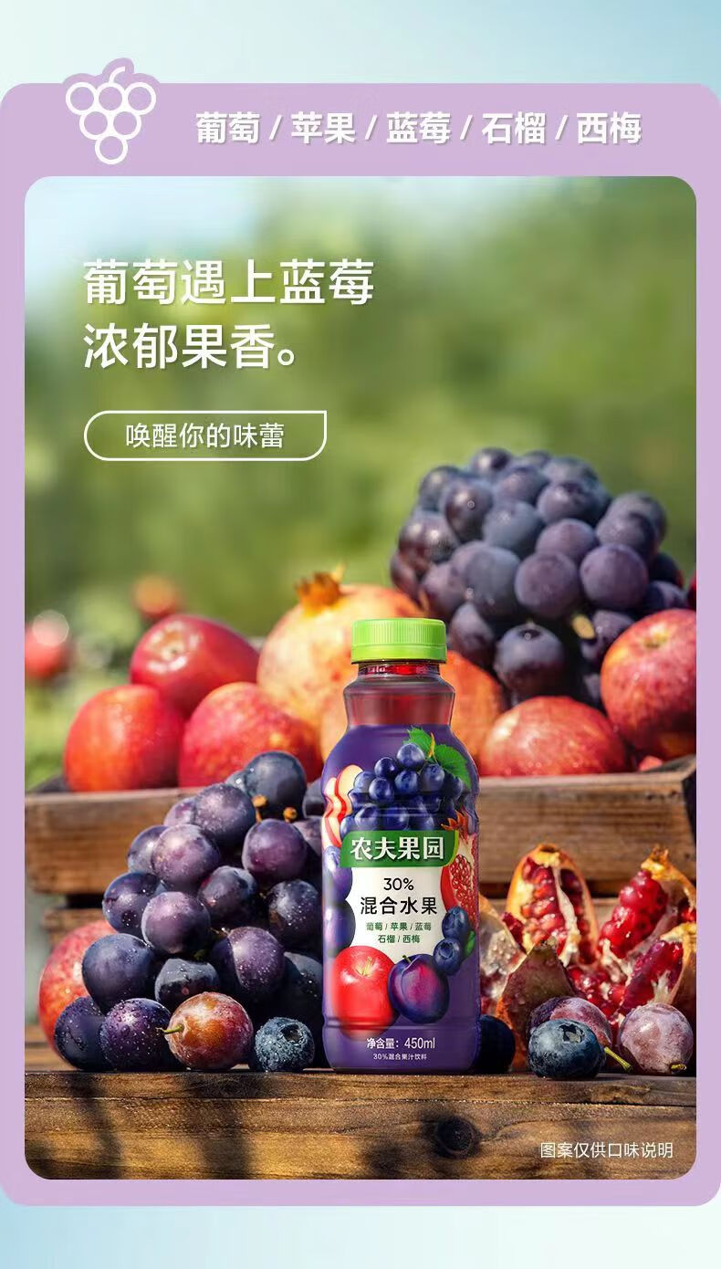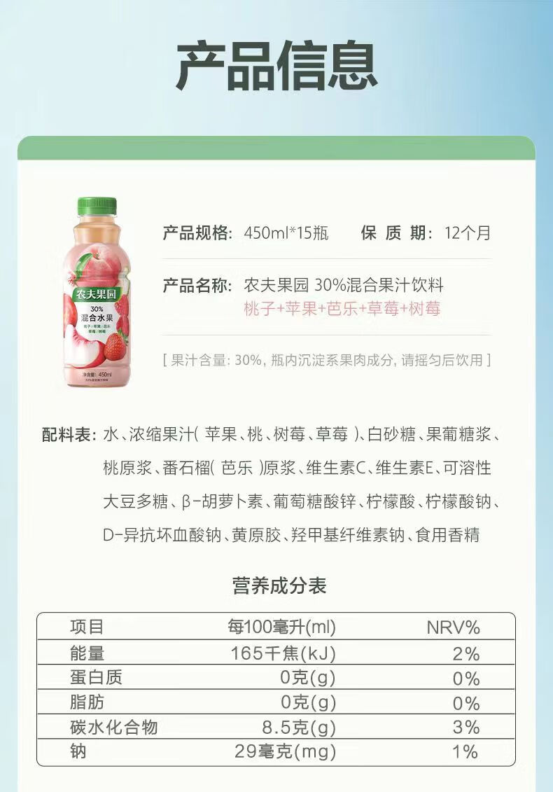 Nongfu Orchard Nongfu Spring Nongfu Orchard 450ml*15 bottles Orange Juice Mango Pineapple Guava 30% Mixed Fruit and Vegetable Juice Beverage Large Bottle Peach Apple Guava 1.25L*6 bottles