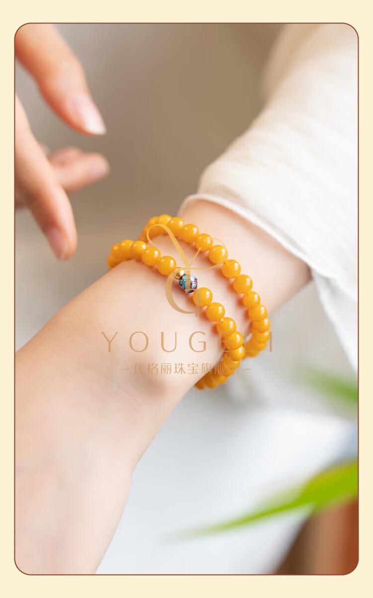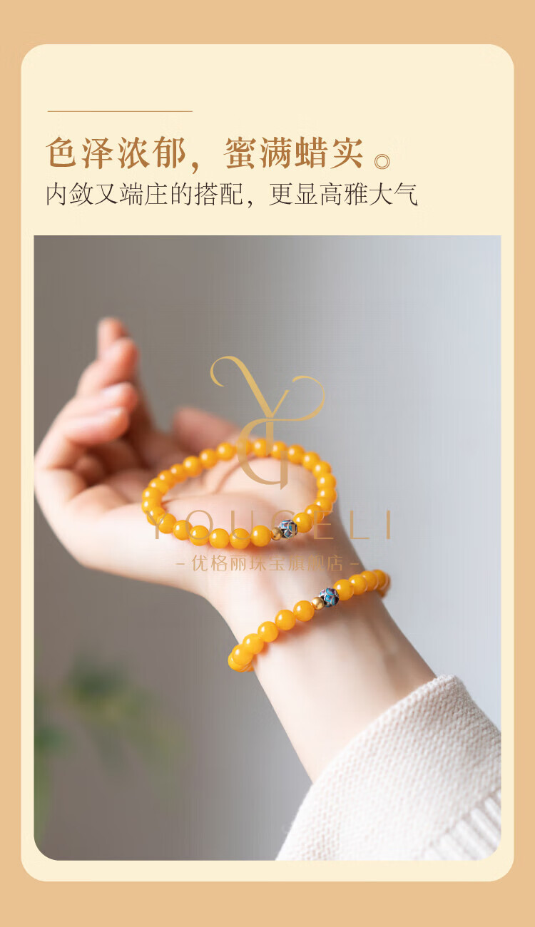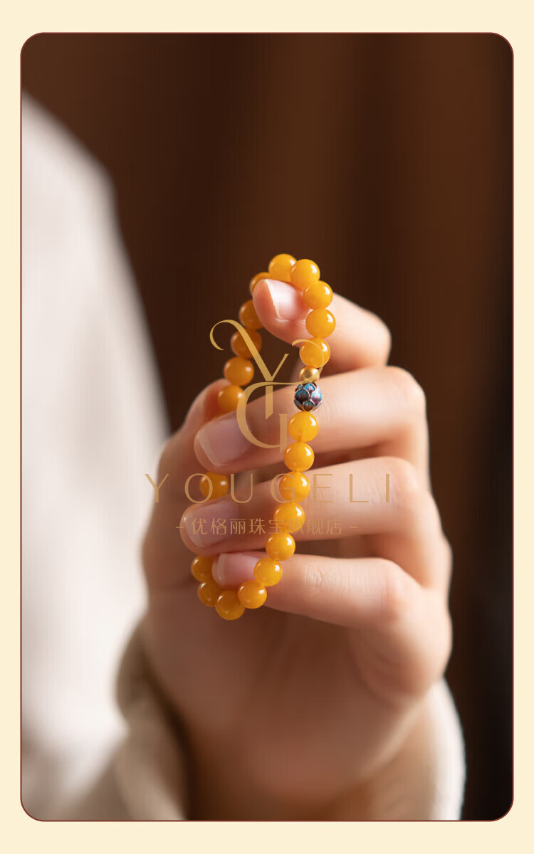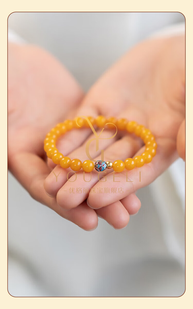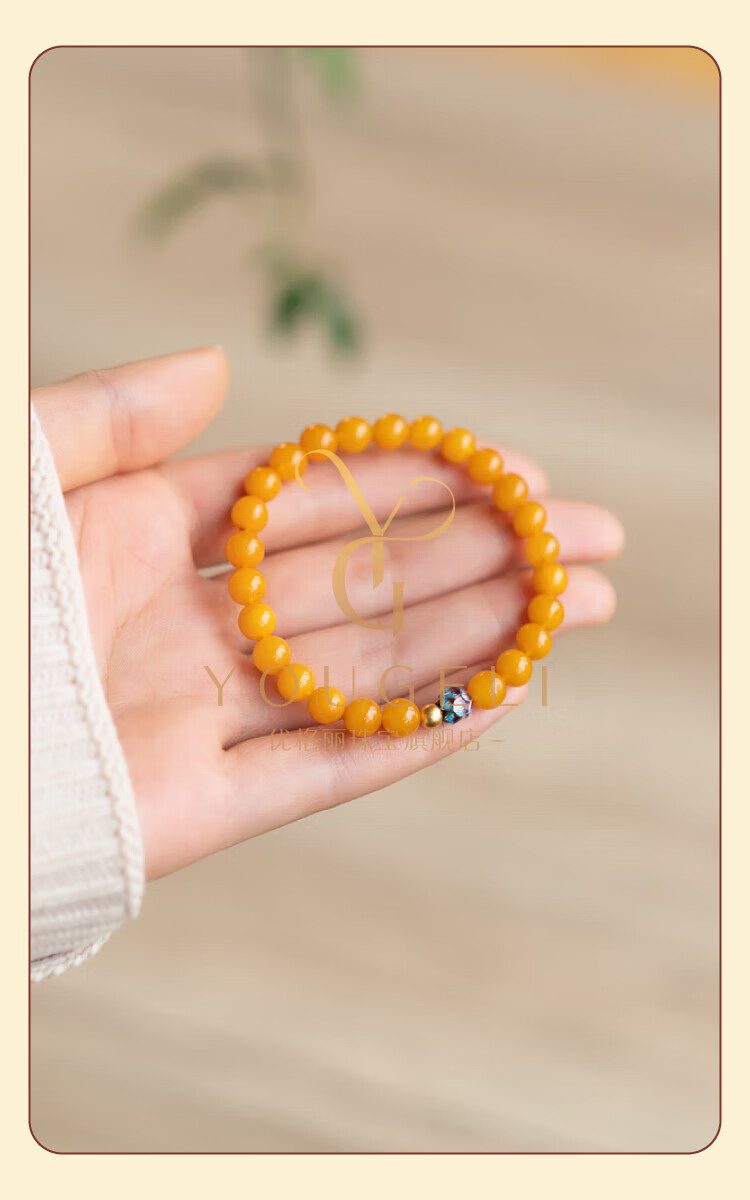 Yogurt natural beeswax bracelets for women amber beads cultural toys cloisonne lotus beads antique style bracelet beads 8mm