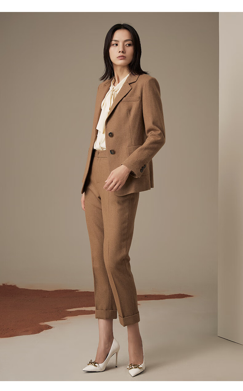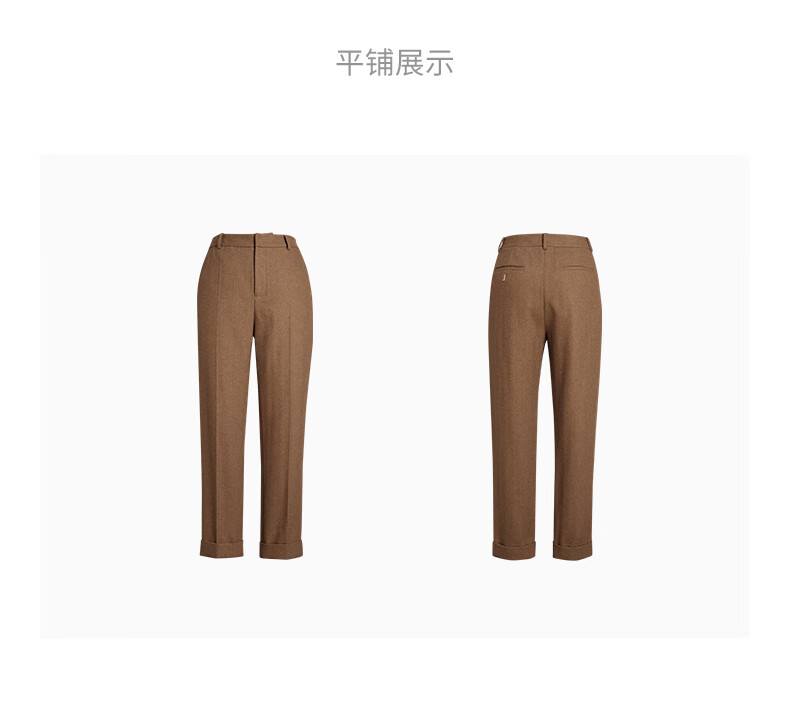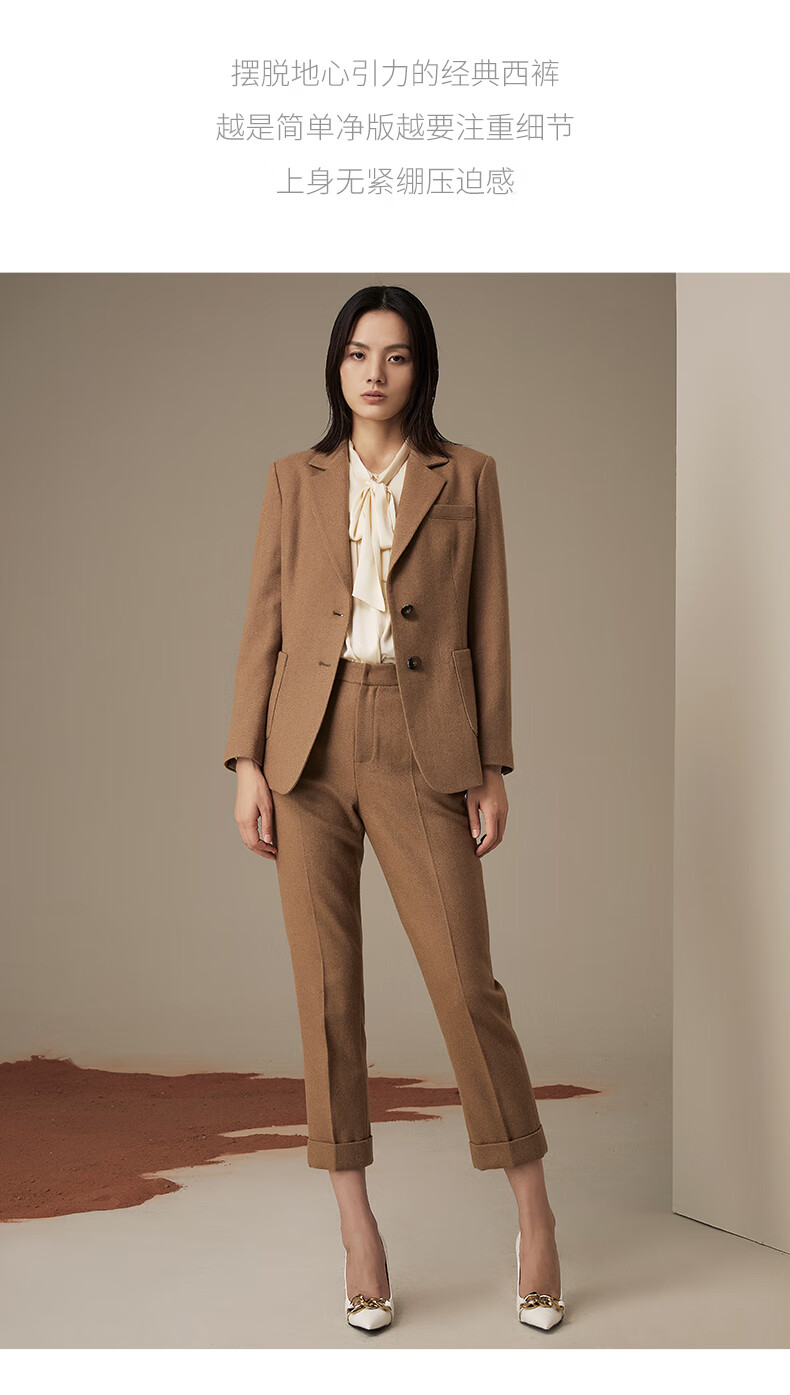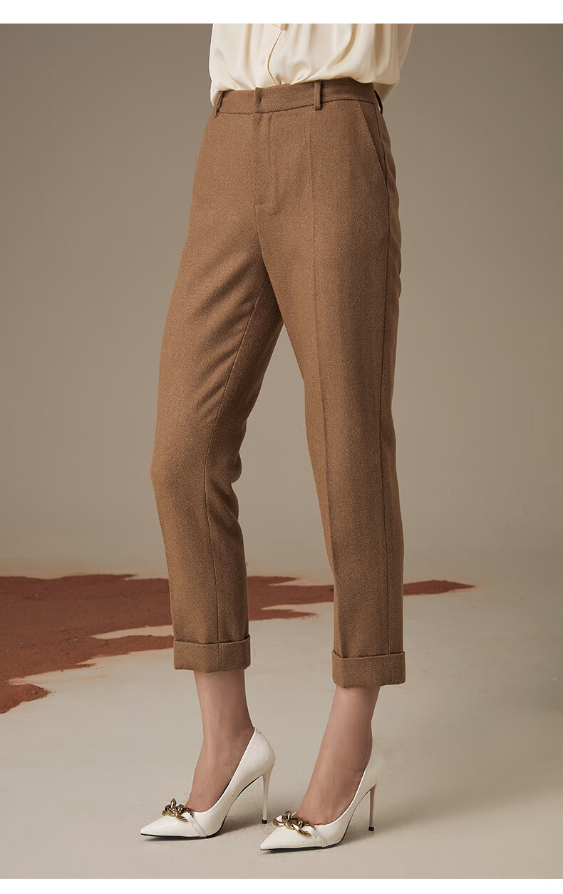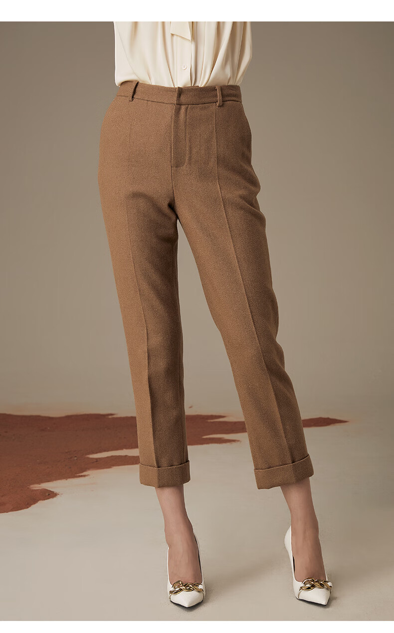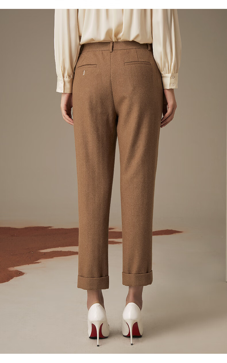 LANDI Wool Slim Fit Cuffed Straight Suit Pants Women's Autumn and Winter New Casual Pants Camel XL
