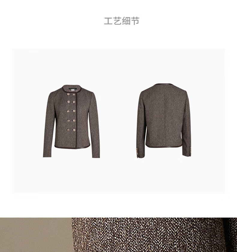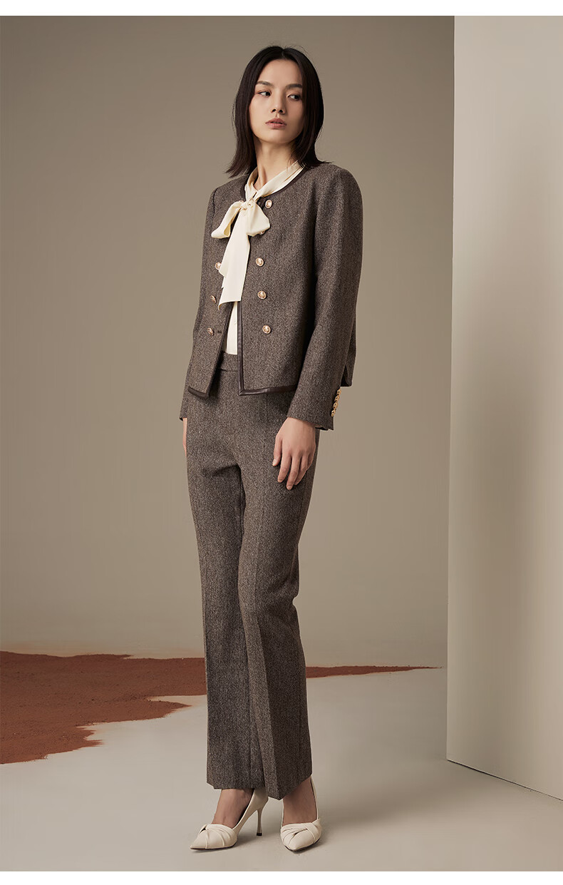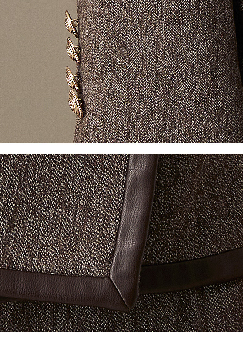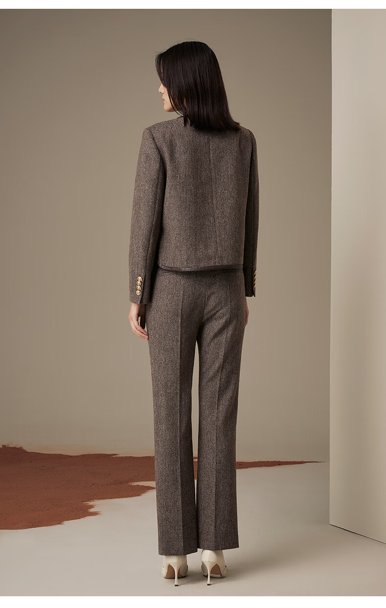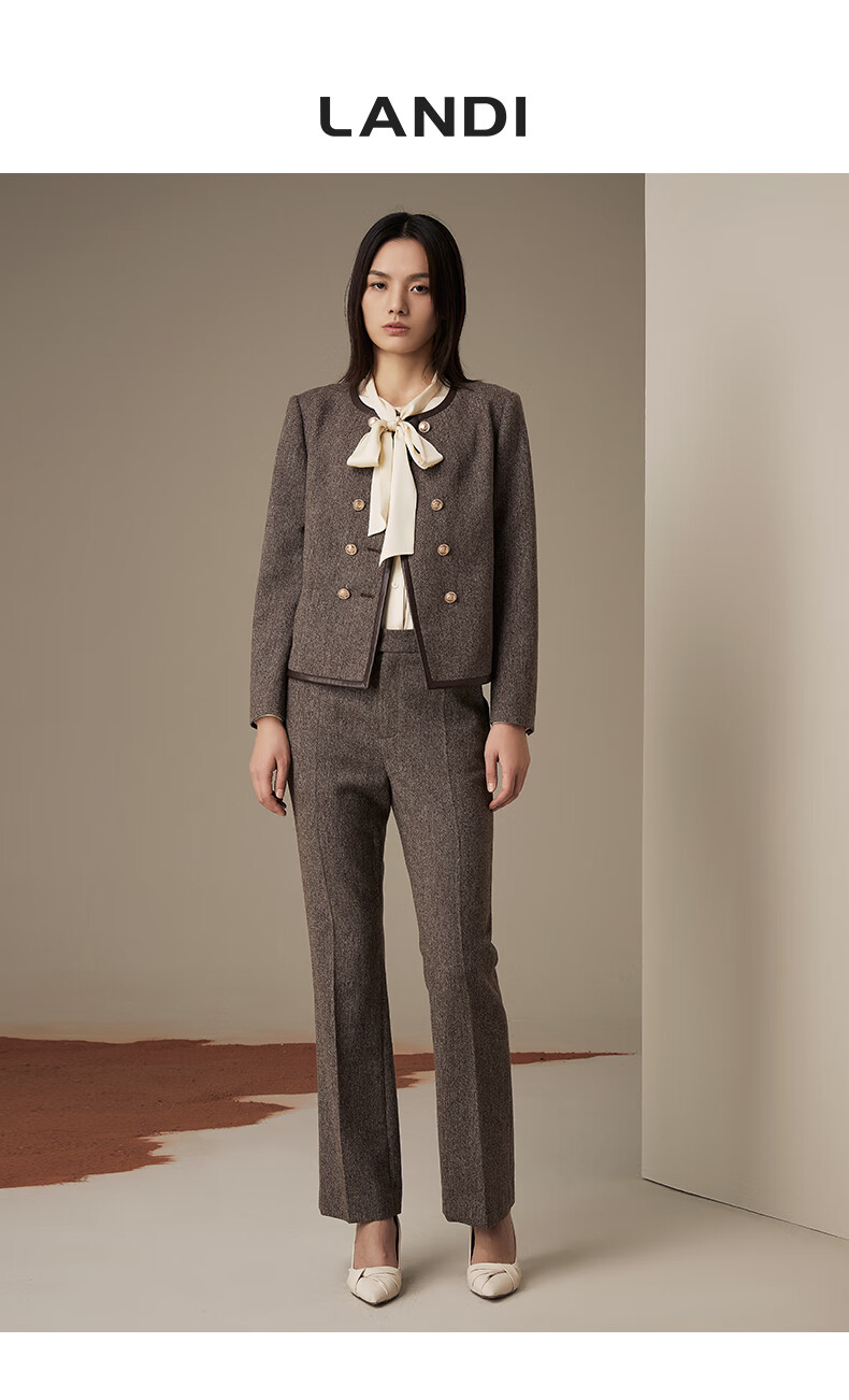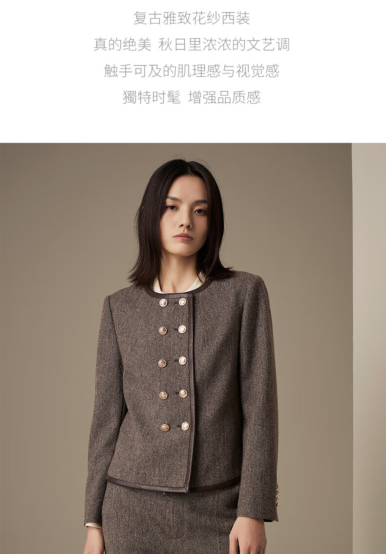 LANDI floral yarn retro high-end wool short suit jacket women's suit suit winter new product coffee floral yarn XL