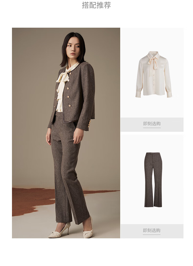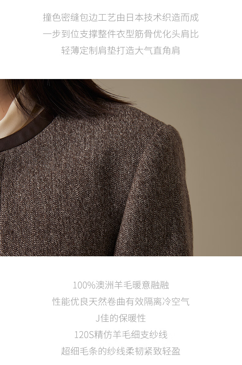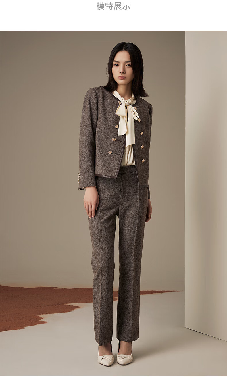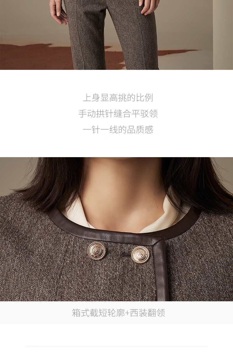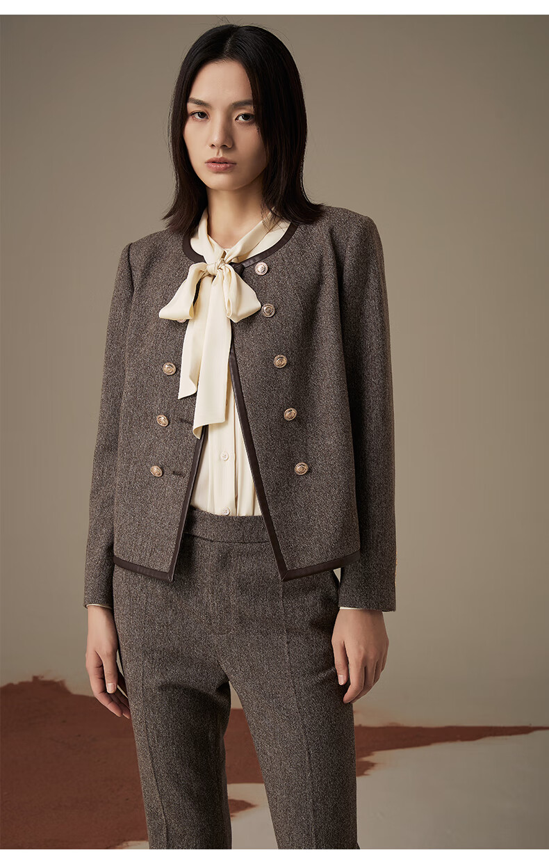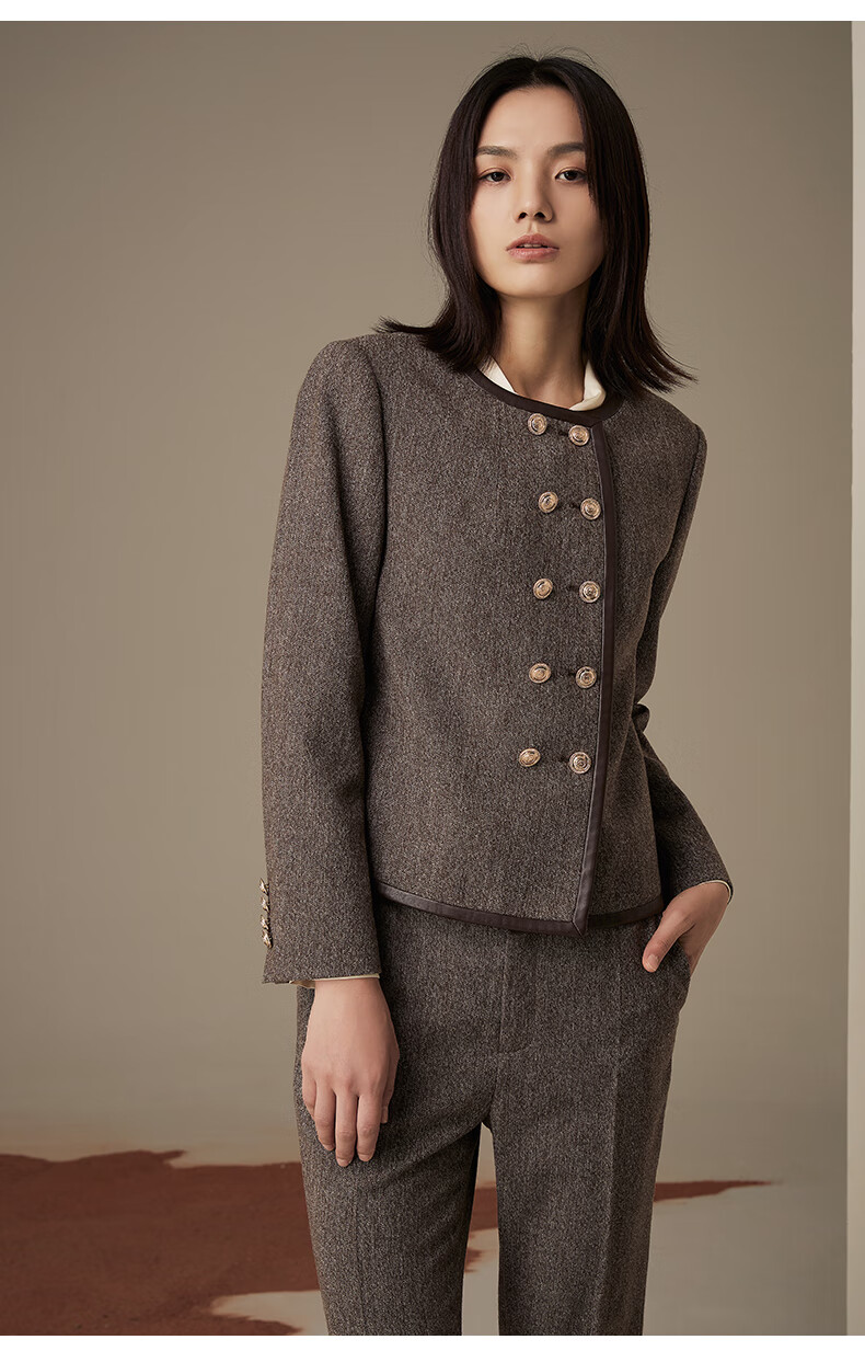 LANDI floral yarn retro high-end wool short suit jacket women's suit suit winter new product coffee floral yarn XL