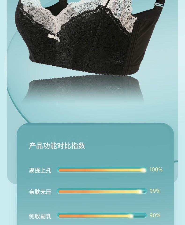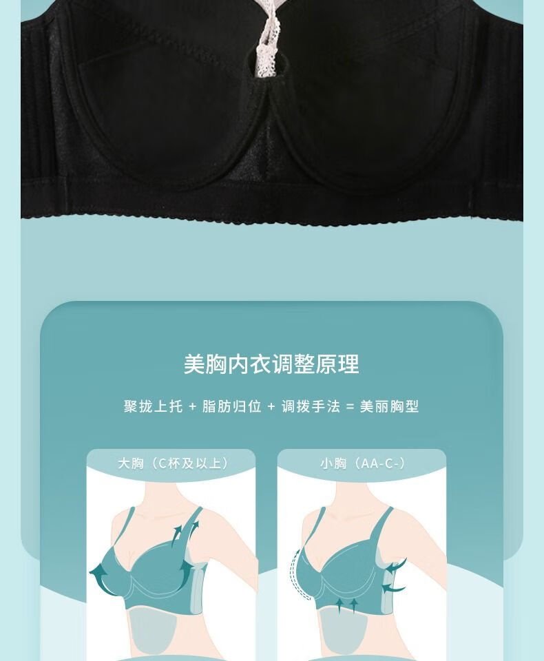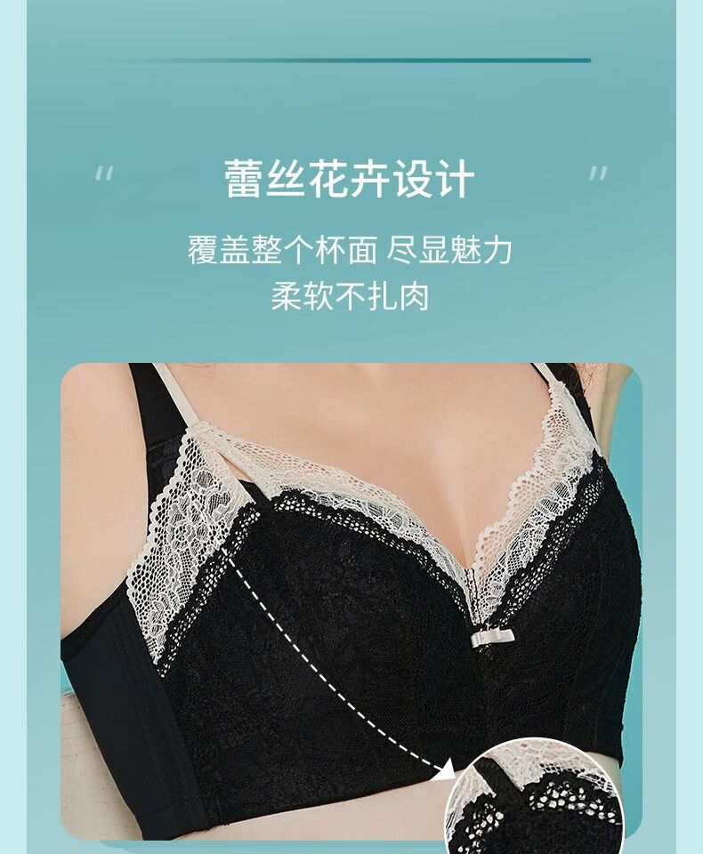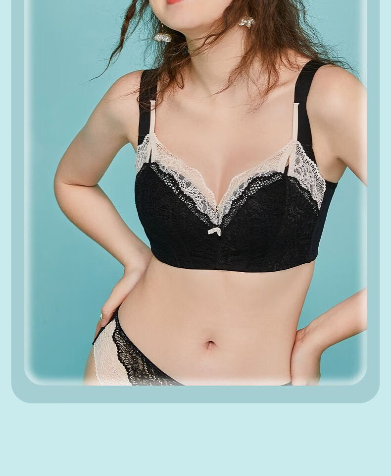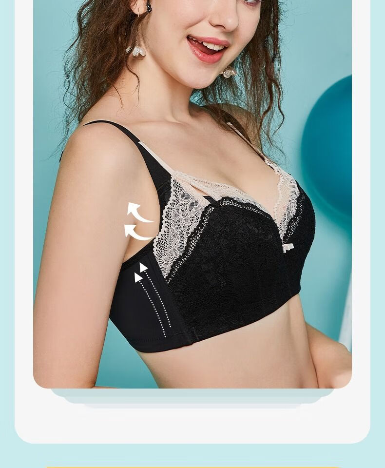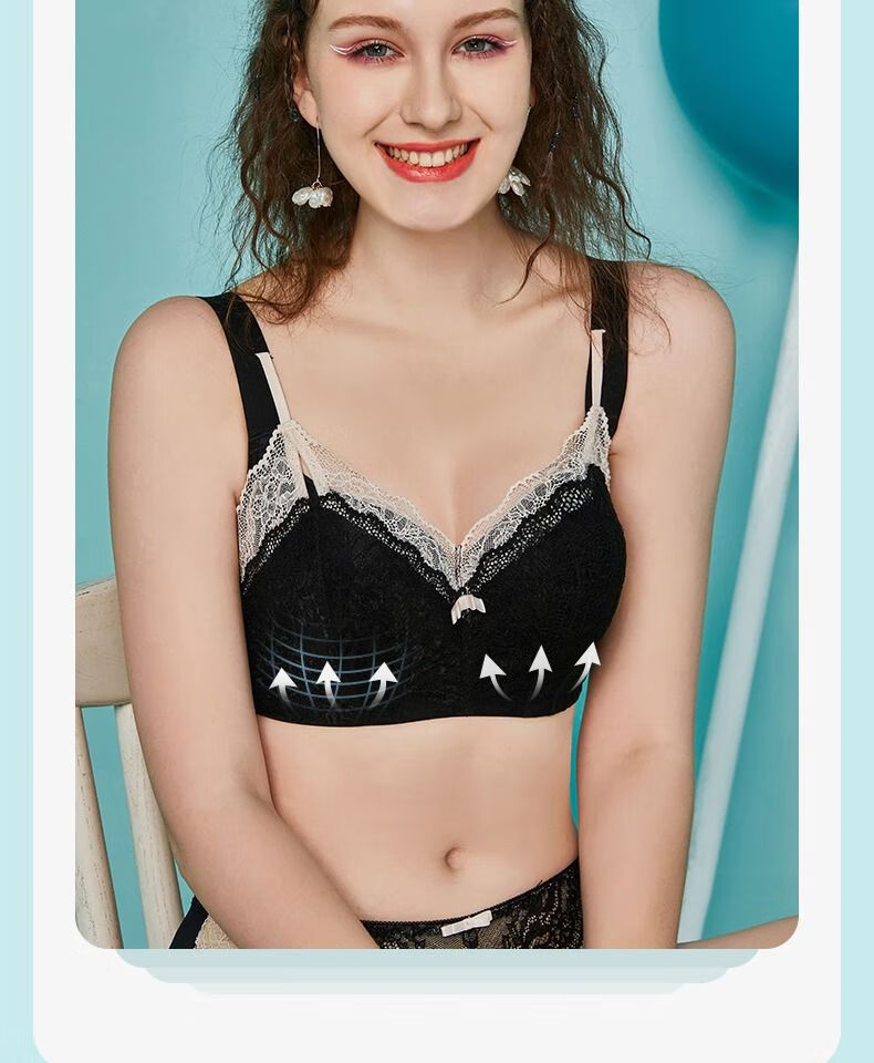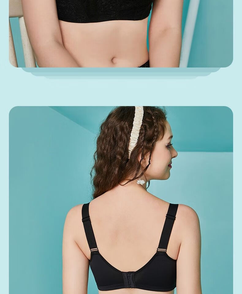 Sugar Grain, off-size clearance/half-price flash sale, Sugar Grain, large size bra, full cup, big breasts, small underwear for fat women, black - side breasts 70B