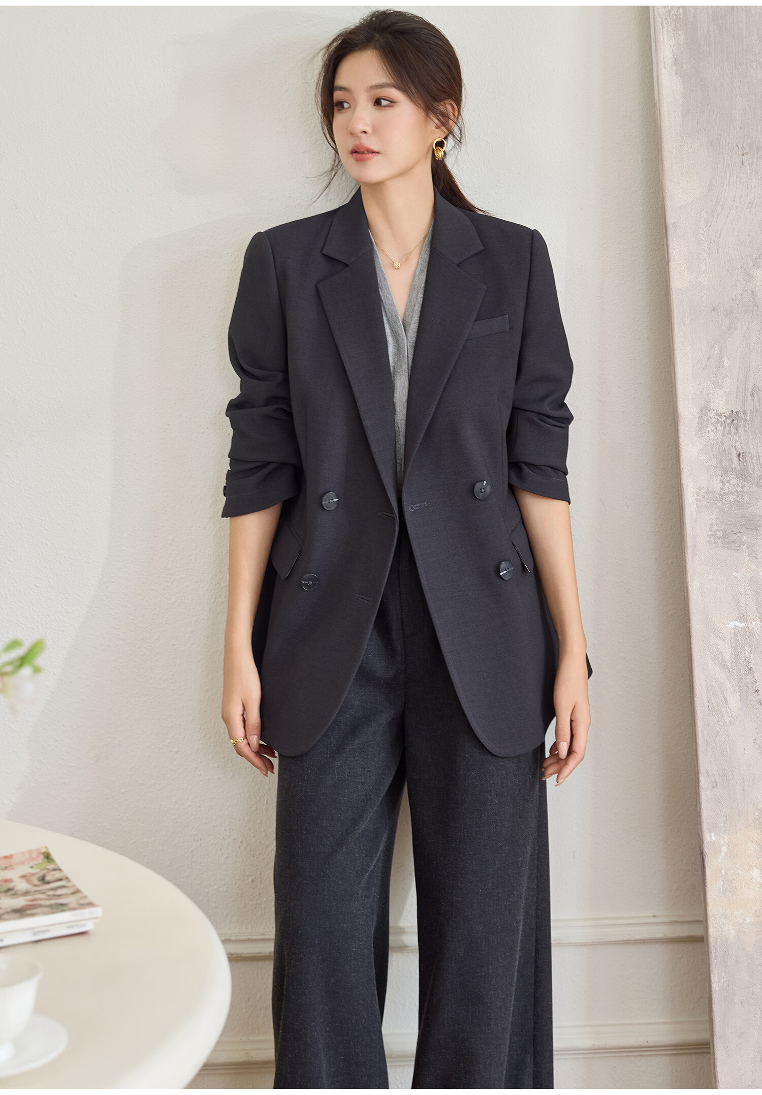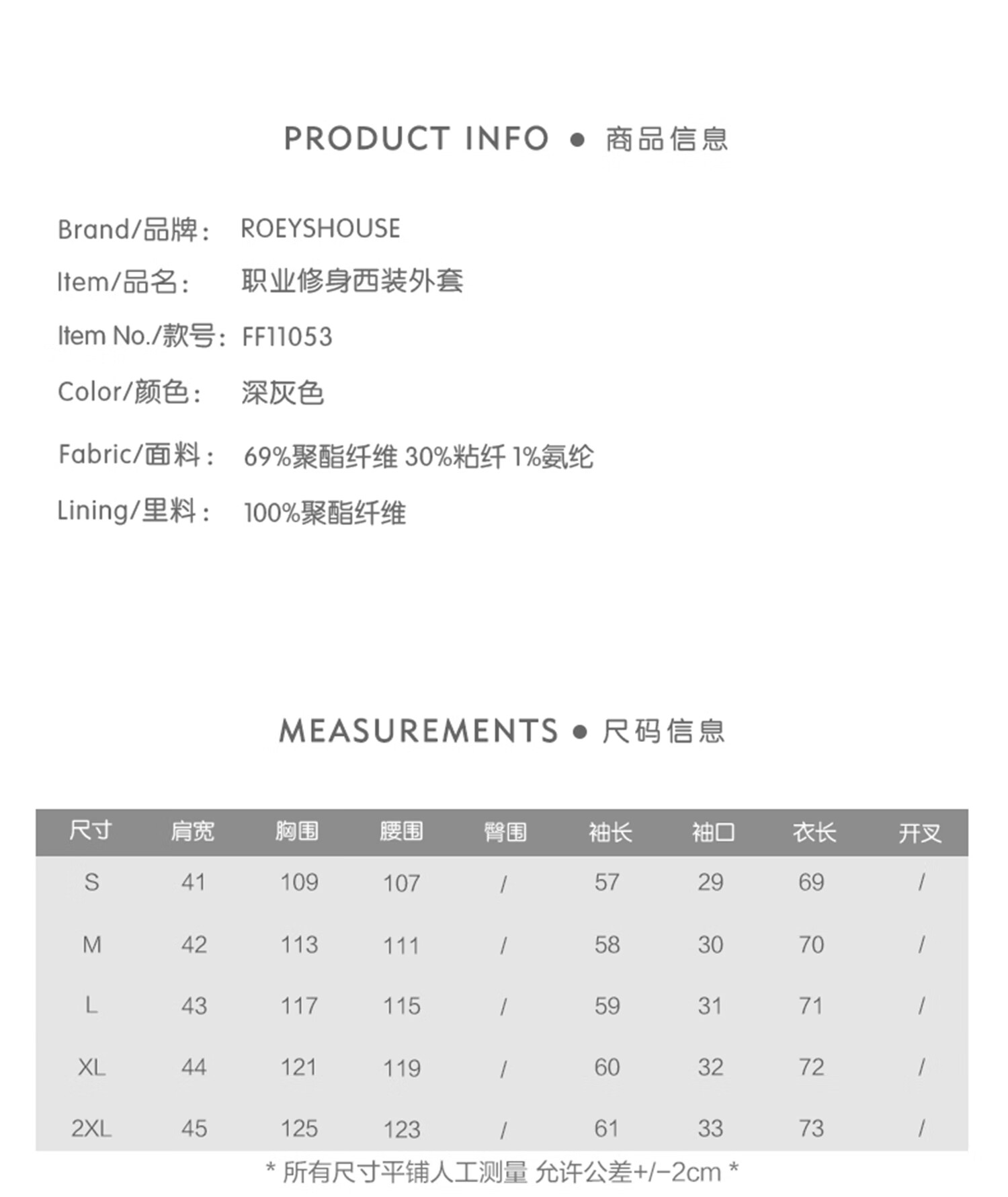ROEYSHOUSE Luo Yi blazer women's casual slim temperament commuting small suit 11053 dark gray 2XL