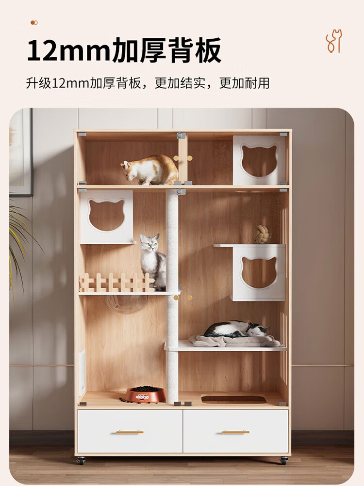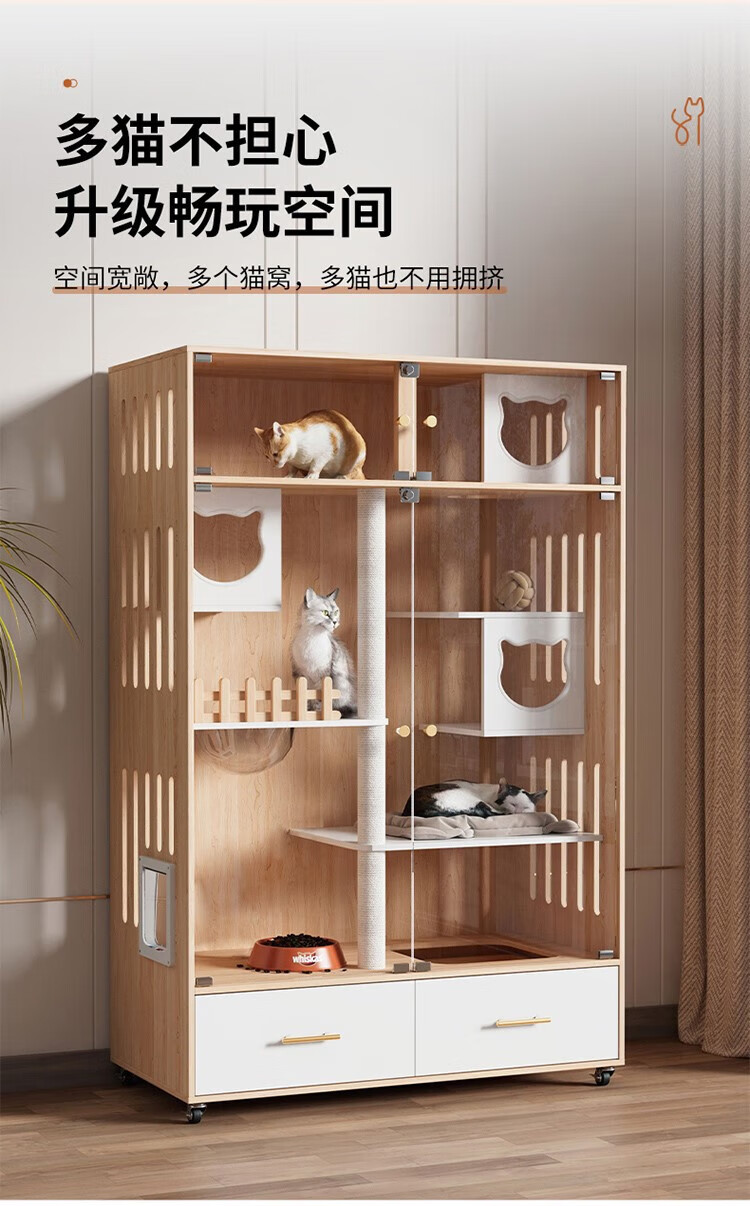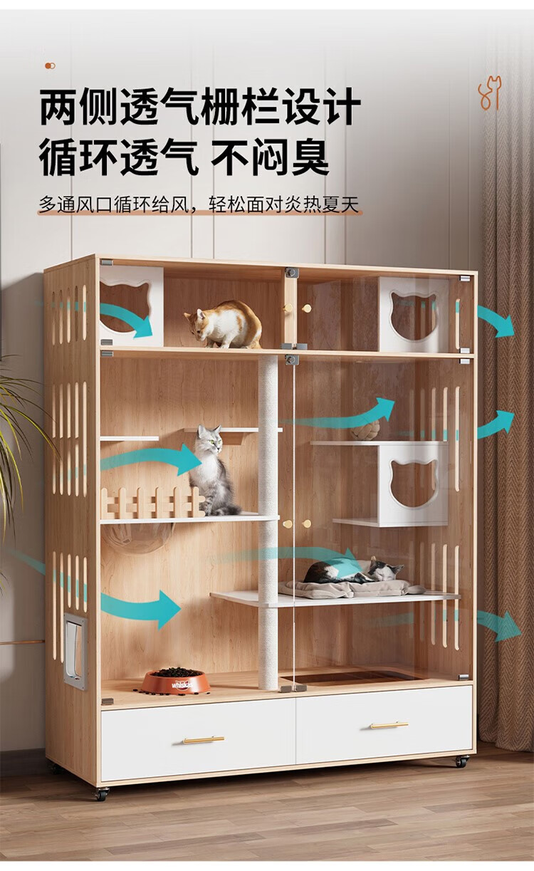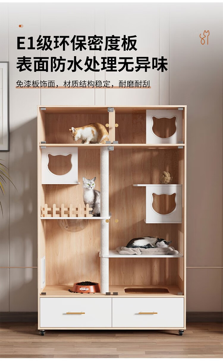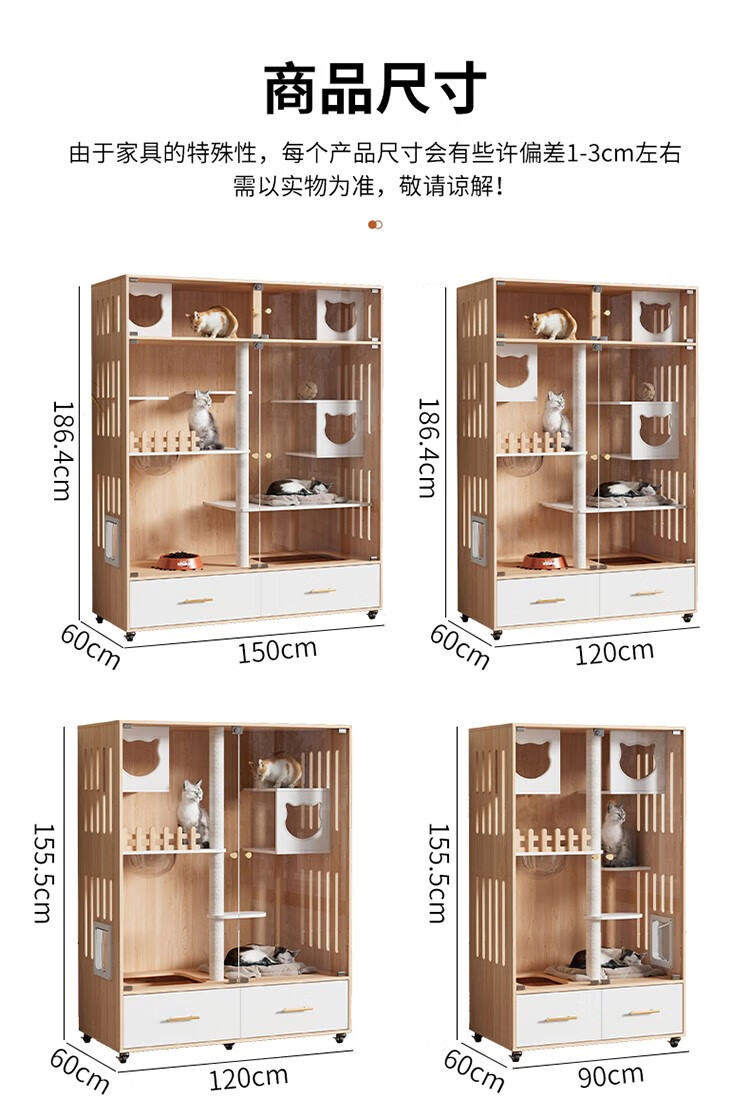 Cat cage with integrated toilet, suitable for large and small kittens, villa indoor household cat house with integrated toilet, solid wood cat, length 90, width 60, height 150cm, environmentally friendly and waterproof model, delivery to home, installation package