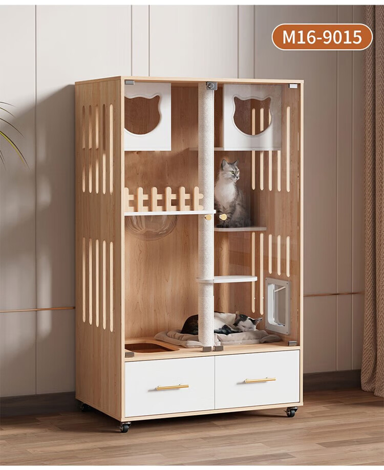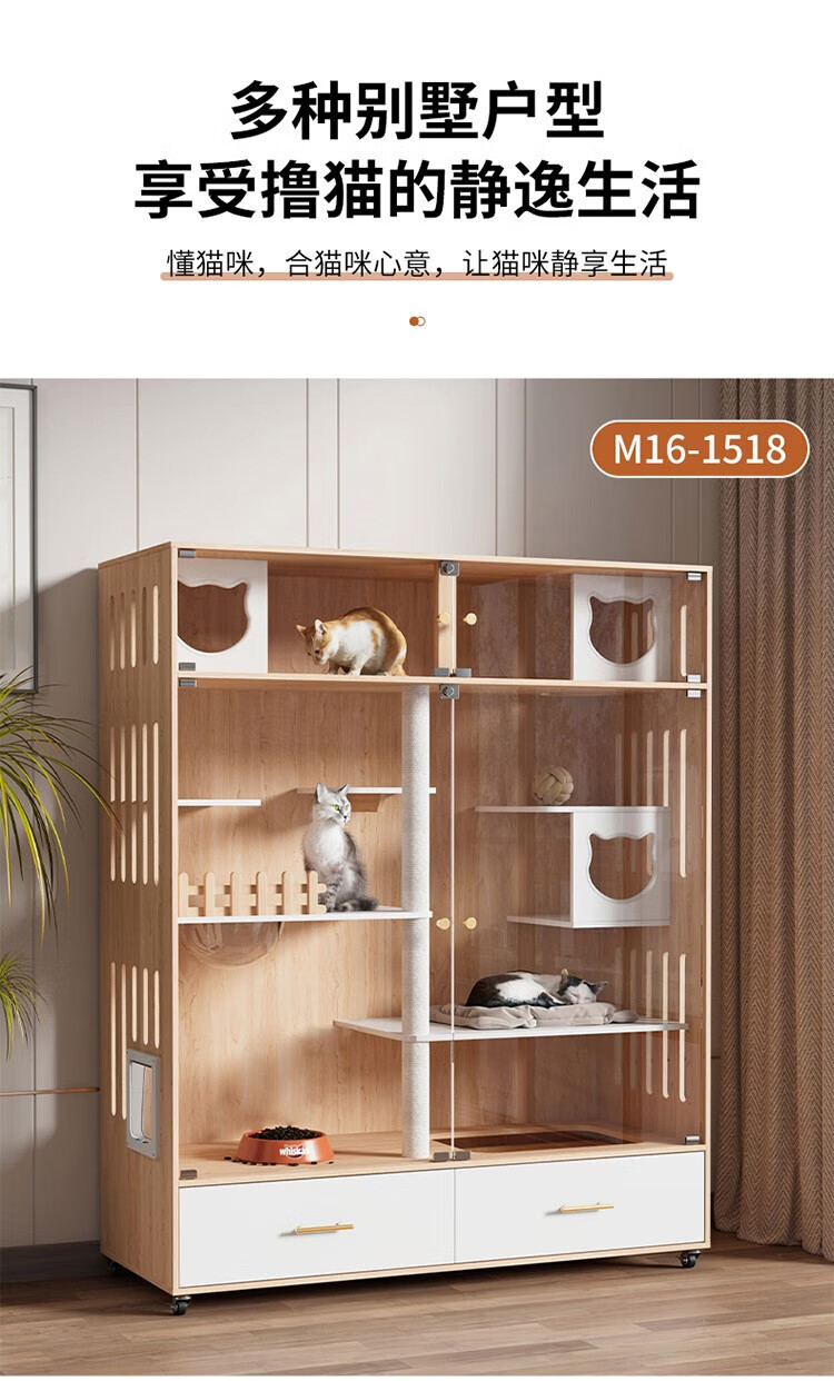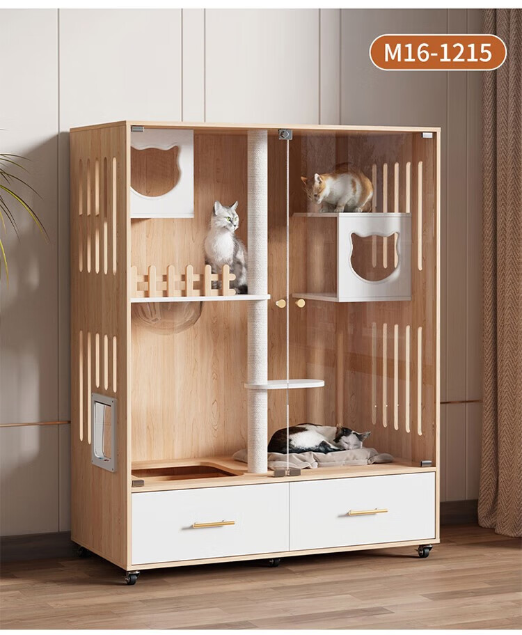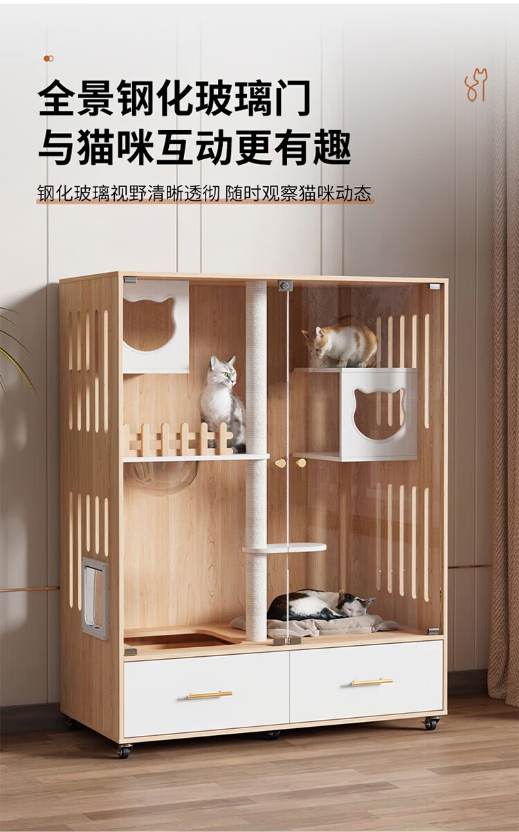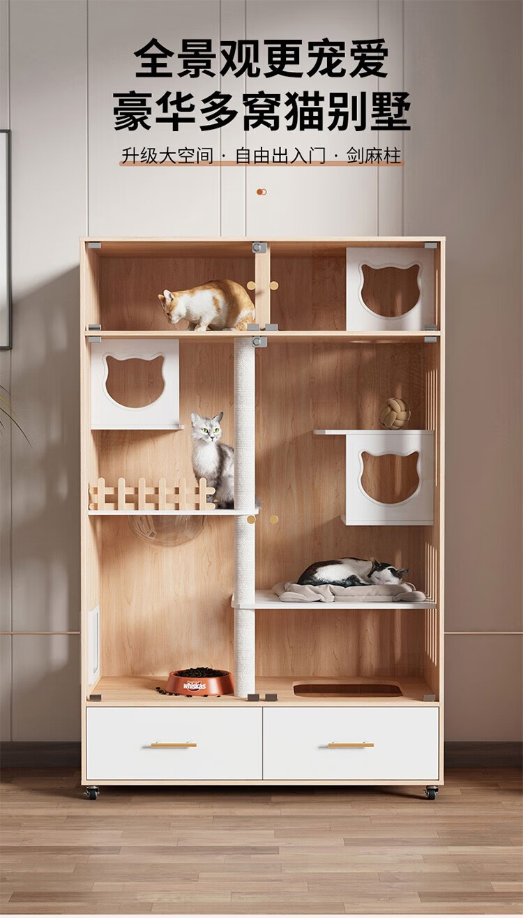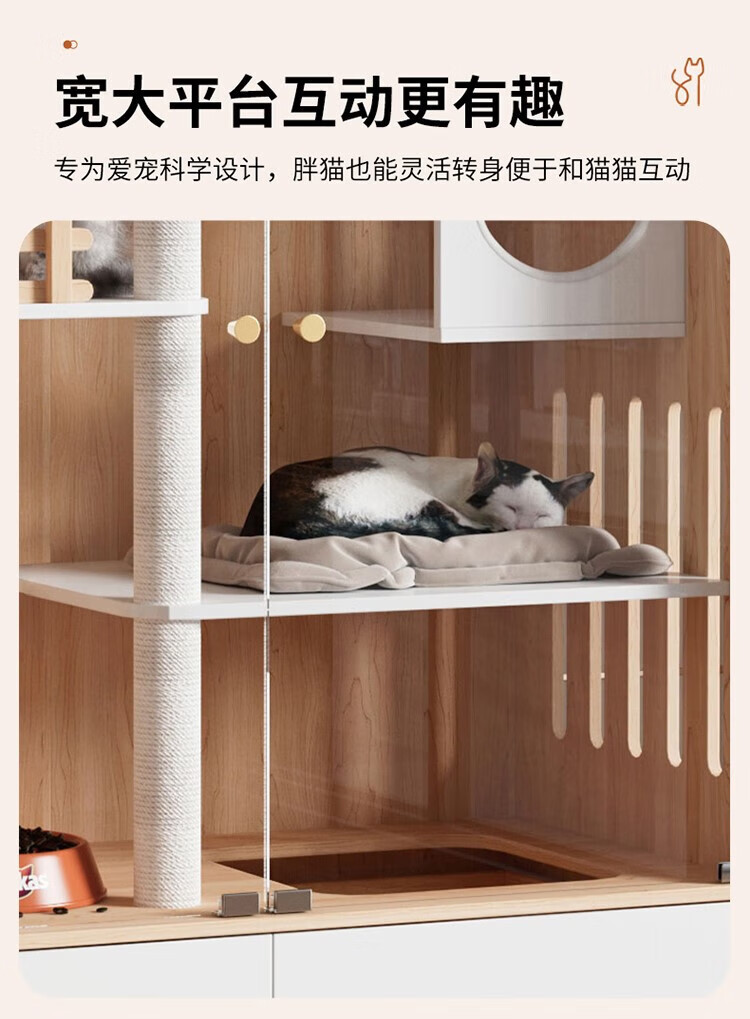 Cat cage with integrated toilet, suitable for large and small kittens, villa indoor household cat house with integrated toilet, solid wood cat, length 90, width 60, height 150cm, environmentally friendly and waterproof model, delivery to home, installation package