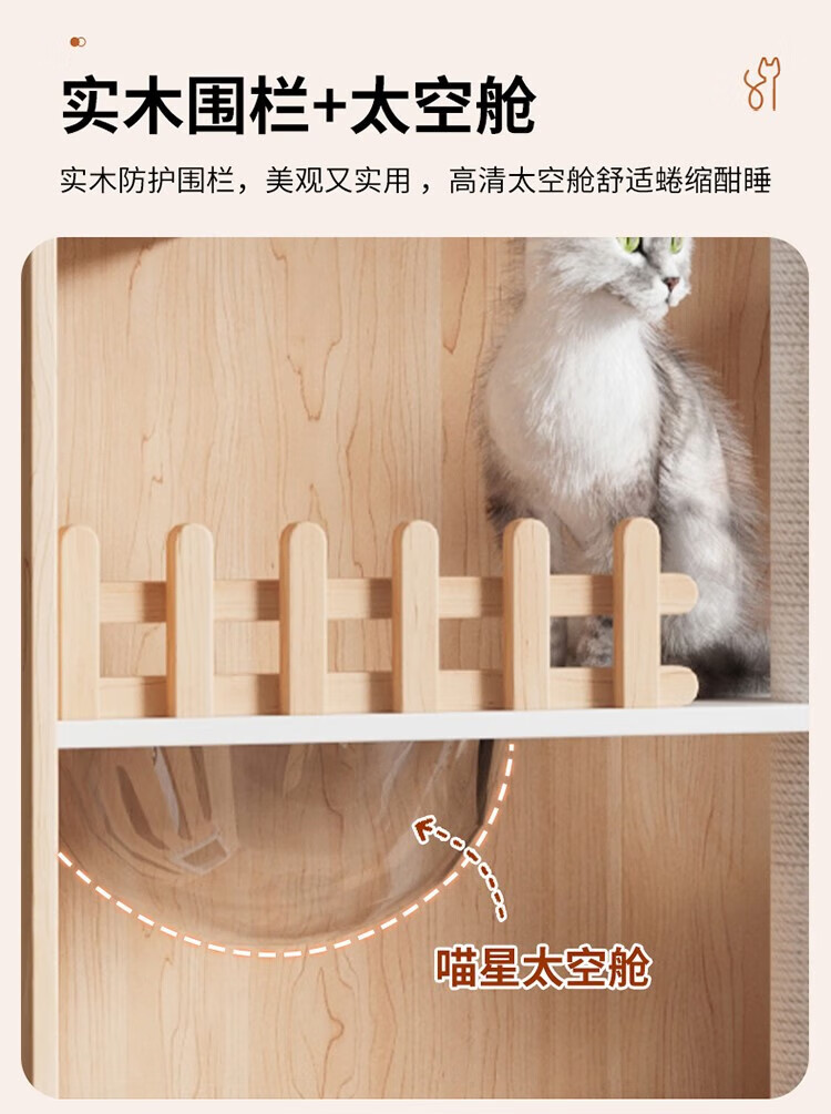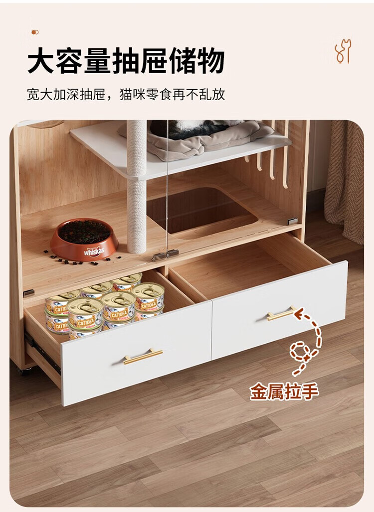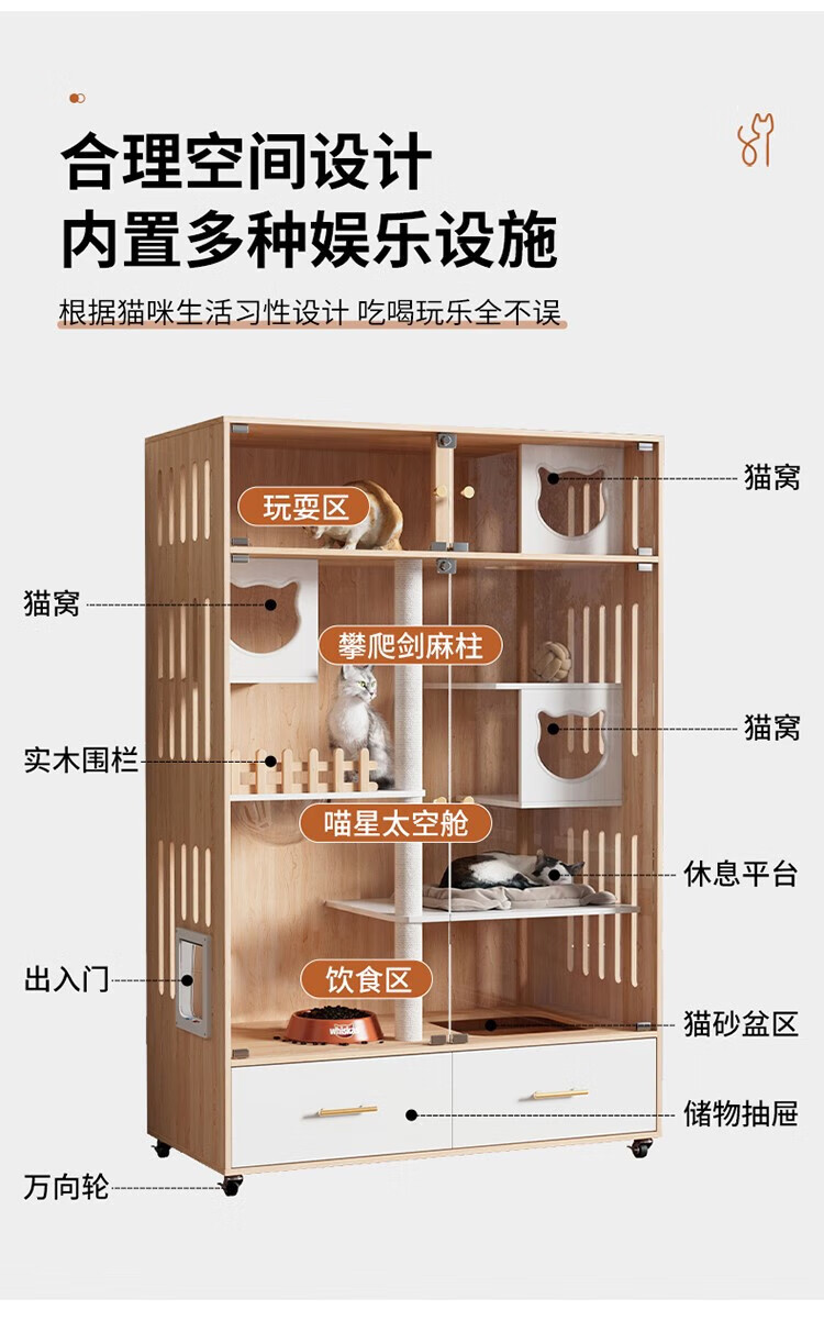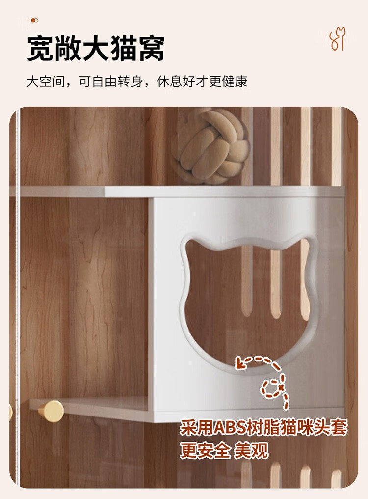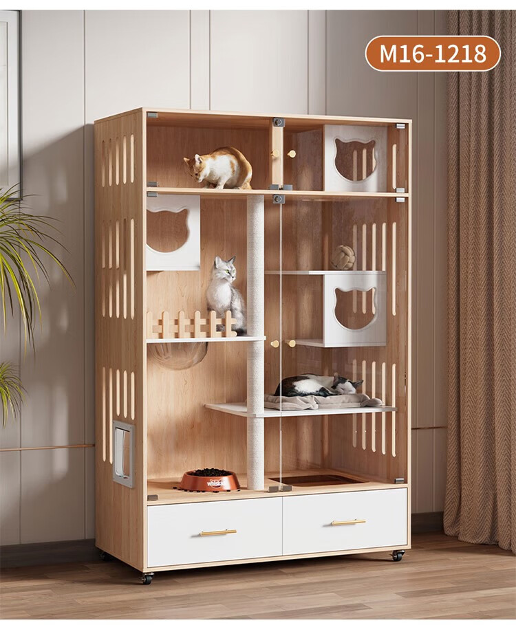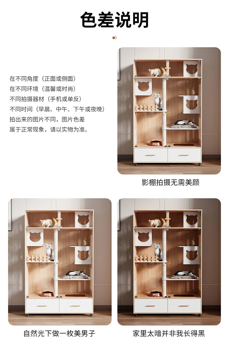 Cat cage with integrated toilet, suitable for large and small kittens, villa indoor household cat house with integrated toilet, solid wood cat, length 90, width 60, height 150cm, environmentally friendly and waterproof model, delivery to home, installation package