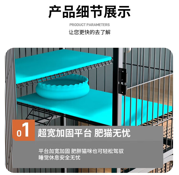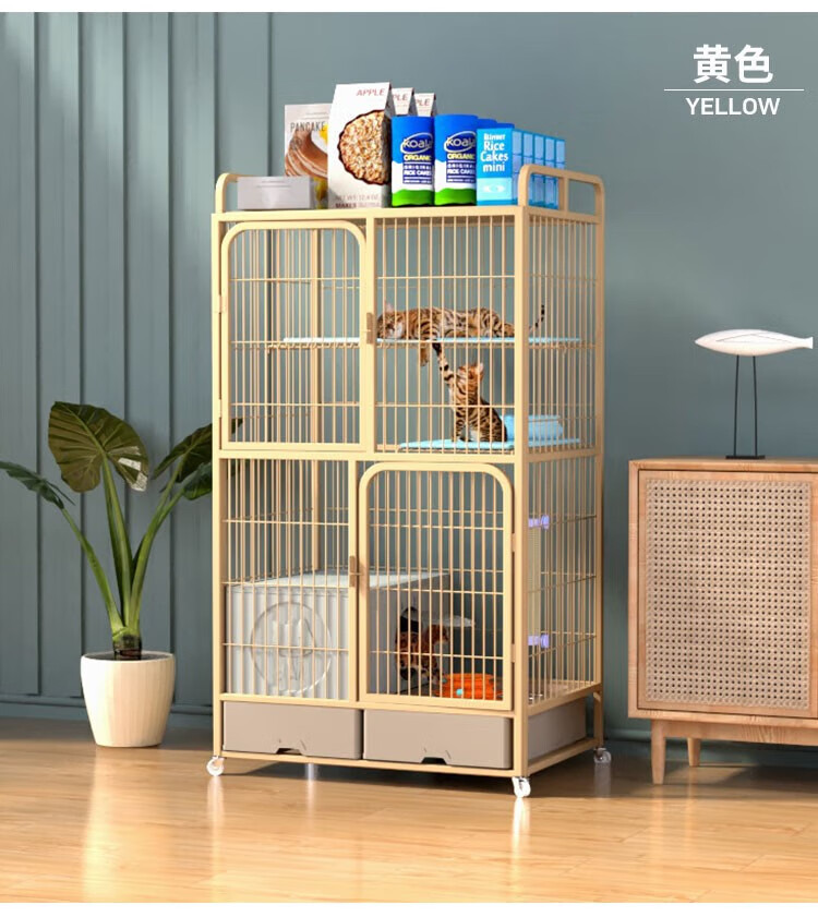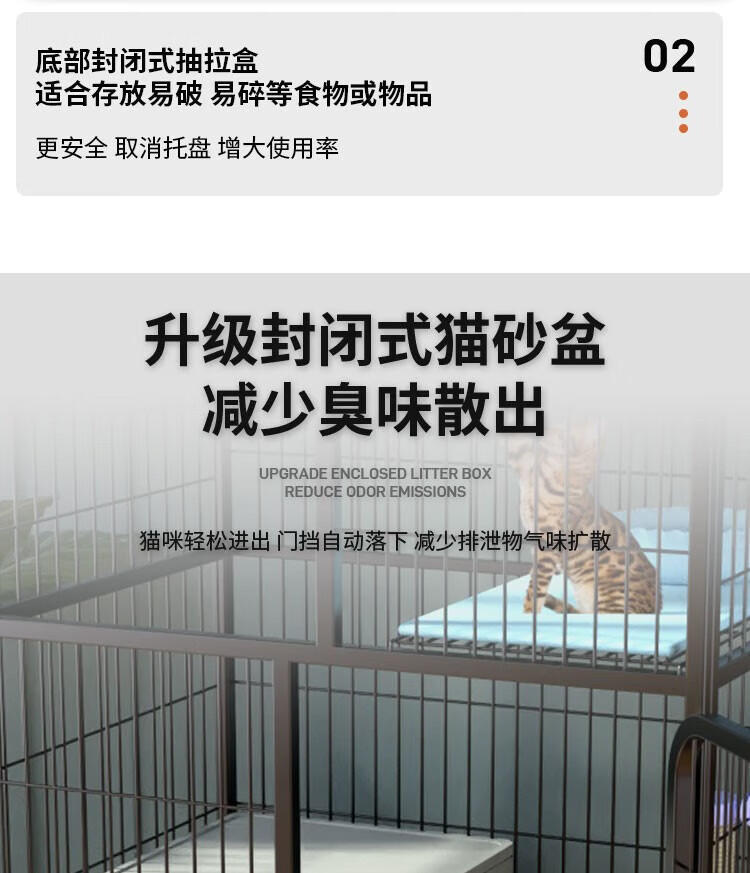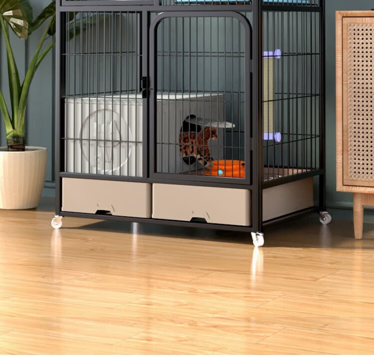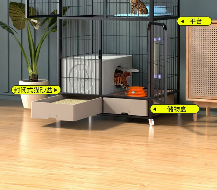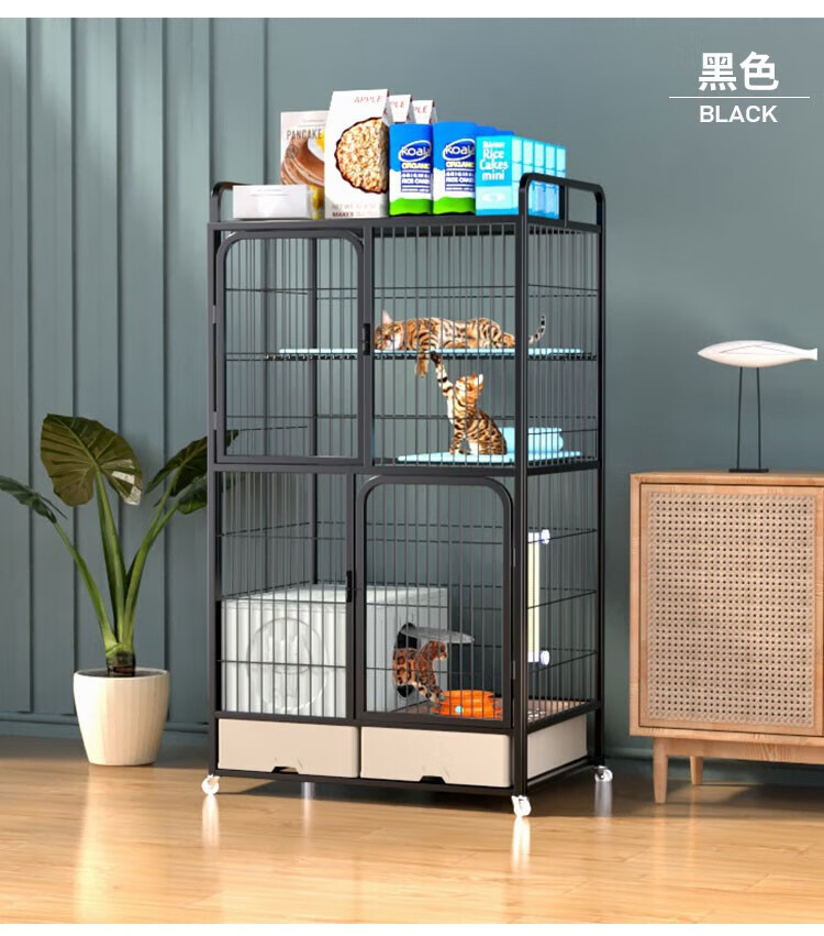Cat cage with toilet in one, suitable for large and small kittens, home indoor four-story cat cage, villa, super large, free, three-story, black 78*55*110, classic model without cat litter, package one closed cat litter box + storage box