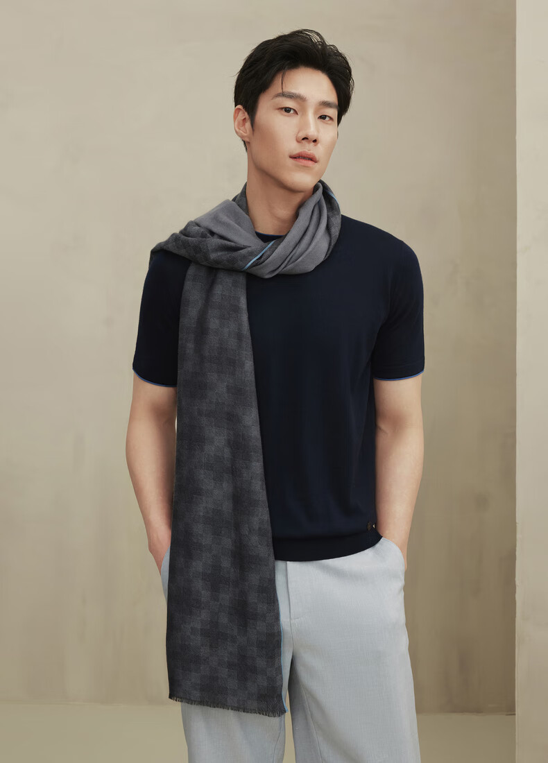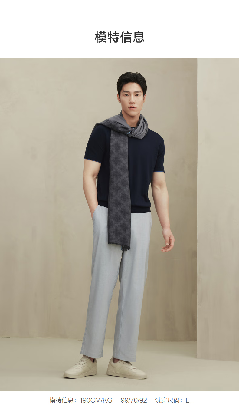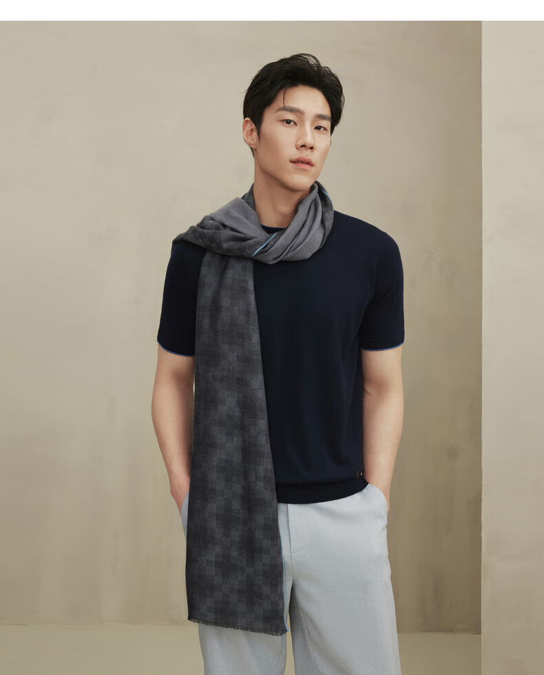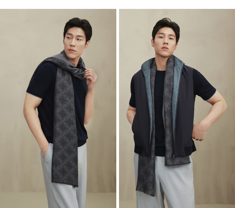 Ordos 1980 Autumn and Winter Worsted Cashmere Warm and Comfortable Scarf Men's Simple Cashmere Scarf 1980 Gray 180cmX60cm