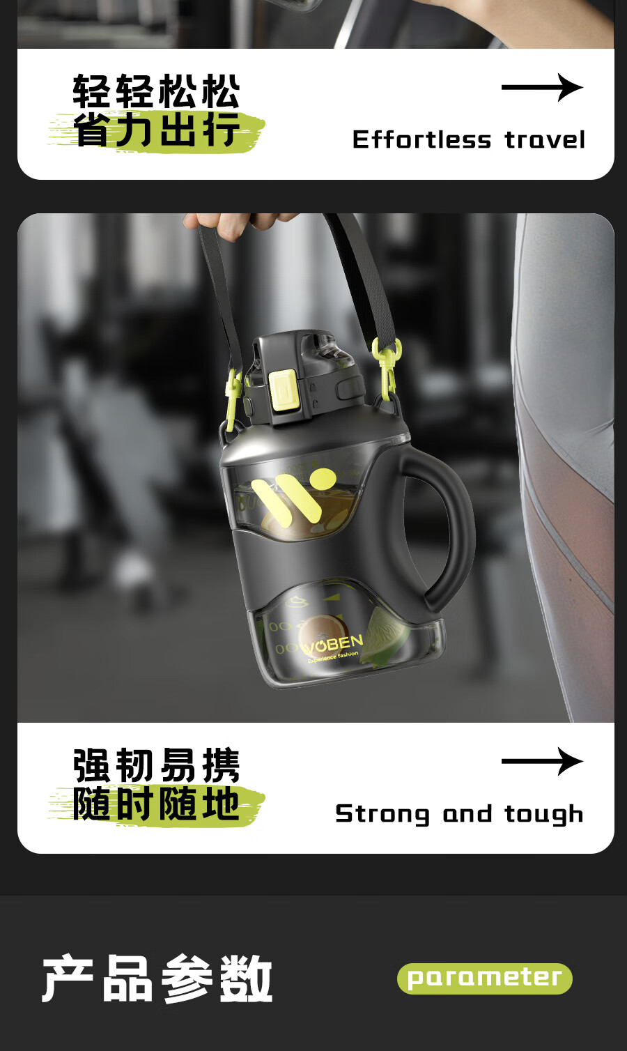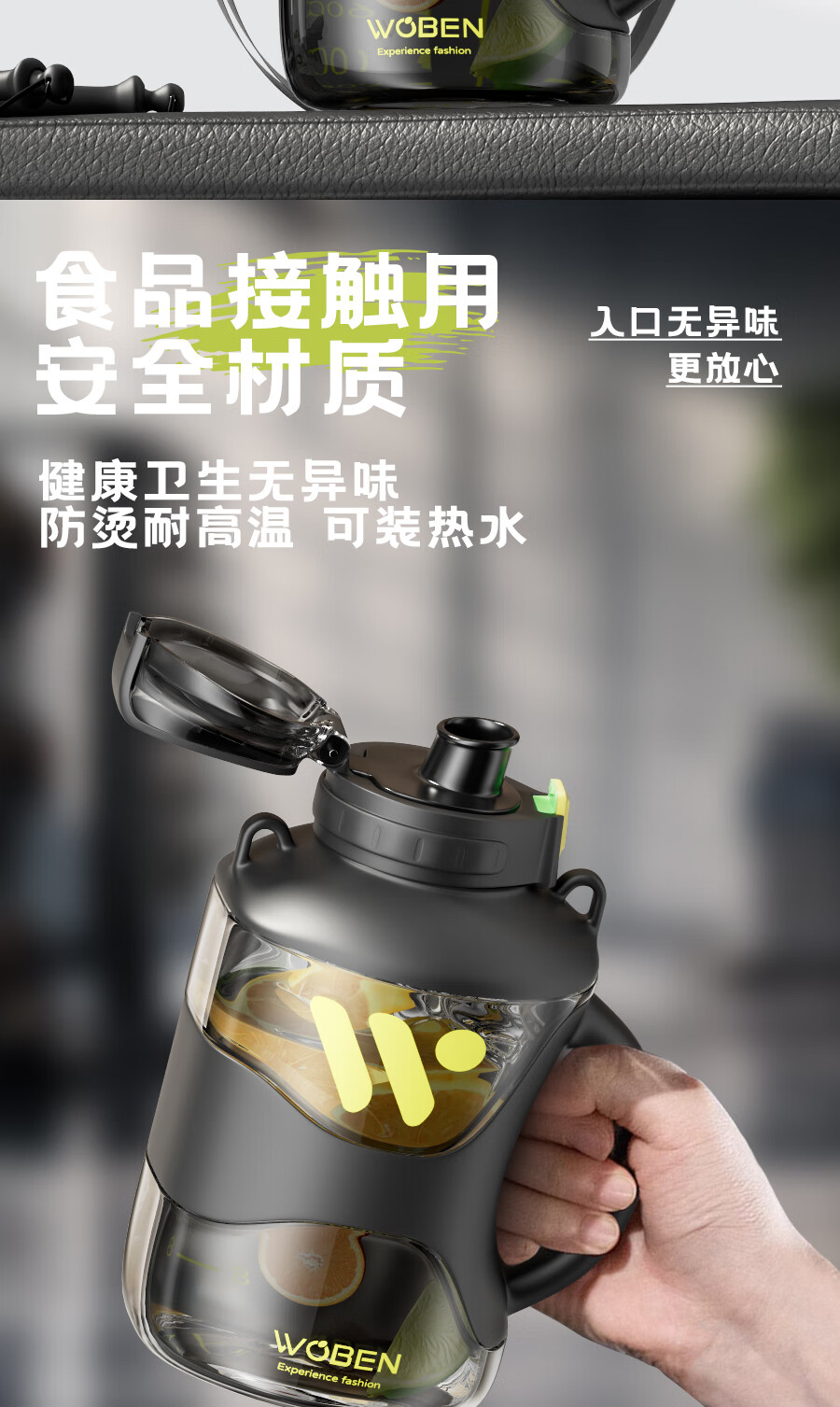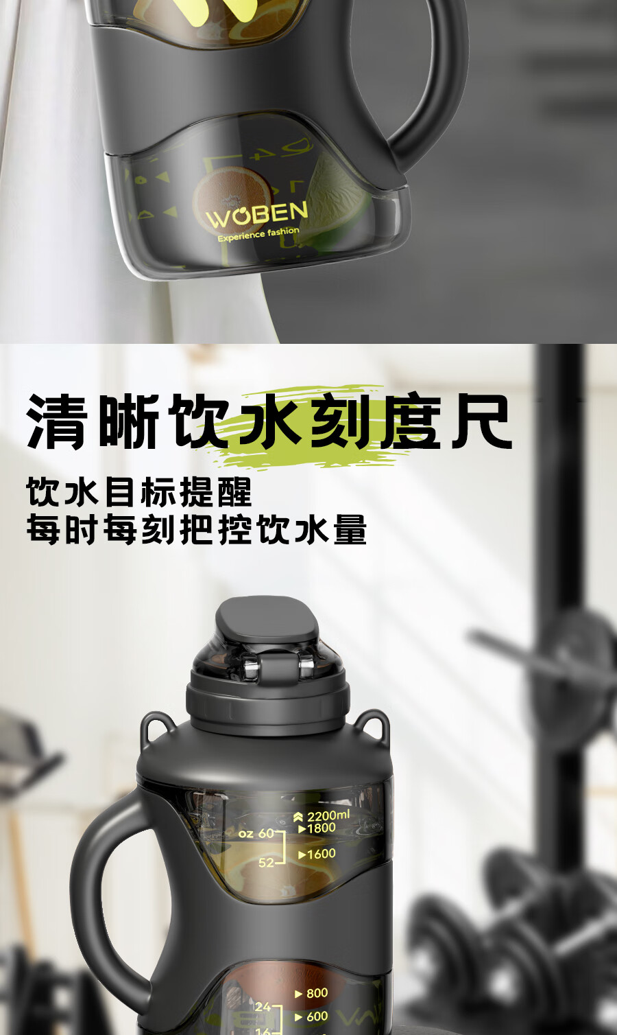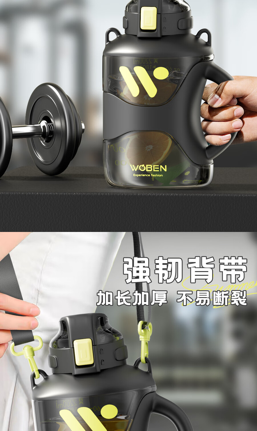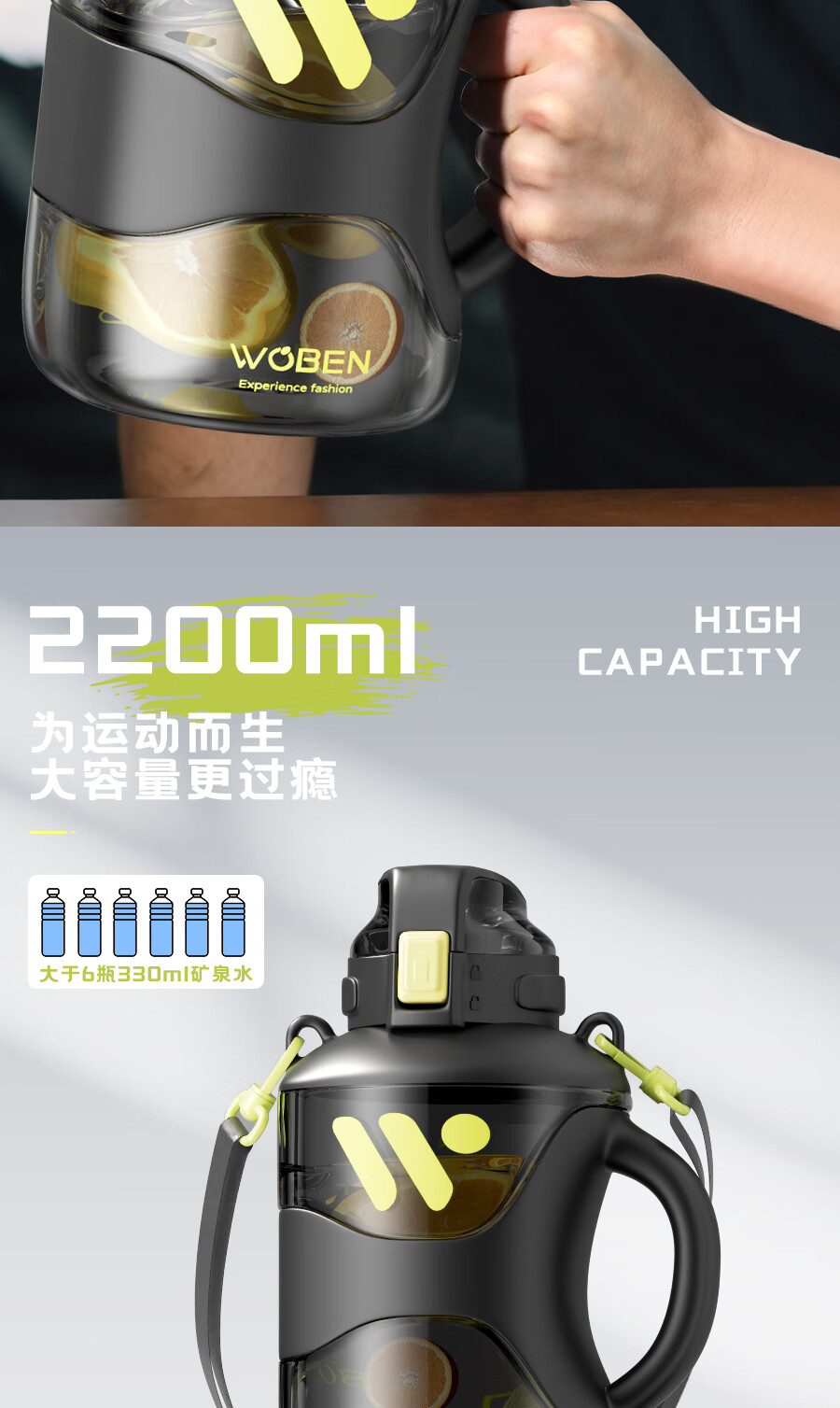 Tianxi (TIANXI) ultra-large capacity sports kettle, military training water cup, high temperature resistant cup, boy's ton bucket, fitness sports bucket, black and green + tea warehouse + strap + long cup brush 2200ml