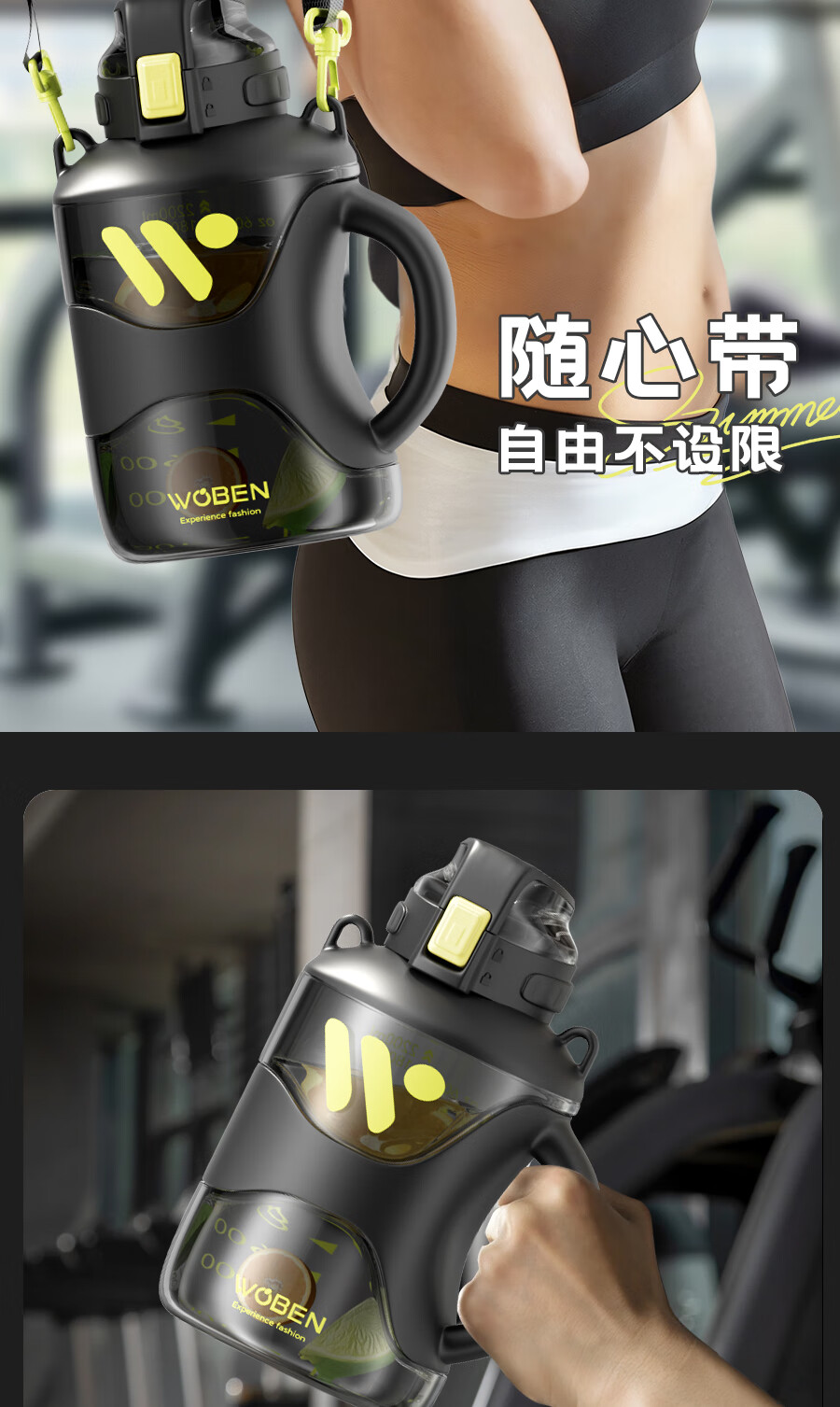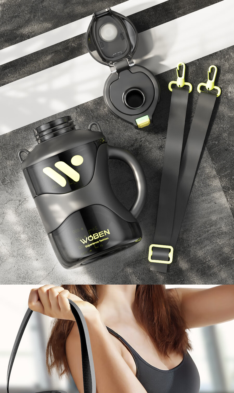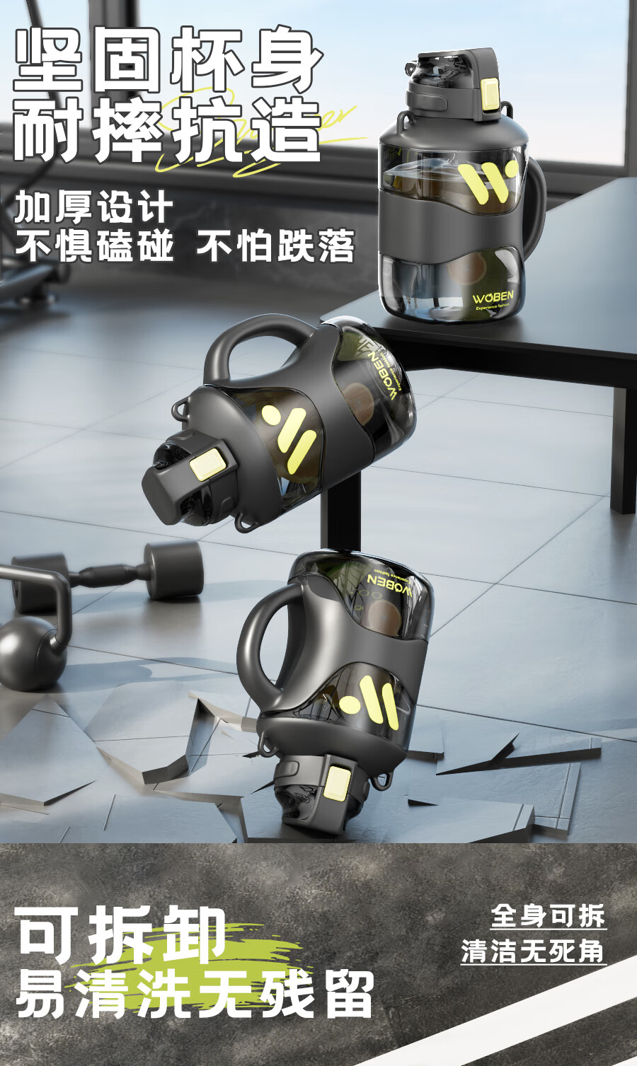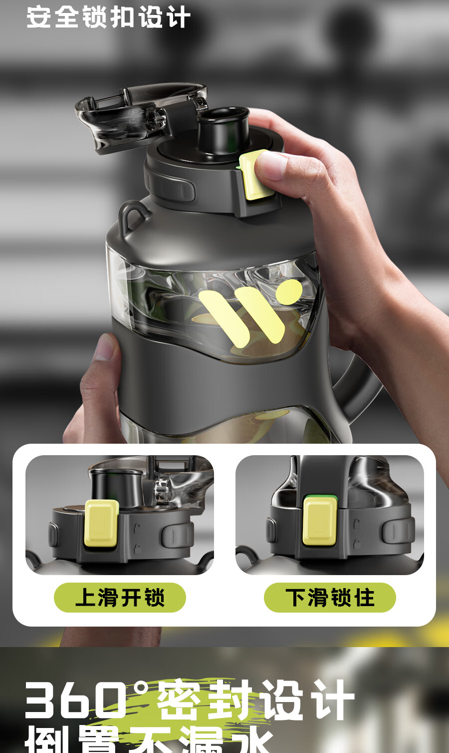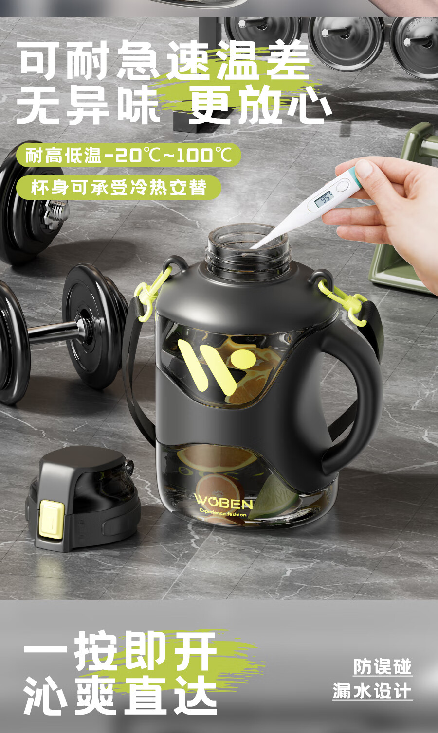 Tianxi (TIANXI) ultra-large capacity sports kettle, military training water cup, high temperature resistant cup, boy's ton bucket, fitness sports bucket, black and green + tea warehouse + strap + long cup brush 2200ml