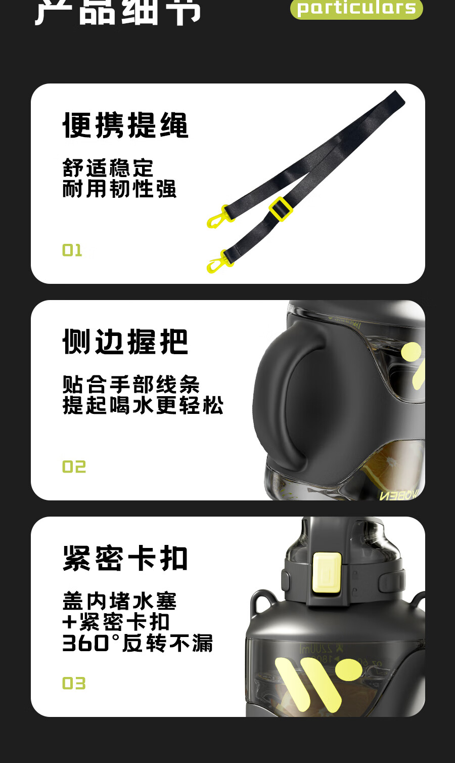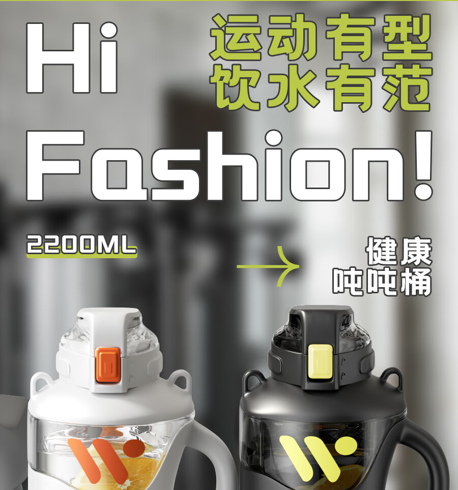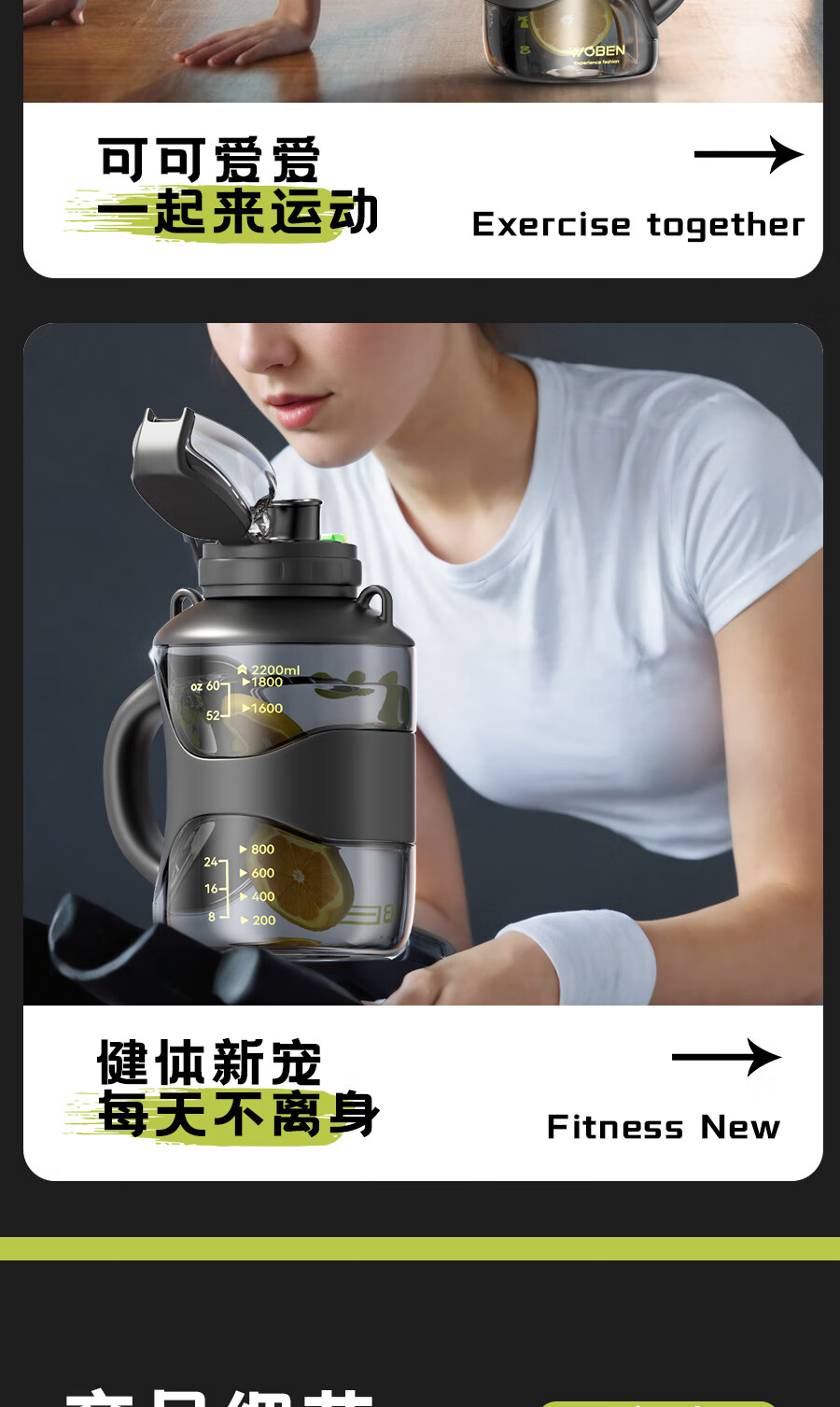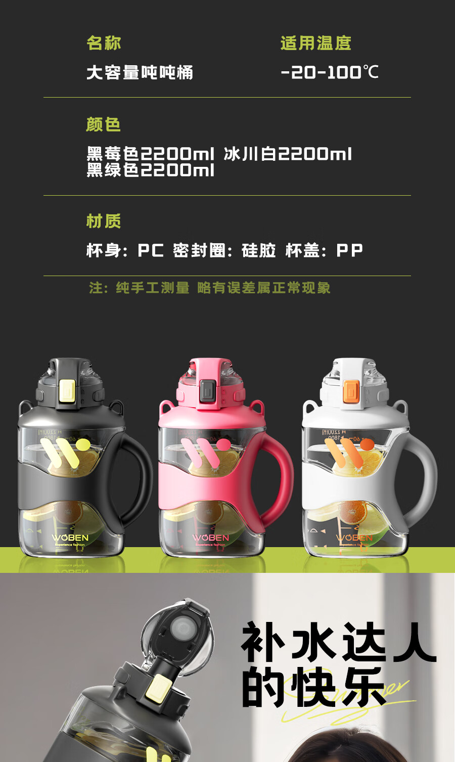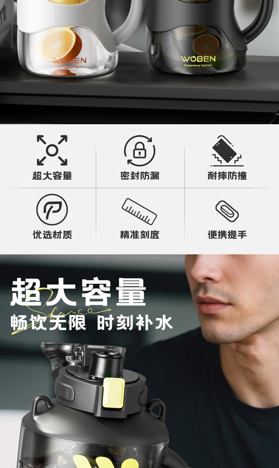 Tianxi (TIANXI) ultra-large capacity sports kettle, military training water cup, high temperature resistant cup, boy's ton bucket, fitness sports bucket, black and green + tea warehouse + strap + long cup brush 2200ml