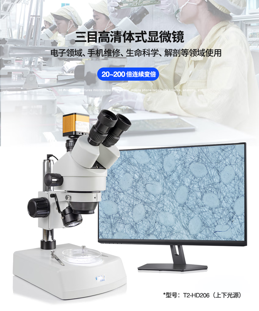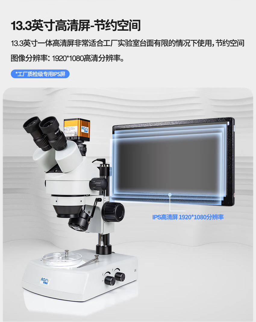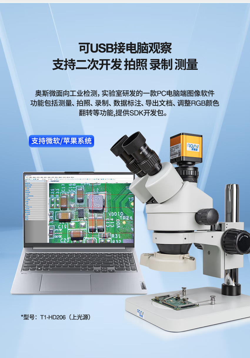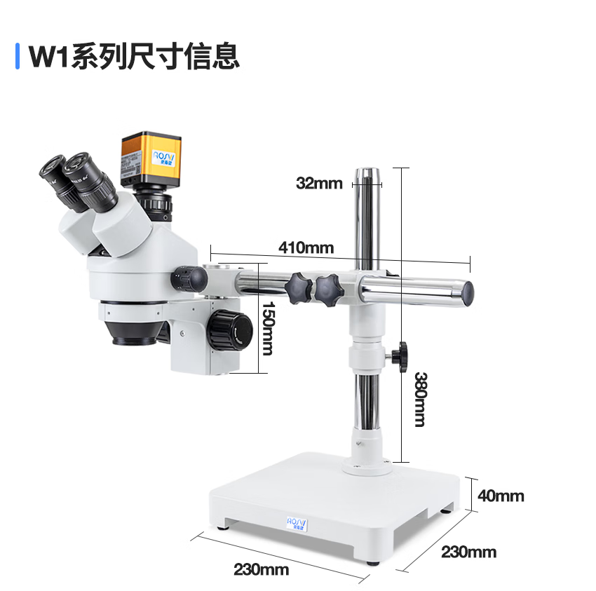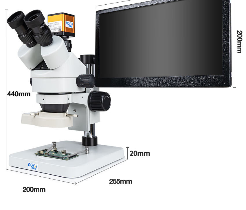 AOSVI industrial stereo microscope HD video professional optical electronic magnifying microscope with screen mobile phone repair pcb W2-HD206 (arm gimbal) + 14-inch high-definition screen