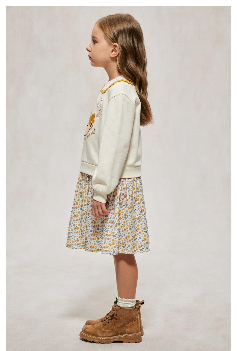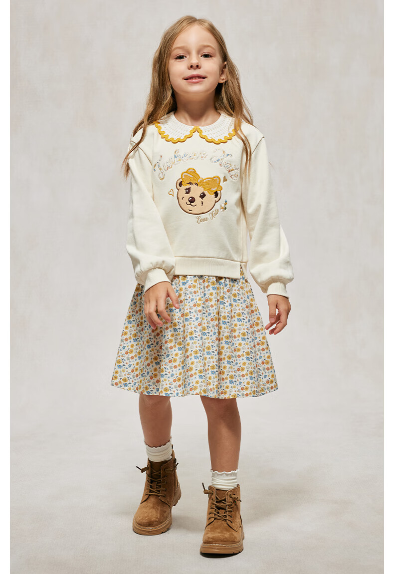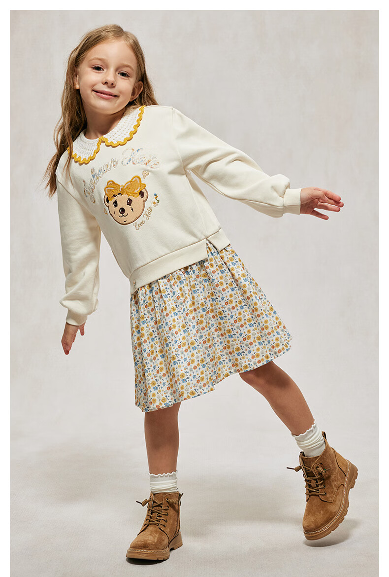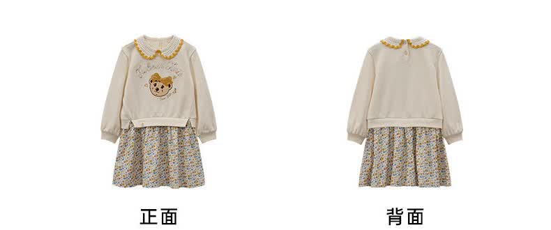 Teenie Weenie Kids Bear Children's Clothing Autumn Girls' Embroidered Lapel Floral Splicing Dress Mixed Color 150 cm