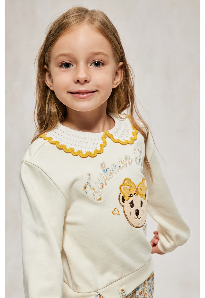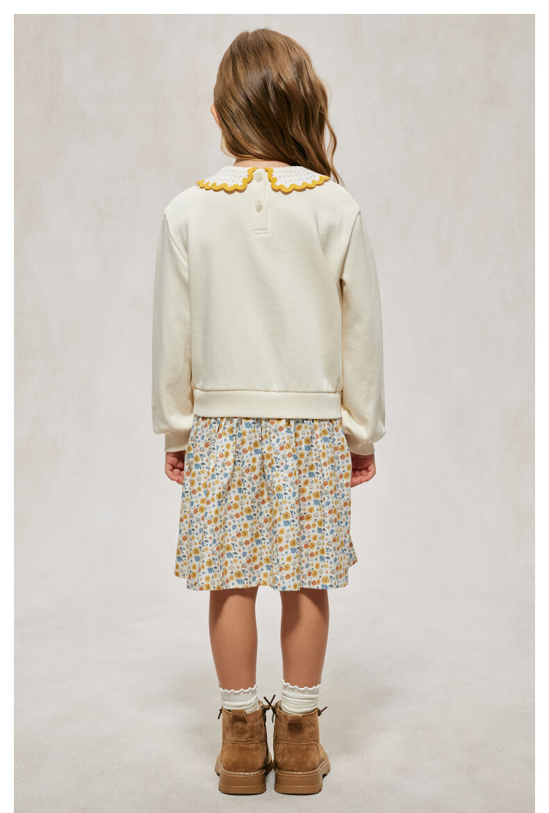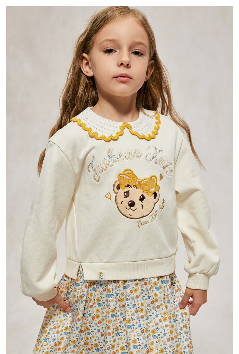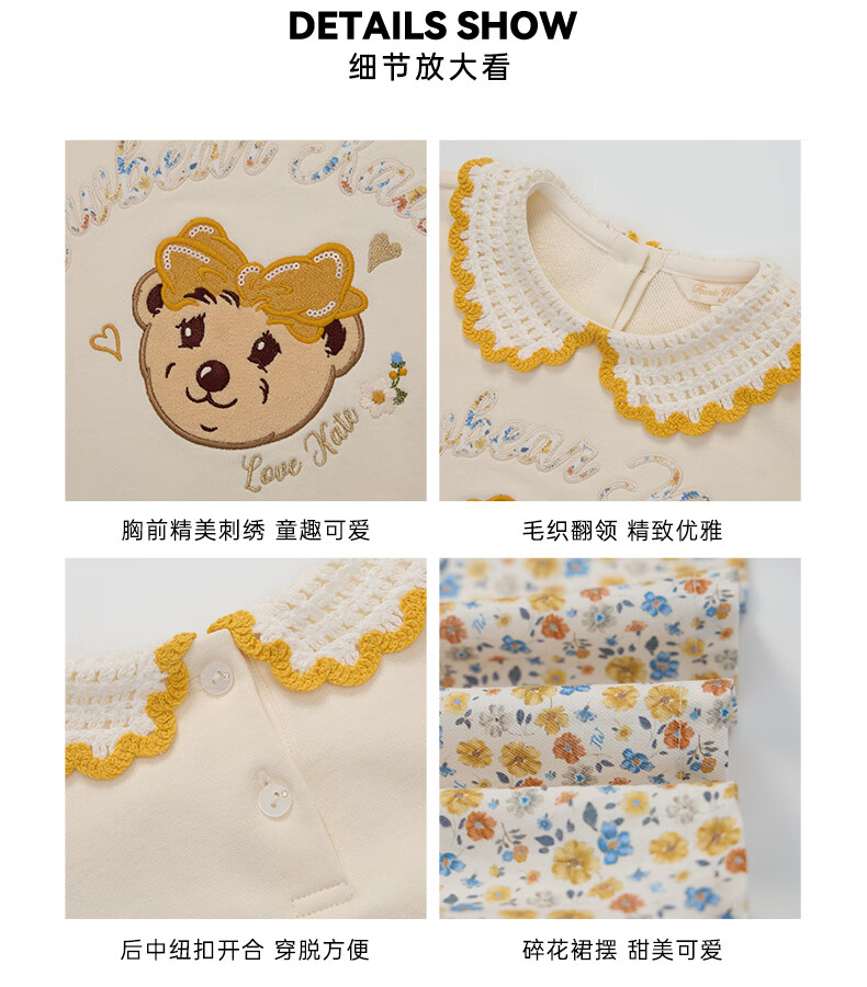 Teenie Weenie Kids Bear Children's Clothing Autumn Girls' Embroidered Lapel Floral Splicing Dress Mixed Color 150 cm