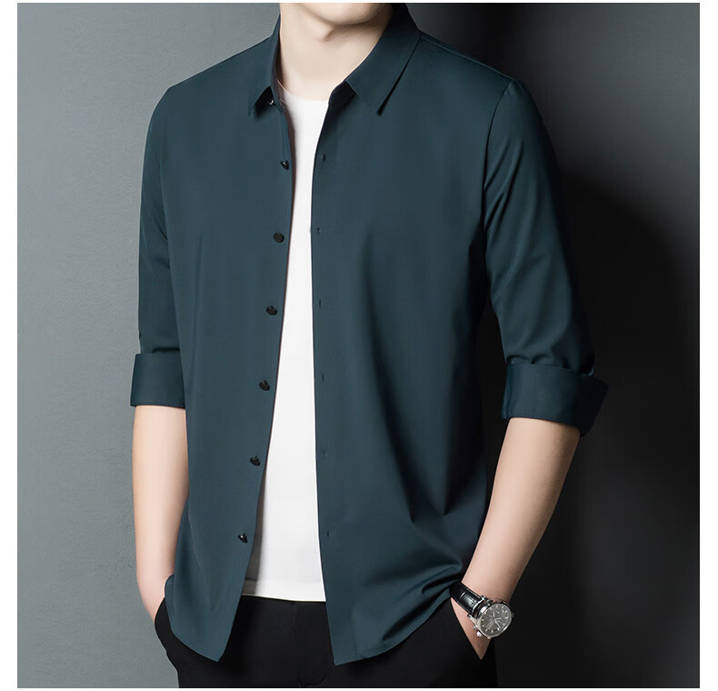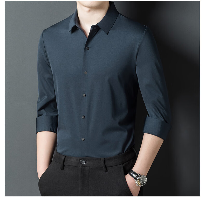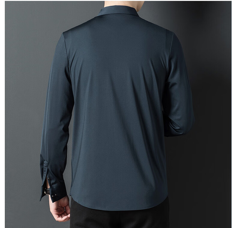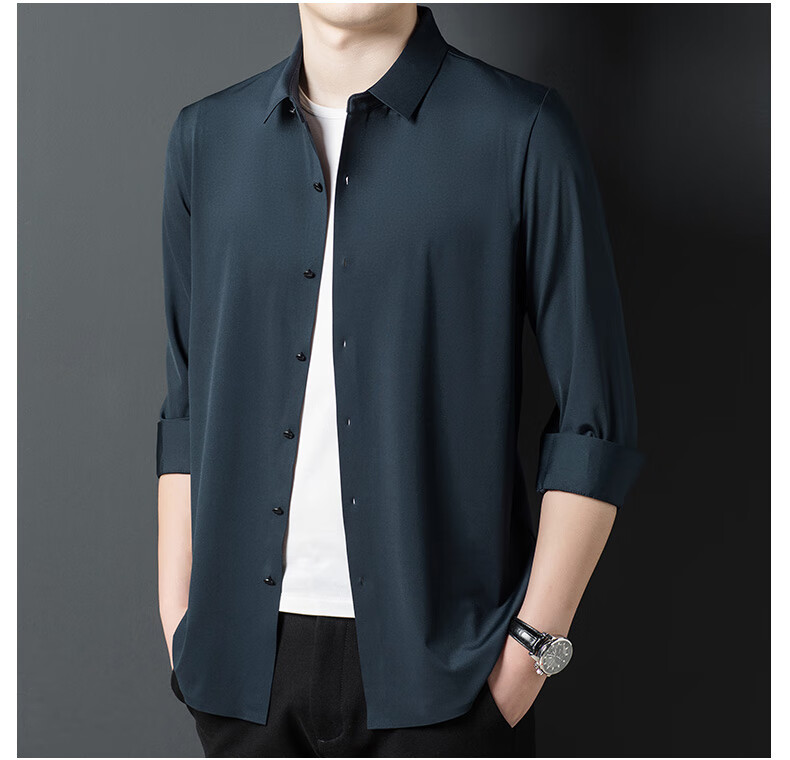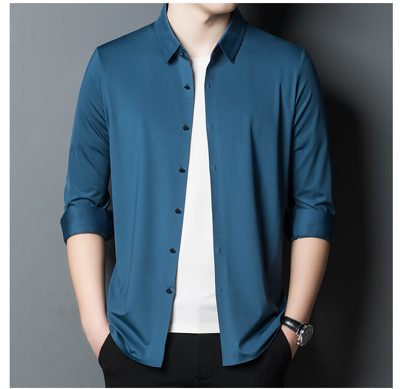 ROMON seamless ice silk shirt men's long-sleeved spring and summer new style drape business casual iron-free middle-aged shirt men FR9927 upper cyan long-sleeved XL 175