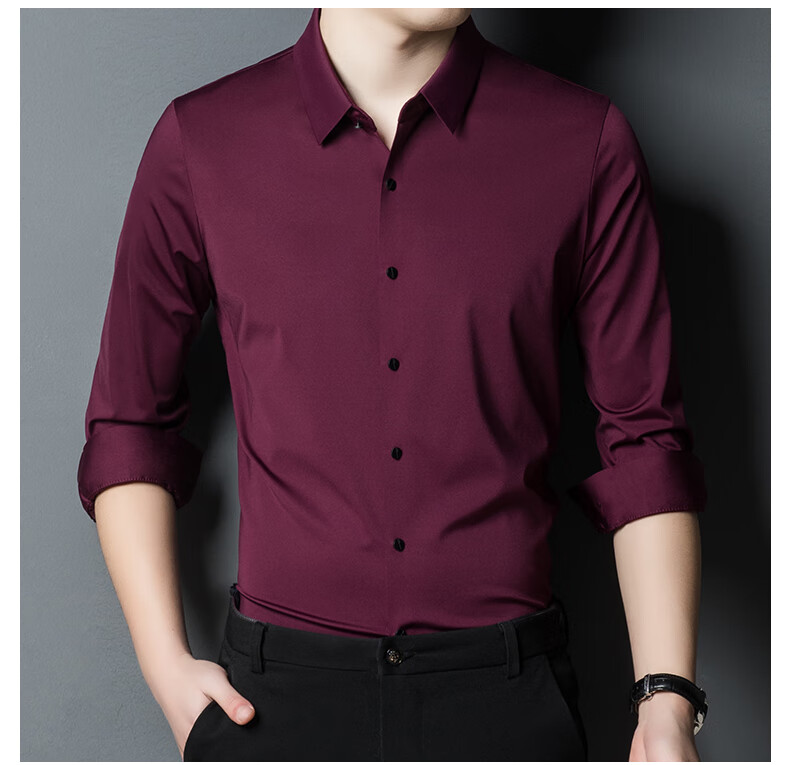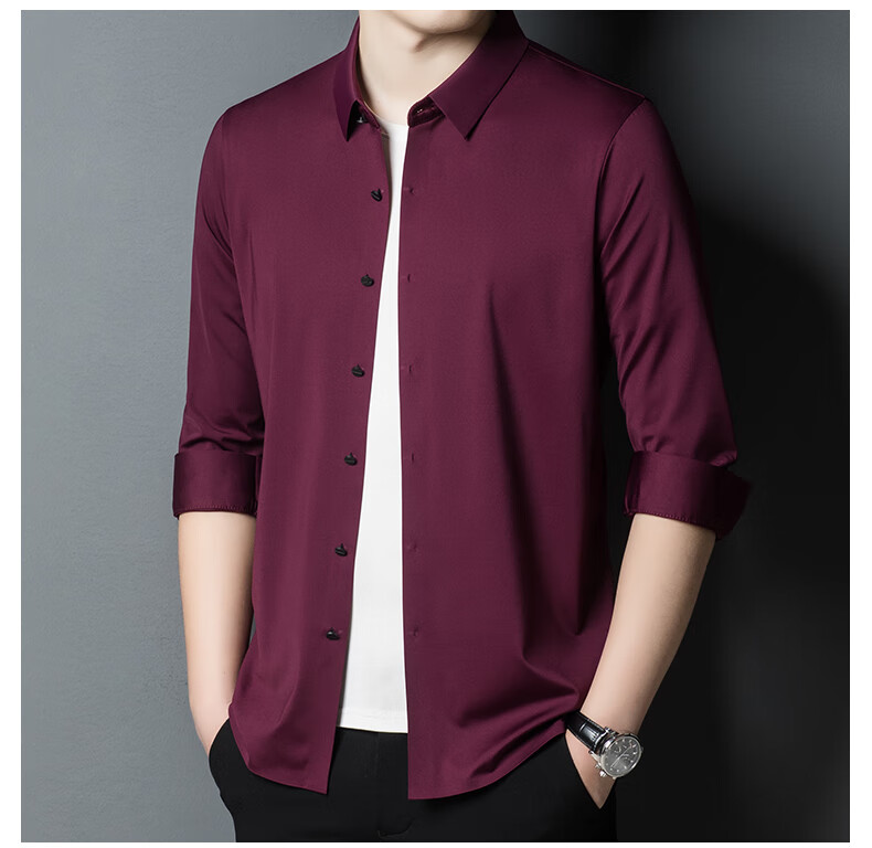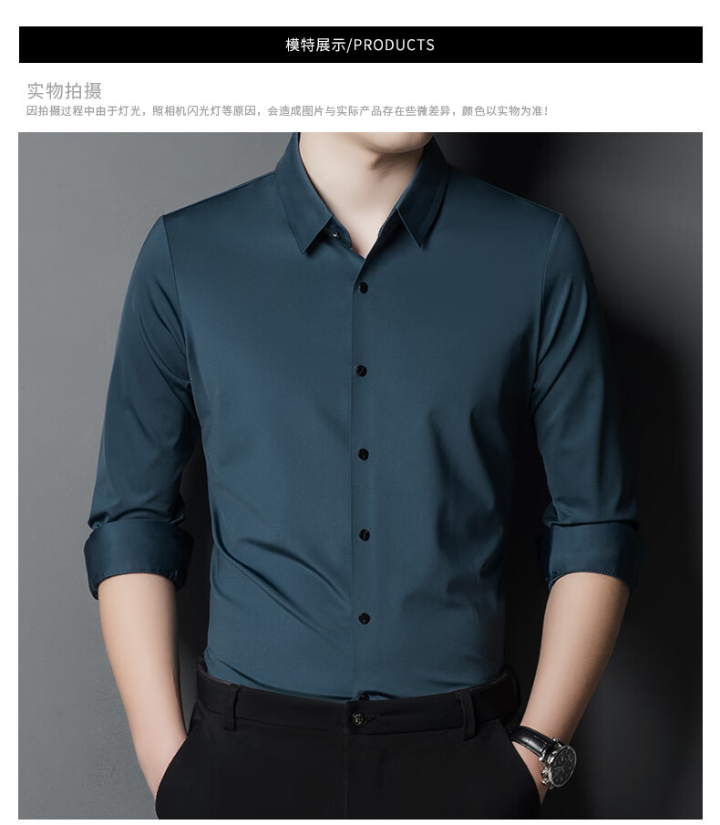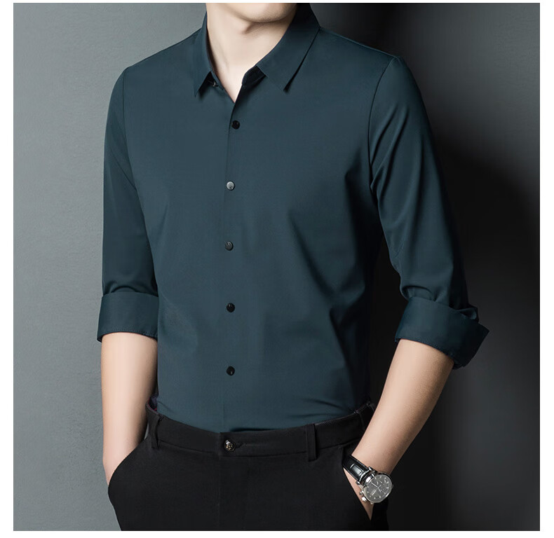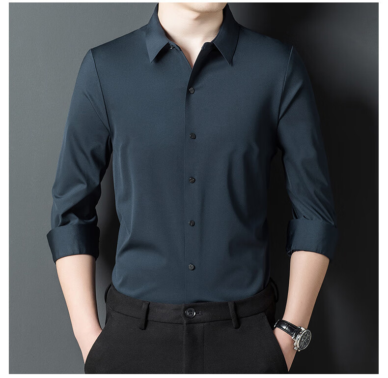 ROMON seamless ice silk shirt men's long-sleeved spring and summer new style drape business casual iron-free middle-aged shirt men FR9927 upper cyan long-sleeved XL 175