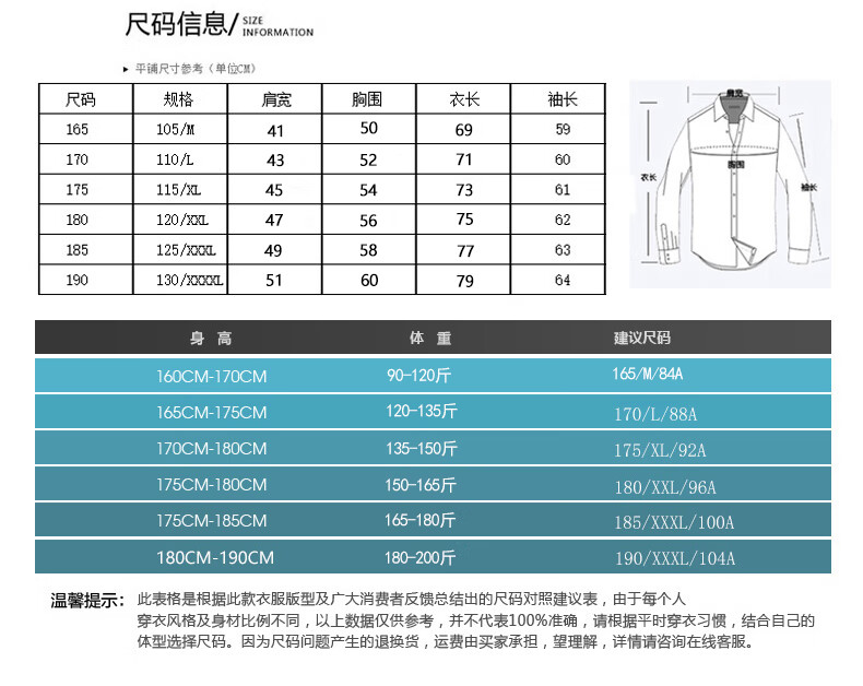 China (cm) 165 / 88-90 170 / 96-98 175 / 108-110 180 / 118-122 185 / 126-130