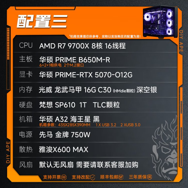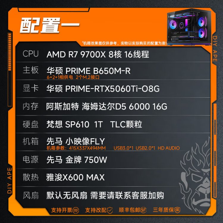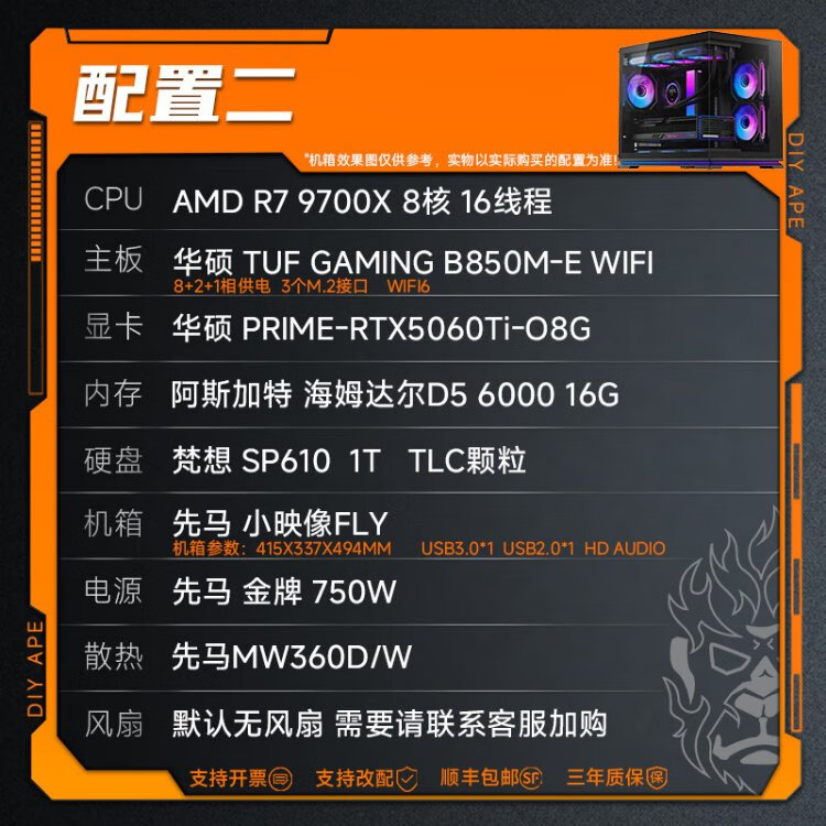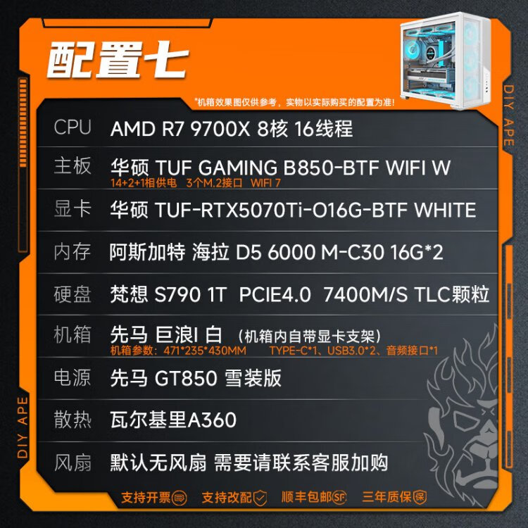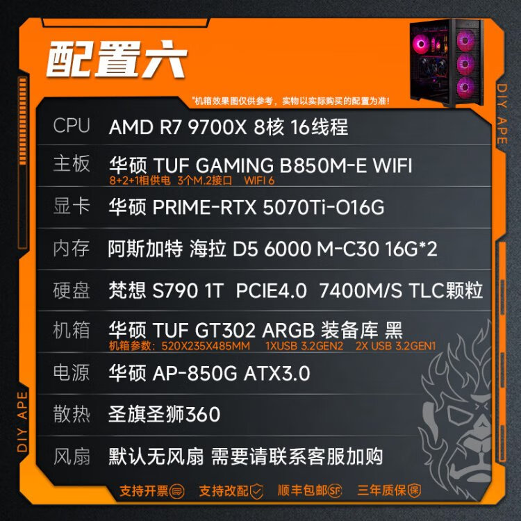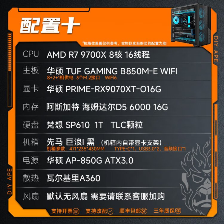 DIY APE ancient era installation ape AMD Zen5 architecture flight R7 9700X/5060Ti/5070/5070Ti/9070XT game assembly computer desktop host configuration nine R7 9700X/RX9070XT