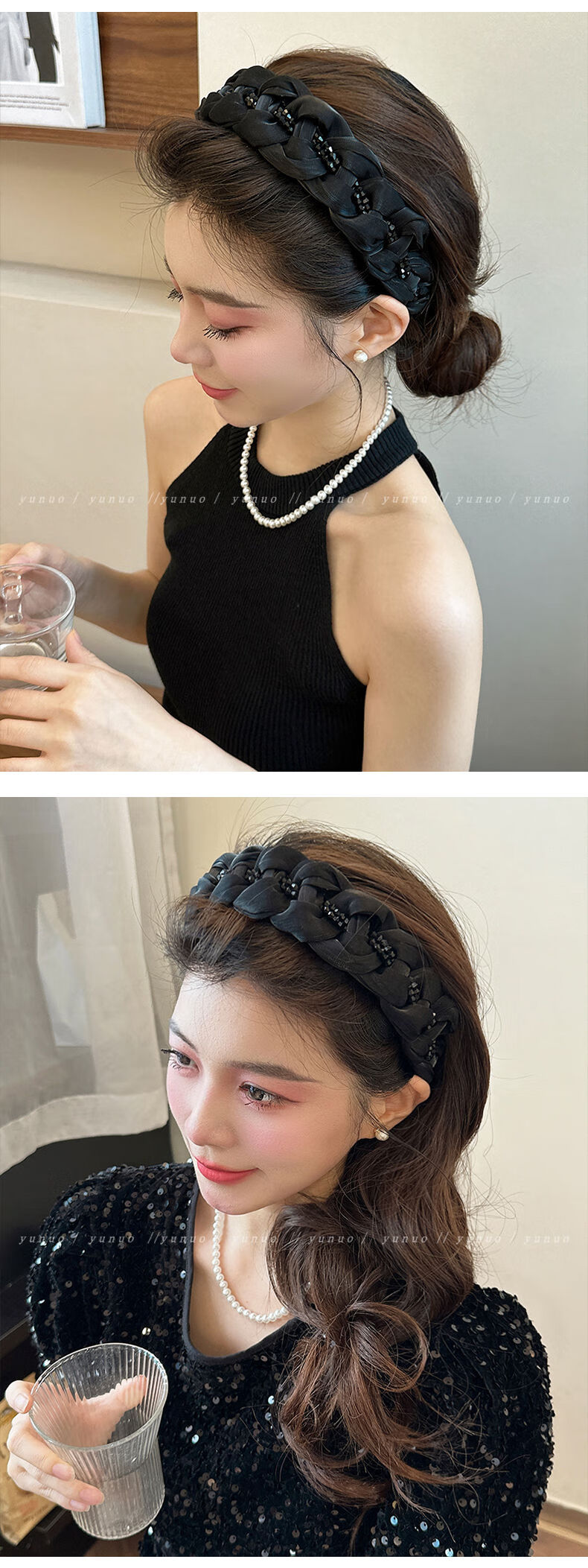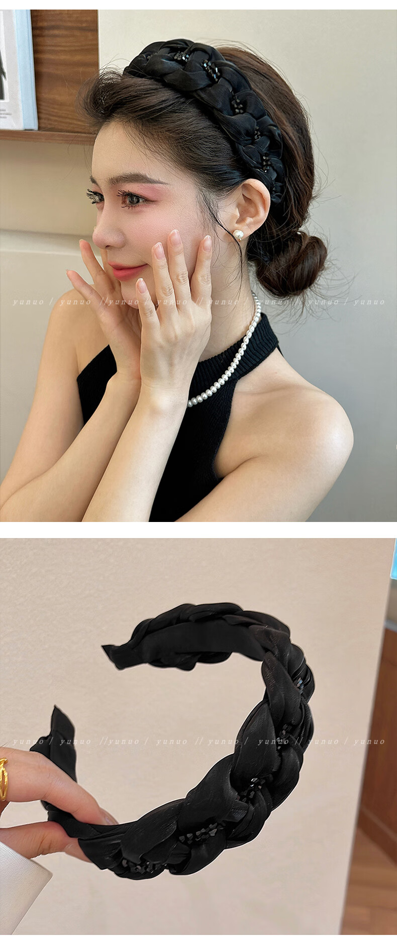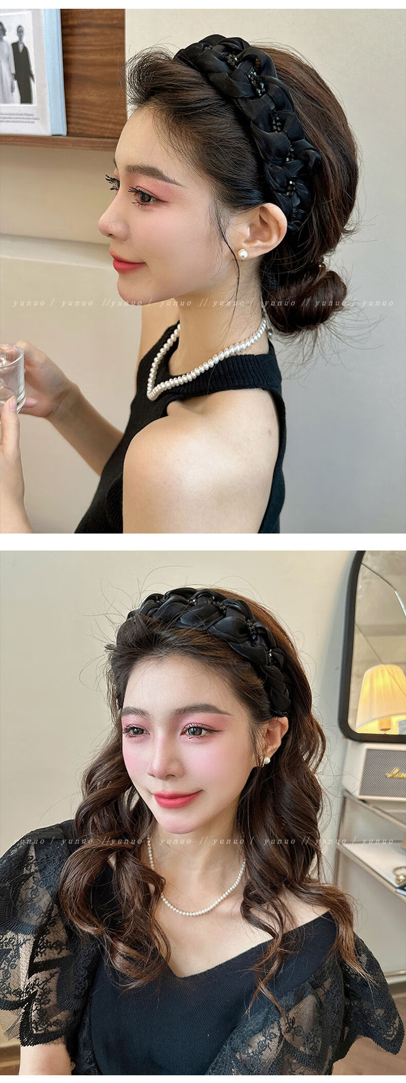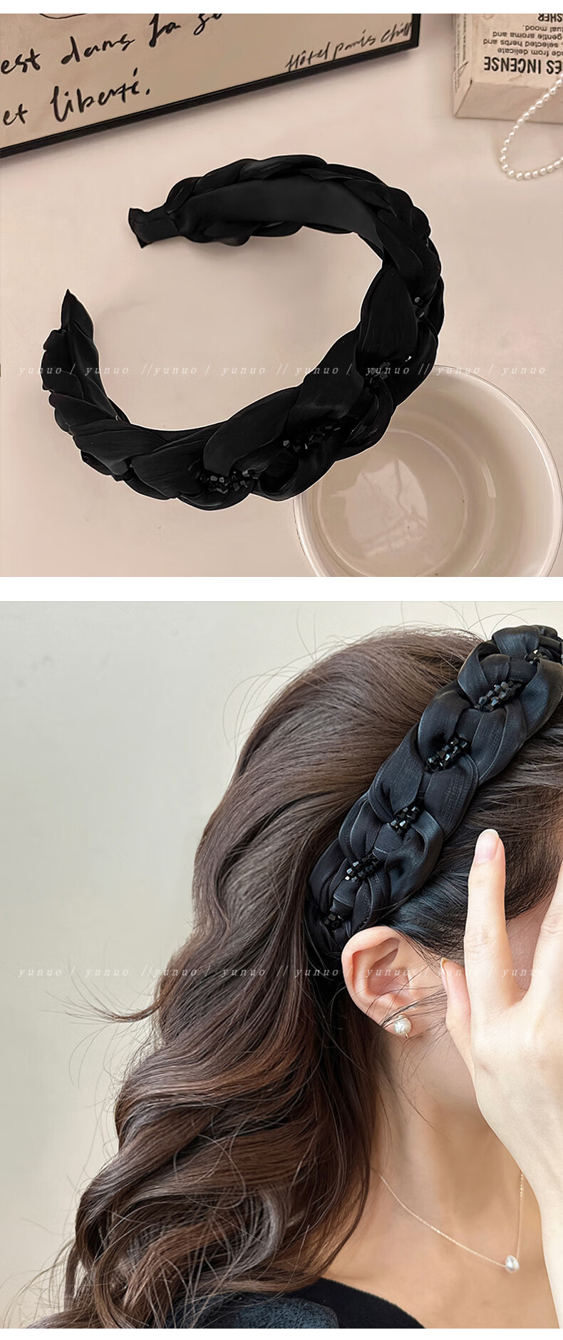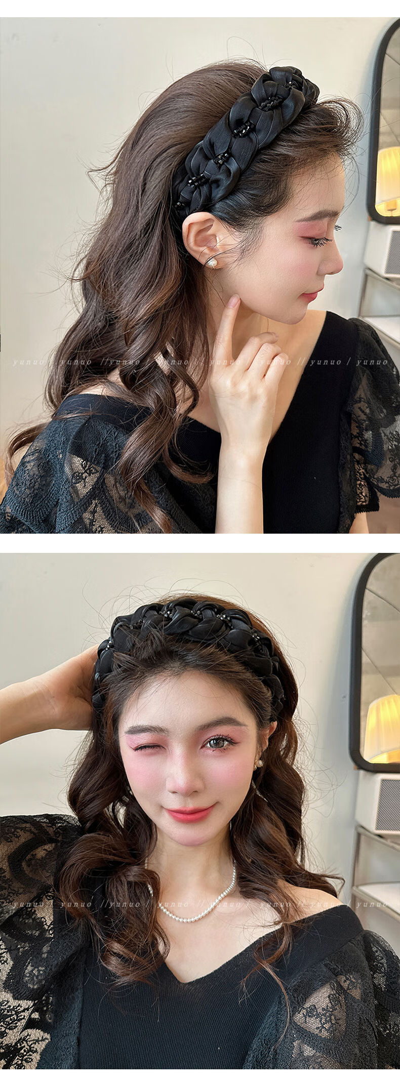 Biyun high-end Korean style black wide-brimmed headband female Internet celebrity pressed hair headband 2024 new style temperament high-end hairpin headband black retro fashionable and exquisite-