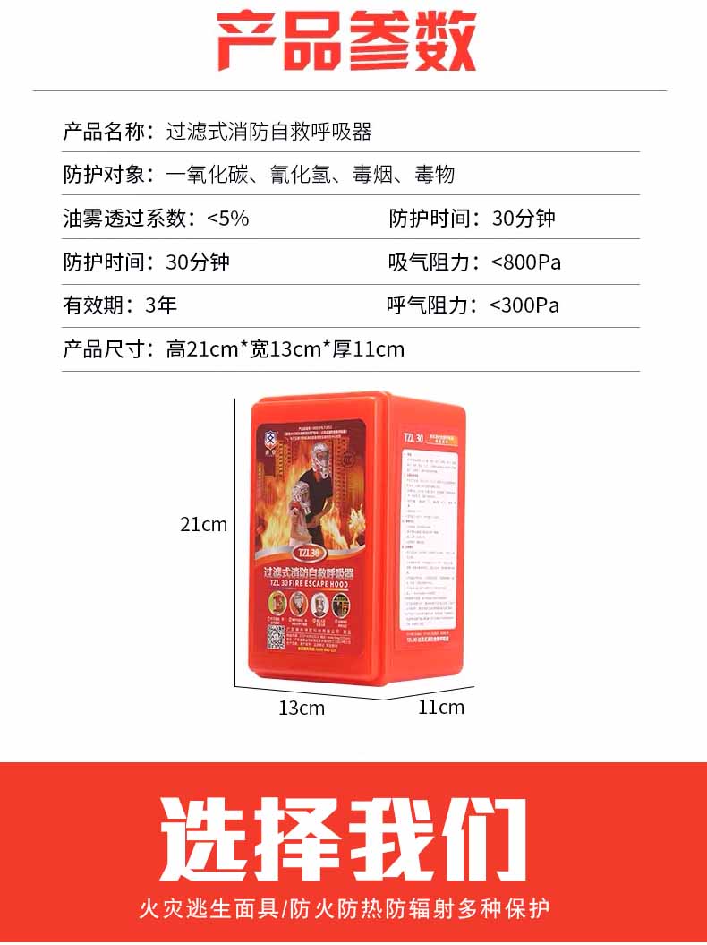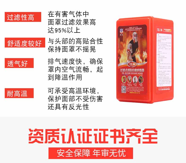 Ji'an fire mask, anti-virus, anti-smoke, fire-proof mask, hotel home 3C certified fire escape mask, rental house fire drill inspection