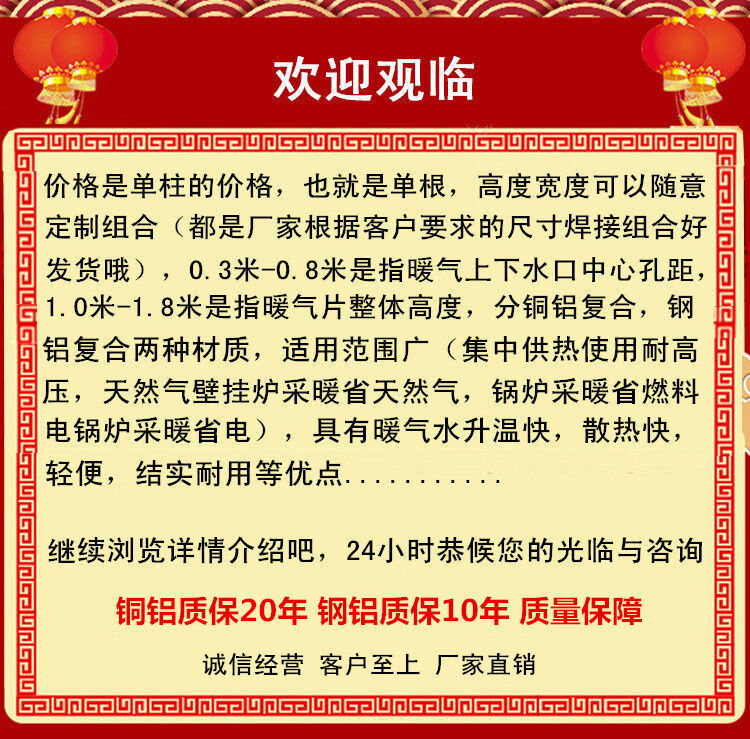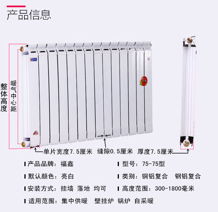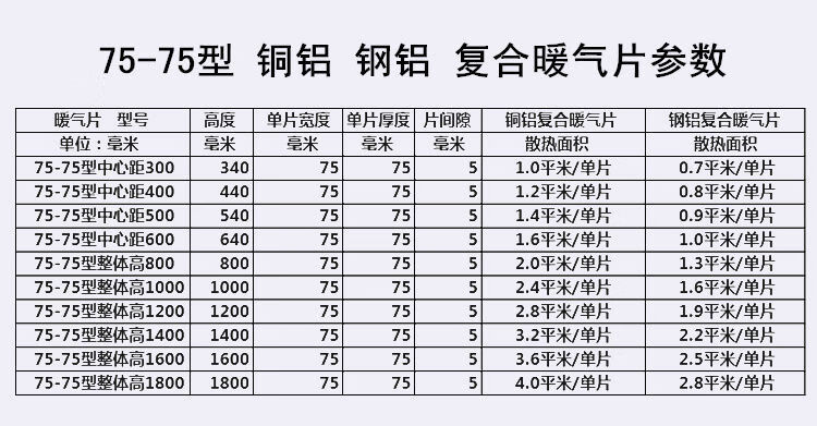 DIONO copper-aluminum composite radiator household 7575 anti-smoke wall decorative radiator steel-aluminum wall-mounted water heating central heating 75-75 type copper-aluminum composite radiator 0.3m