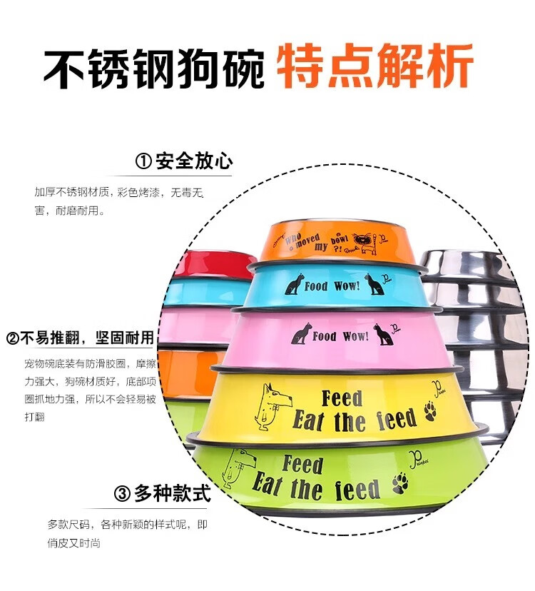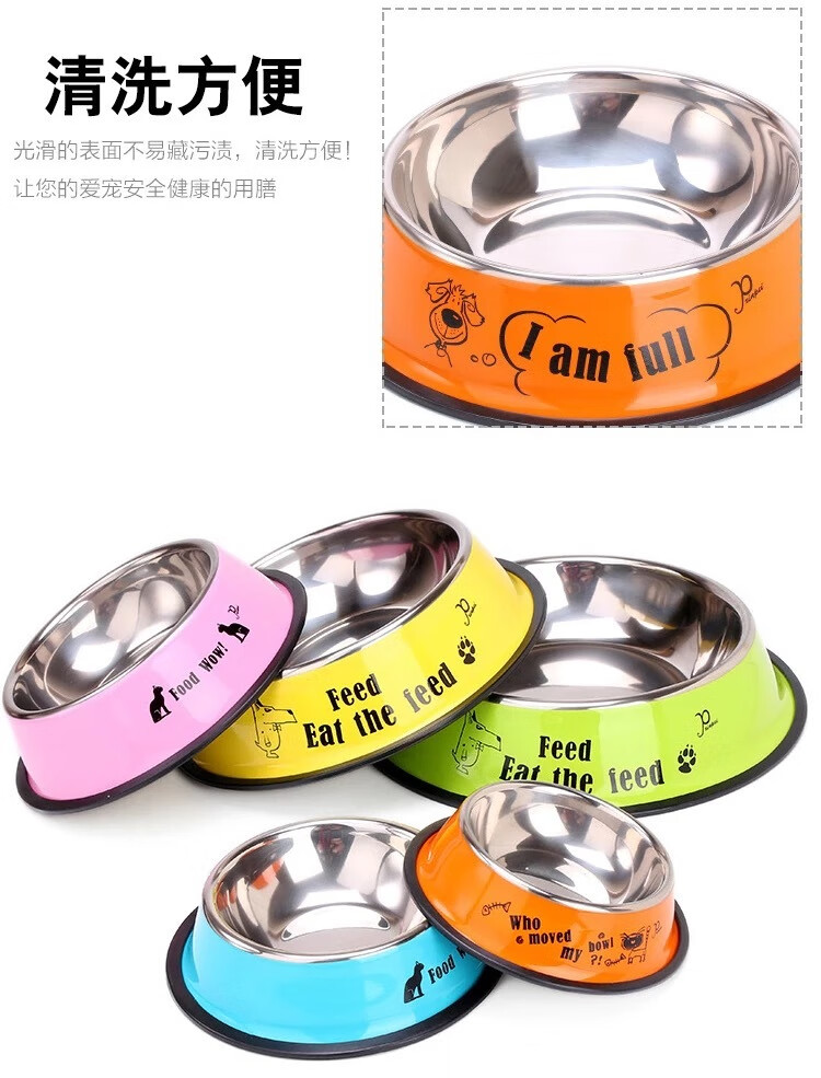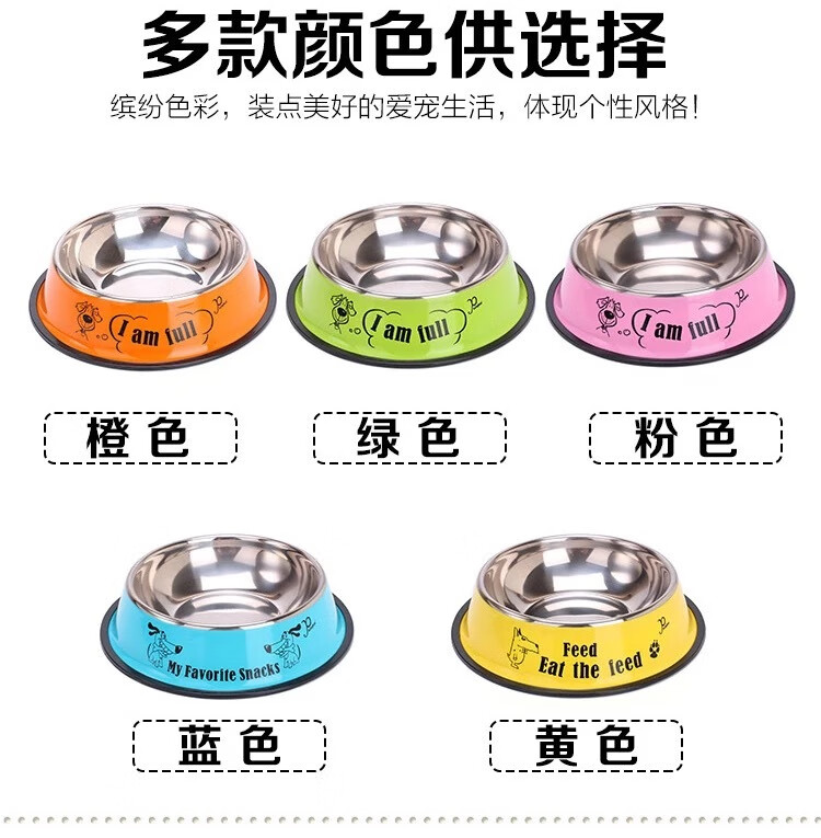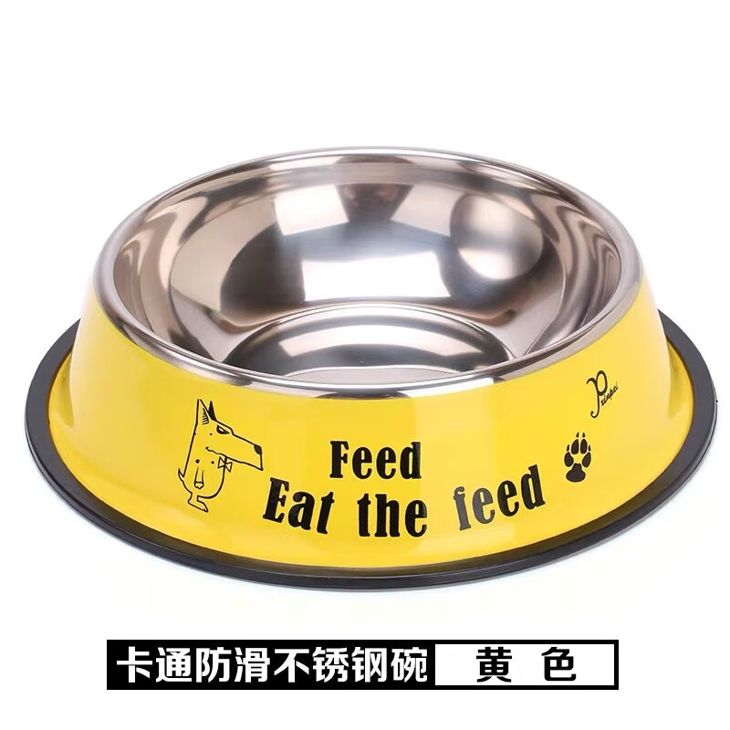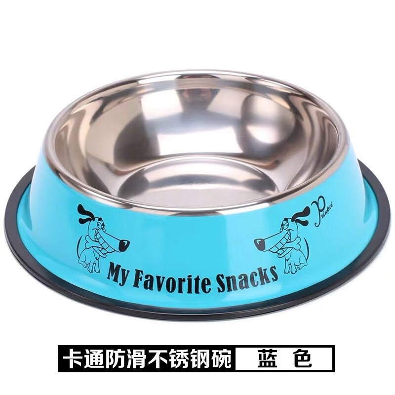 OIMG Stainless Steel Dog Bowl Golden Retriever Teddy Dog Bowl Cat Dog Food Bowl Labrador Anti-Slip Drinking Bowl Dog Food Bowl Blue (Random Pattern) XL-Extra Large (Recommended 40-80Jin Jin equals 0.5kg)