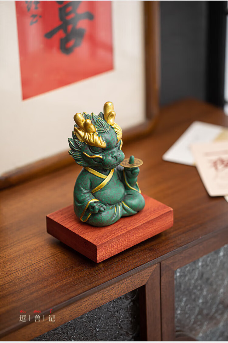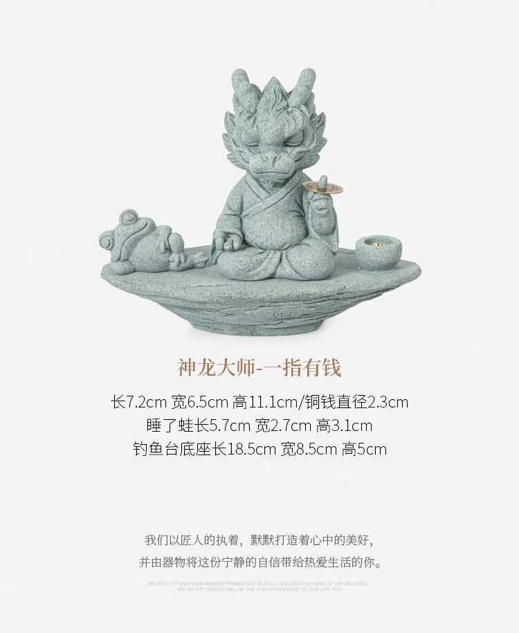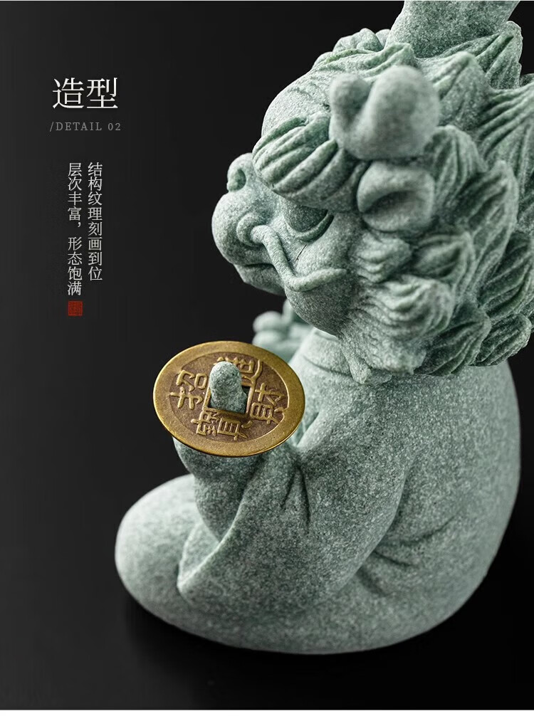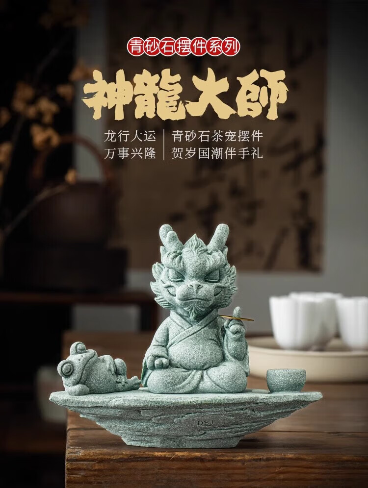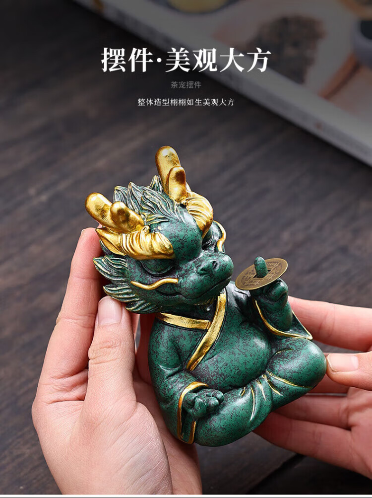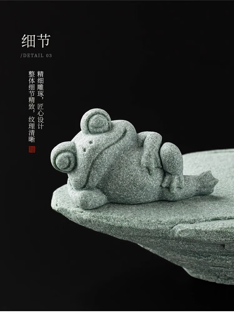Lucky Dragon Tea Pet Decoration Color Changing High-End Green Sandstone Tea Table Tea Table Tea Set Feng Shui Decoration Crafts One Finger Rich + Sleeping Frog + Fishing Platform Base