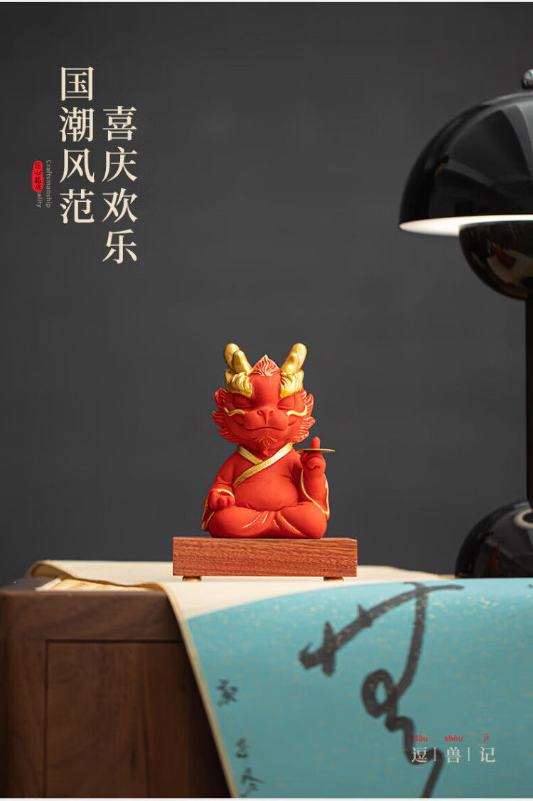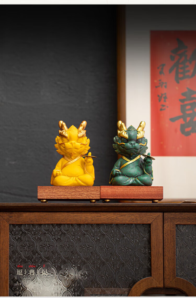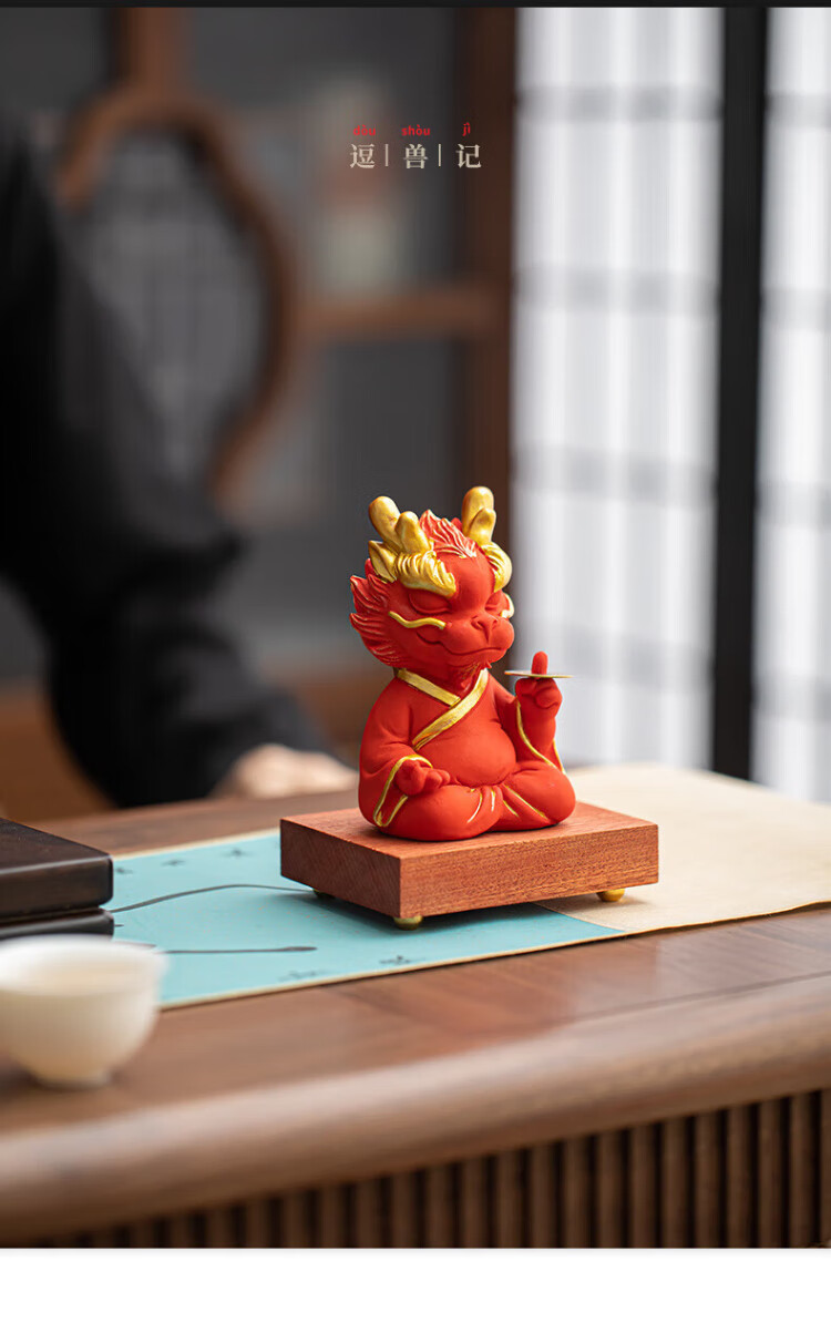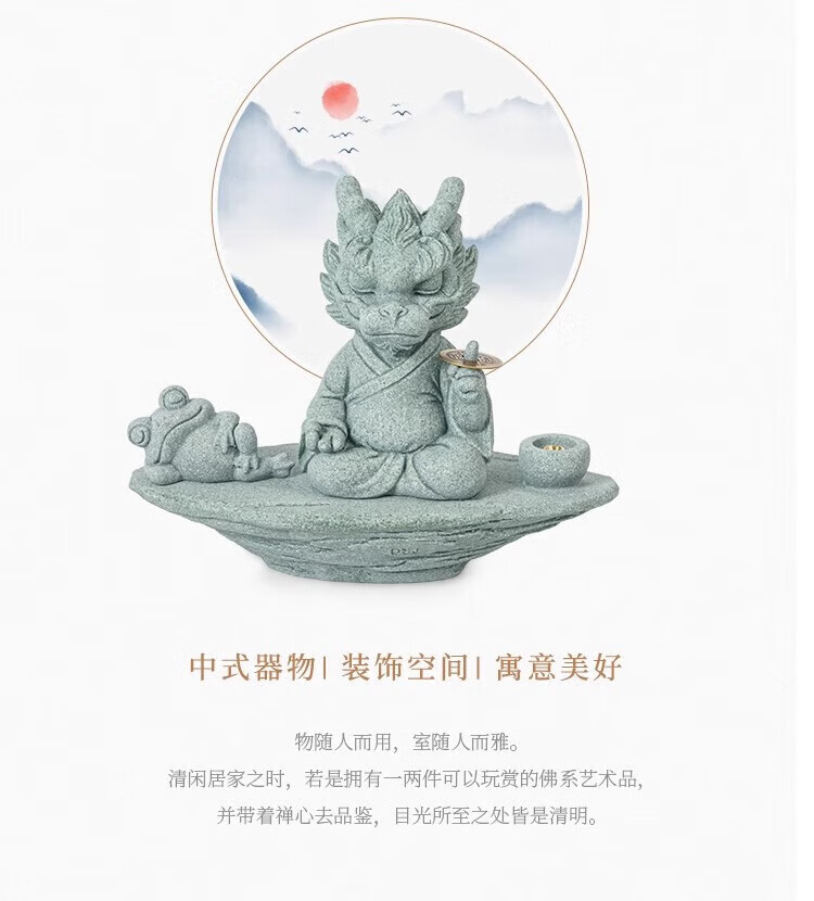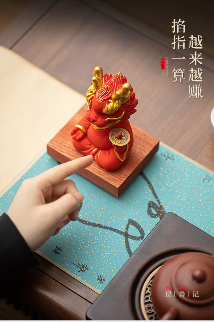 Lucky Dragon Tea Pet Decoration Color Changing High-End Green Sandstone Tea Table Tea Table Tea Set Feng Shui Decoration Crafts One Finger Rich + Sleeping Frog + Fishing Platform Base
