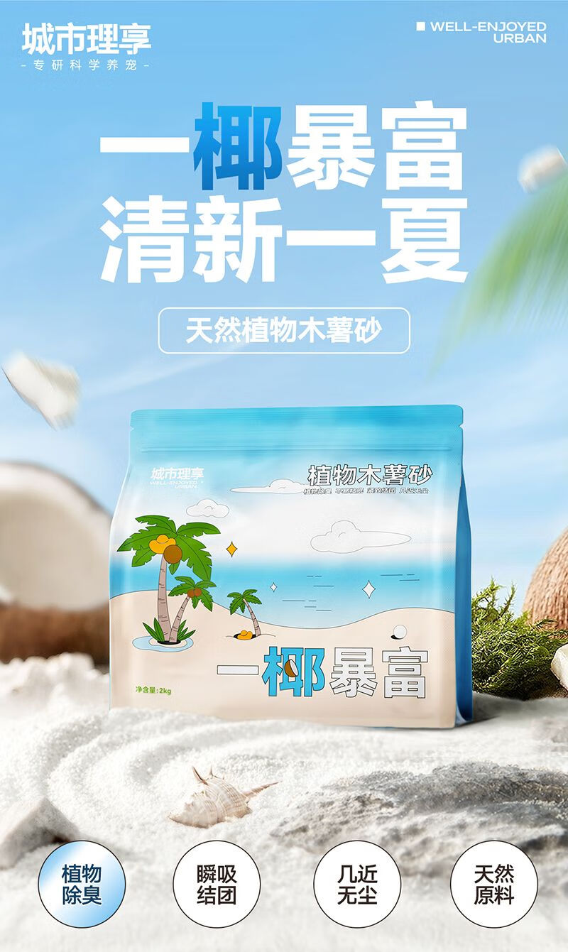 City Enjoy Cat Litter Cassava Cat Litter Near Dust-Free Plant Deodorization Mixed Bentonite Non-stick Bottom Mineral Sand Water-Absorbent Deodorant Sand Trial Experience Pure Sago Cassava Sand 4 Jin Jin equals 0.5 kg 99.95% dust-free rate Deodorizes and does not stick to the bottom