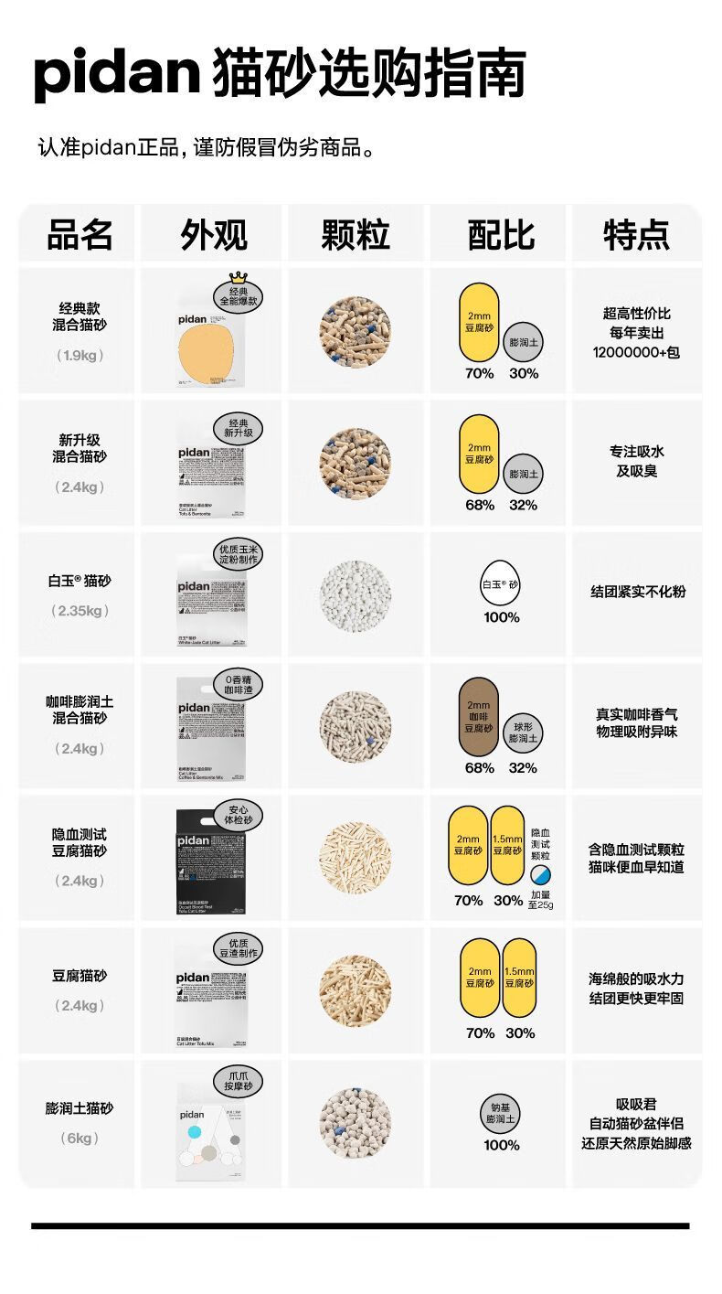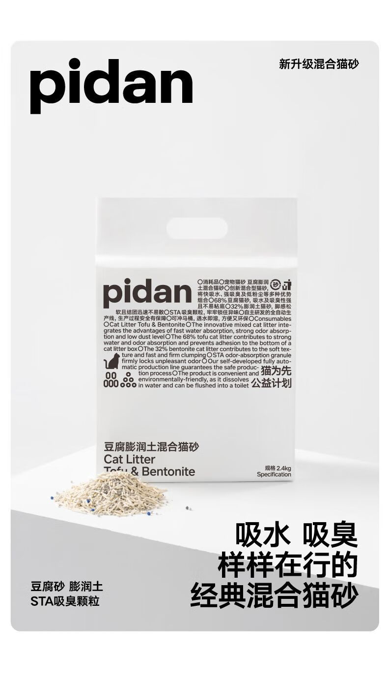 Pidan cat litter classic tofu bentonite mixed litter 2.4kg familiar formula familiar taste 4 packs
