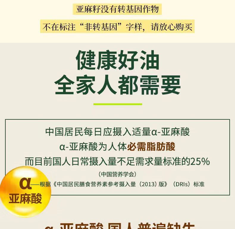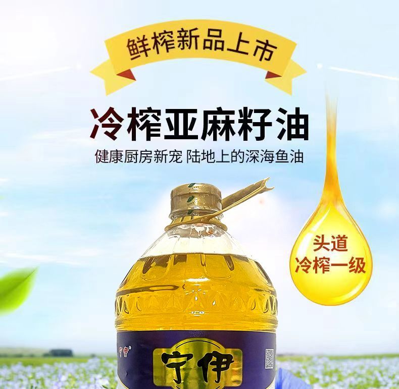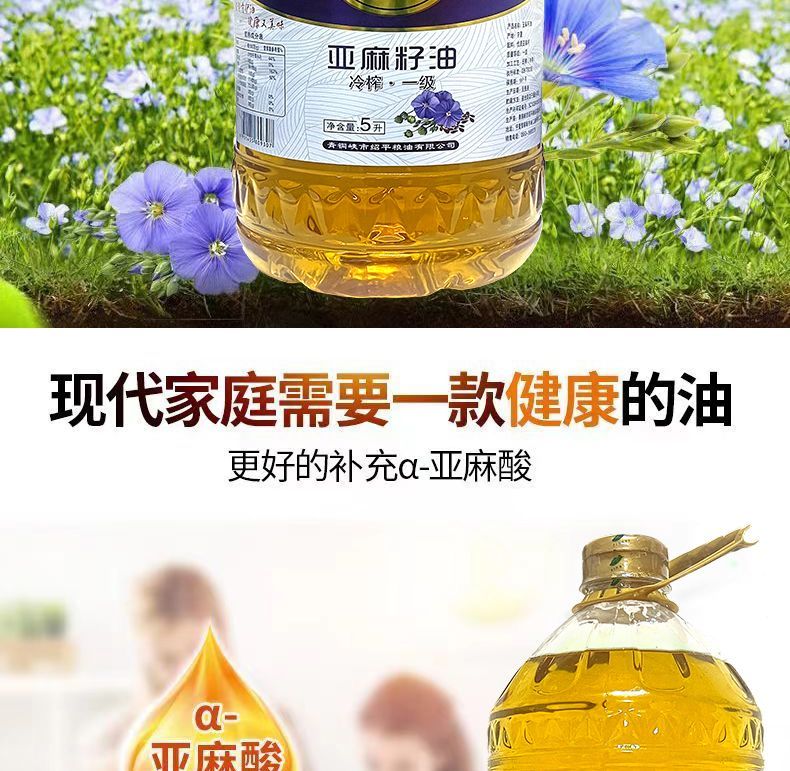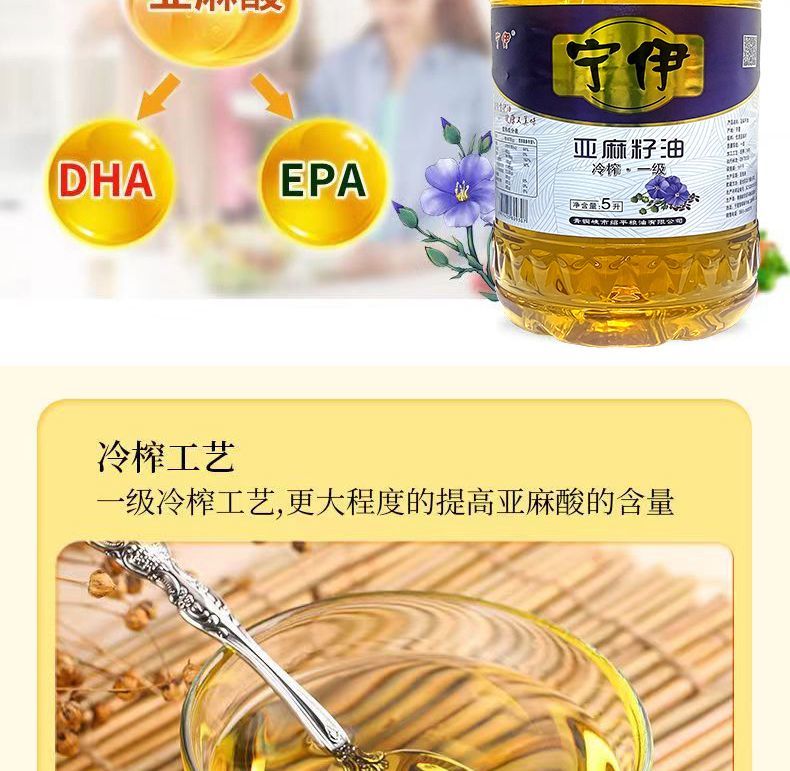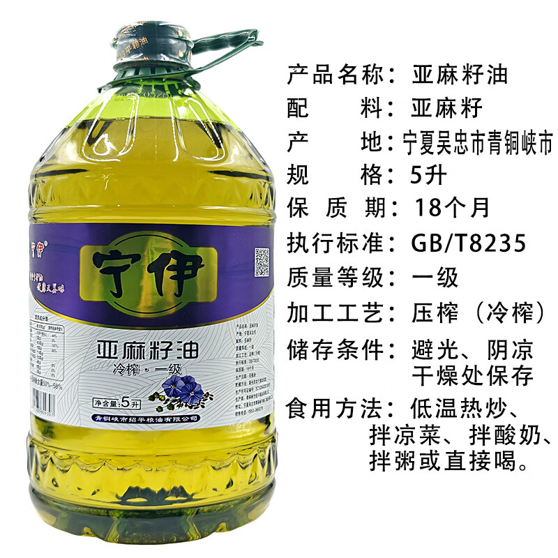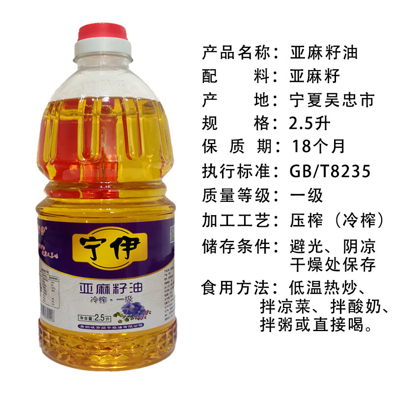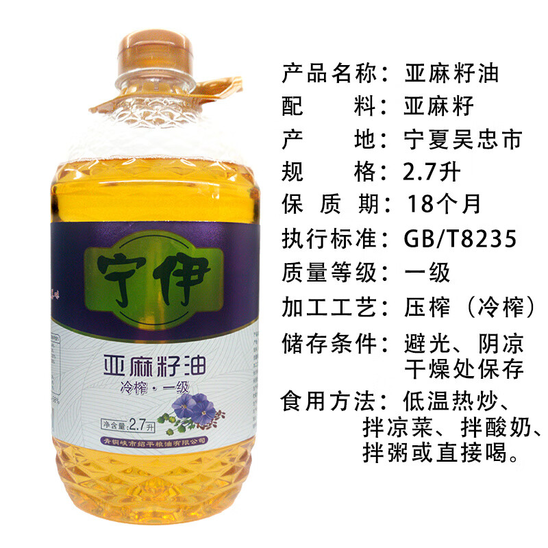 Food Huainingyi cold-pressed pure linseed oil physically pressed first-class barreled cooking oil household oil high linolenic acid linseed oil 2.7 liters/barrel weighs about 5Jin Jin is equal to 0.5kg