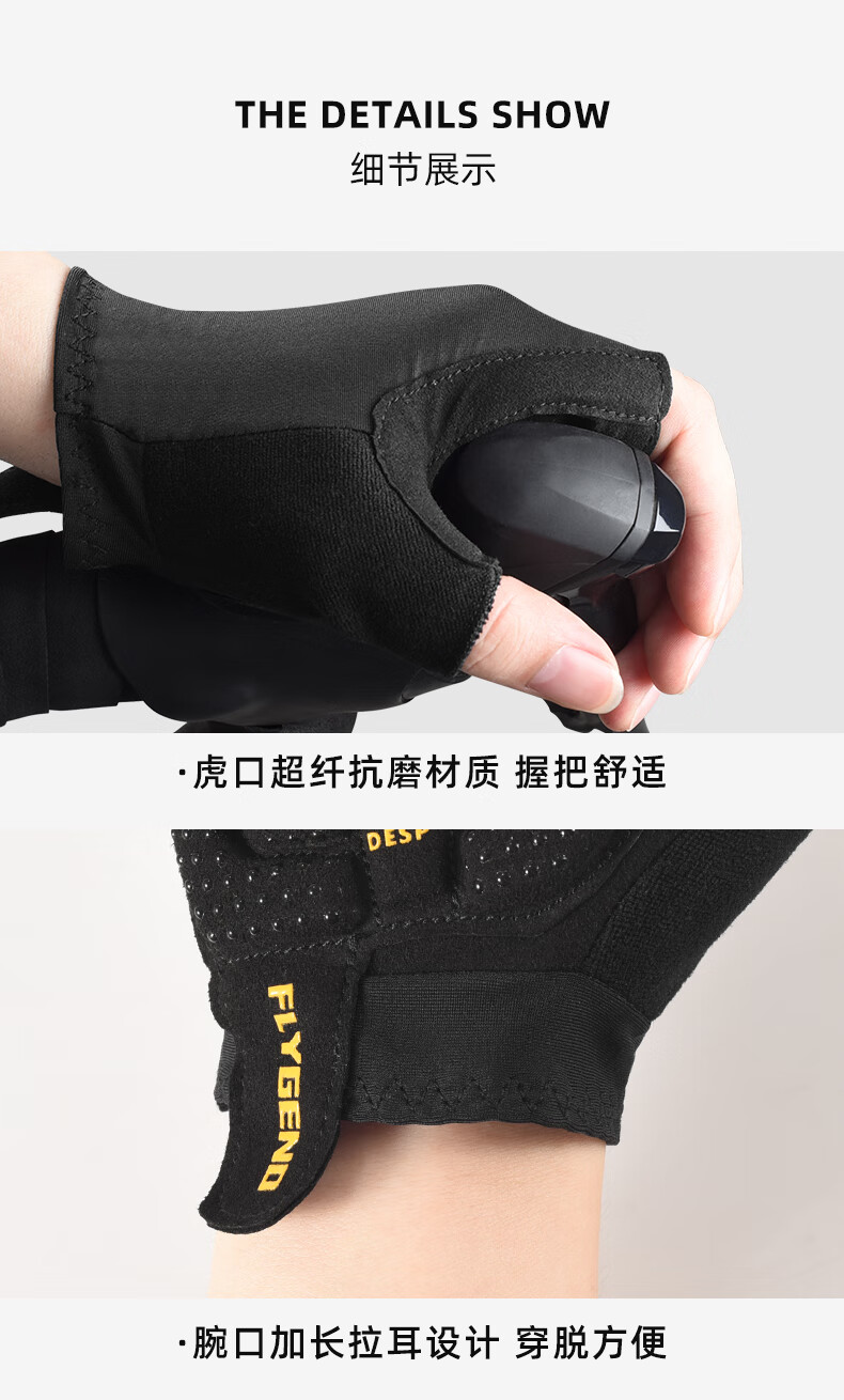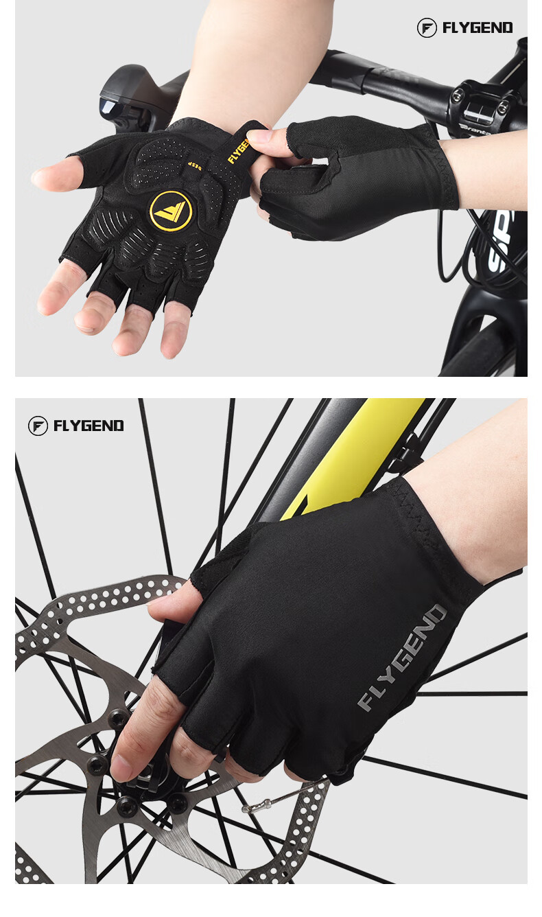 FLYGEND Cycling Gloves Half Finger Summer Men's and Women's Road Bike Mountain Bike Short Finger Cycling Shock Absorbing Non-Slip Gloves Black Palm Long Finger M