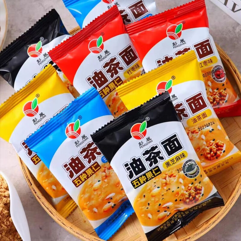 Pengzhan's old-fashioned tea-oiled noodles, a Northeastern specialty, fried noodles with five kernels, black sesame and red dates oil, breakfast casual snacks, small package Pengzhan's tea-oiled noodles (black sesame flavored black bag) 500g (about 8-10 bags)