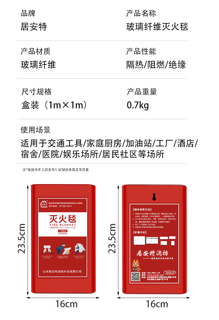 Juante fiberglass fire blanket boxed fire certified fire blanket kitchen emergency escape blanket flame retardant blanket 1.5*1.5m