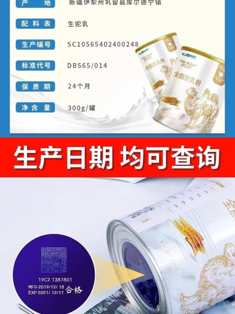 Narasitol Narasitol old style pure camel milk powder high calcium nutritional probiotics Xinjiang authentic sucrose-free full-fat camel milk powder 3 cans of Nala full-fat 100g free cup